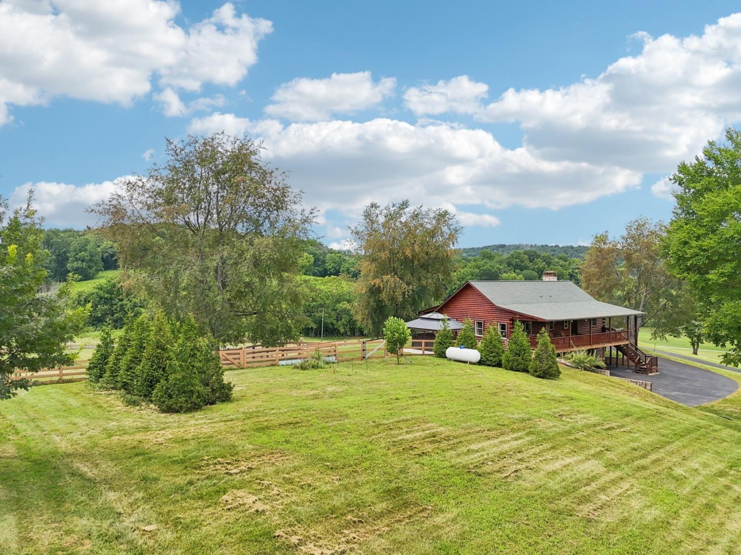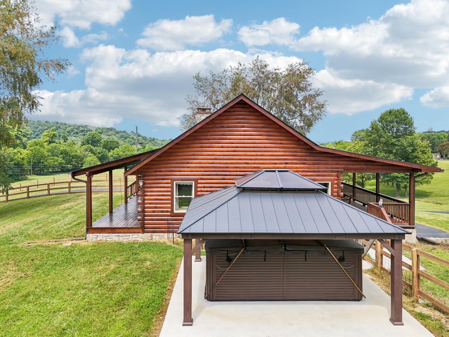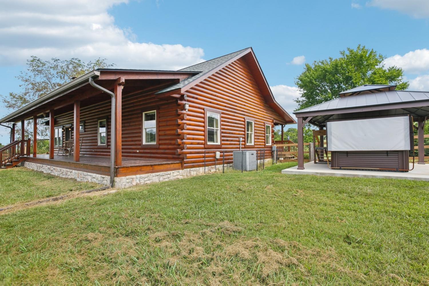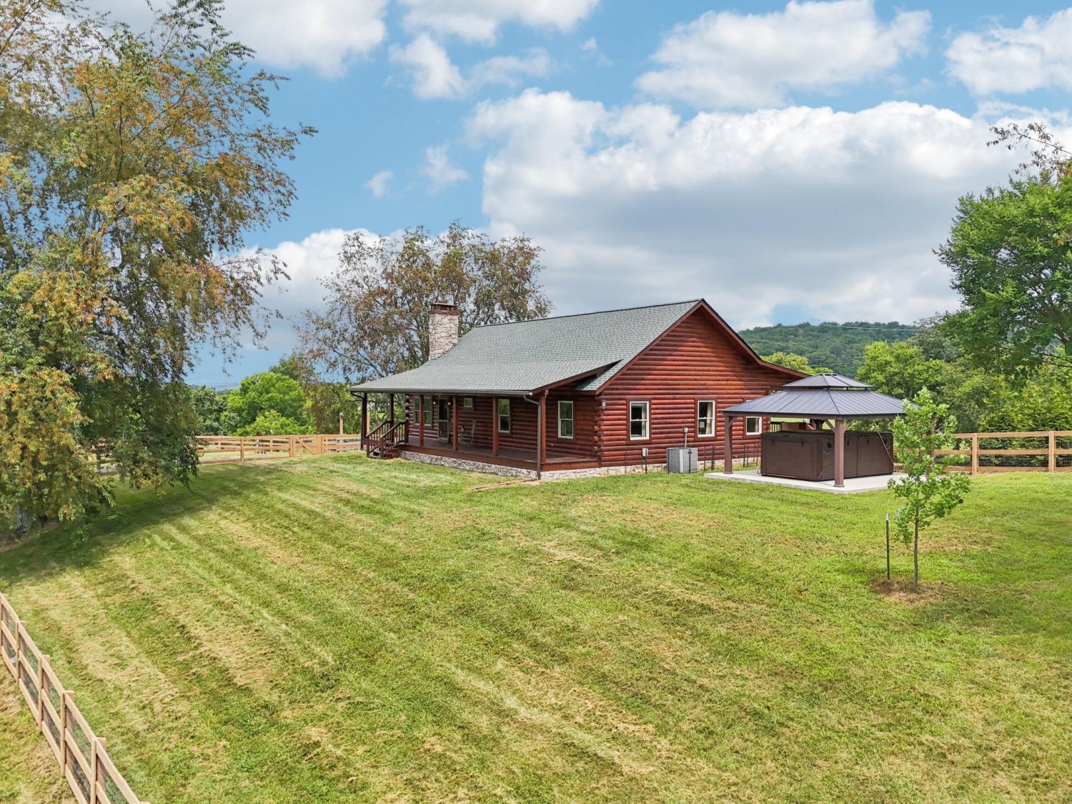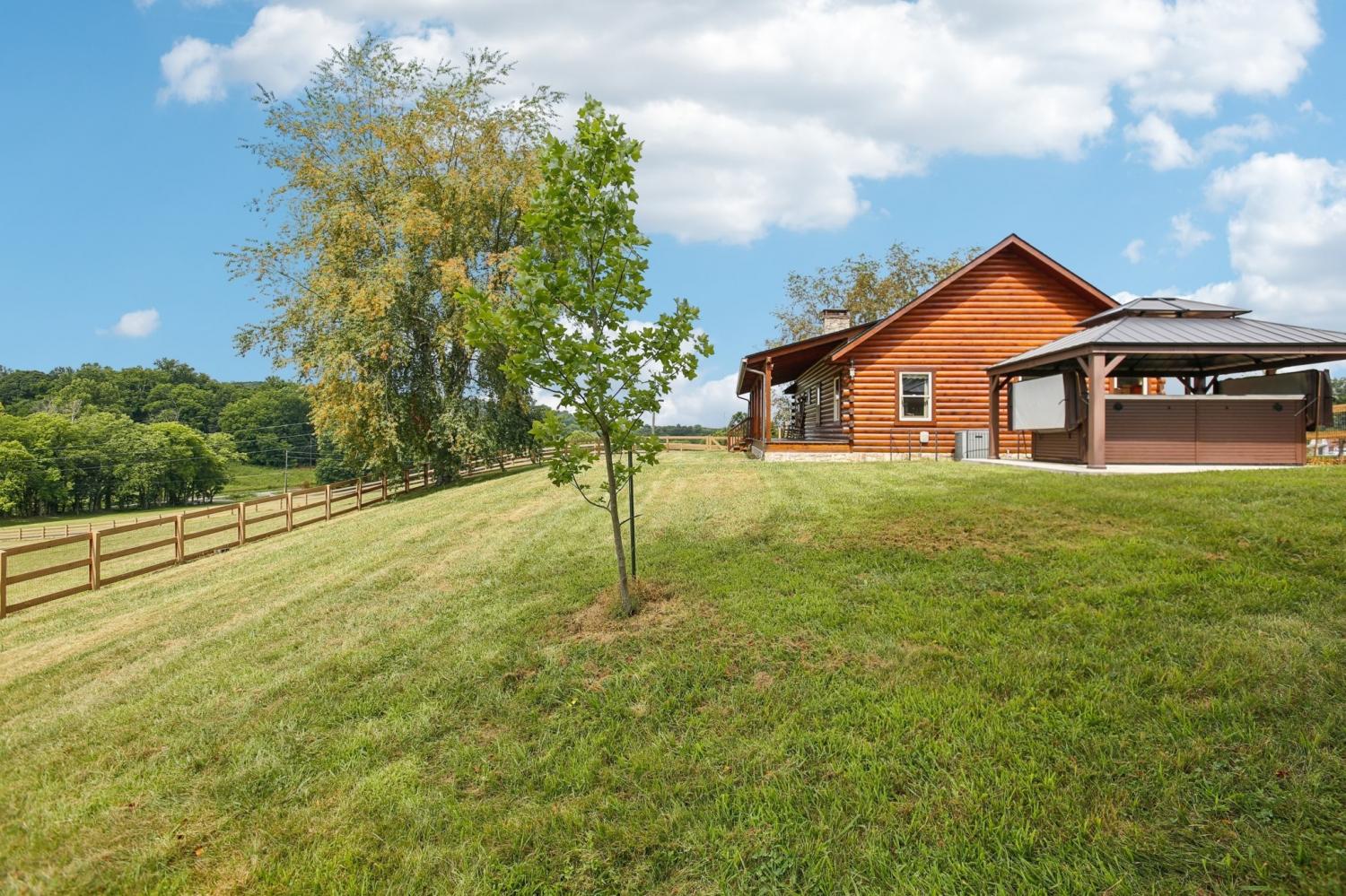 Experience uncompromised country living in this meticulously crafted 3-bedroom, 2-bathroom custom cabin. Centrally positioned on 5 gently rolling acres, this residence has meticulous maintenance and significant upgrades within the past four years. Conveniently located just 45 miles from downtown Nashville, it offers a serene, secluded atmosphere. The property is ideally suited for horses and cattle, featuring pastures enclosed by board, woven wire, electric fencing and remote control power gates, as well as a compact barn with water access. Strategic plantings of rows of Thuja Green Giants enhance both aesthetic appeal and privacy. This custom cabin seamlessly blends a tranquil country lifestyle with modern conveniences. It boasts soaring tongue-and-groove ceilings, a warm gas stone fireplace, and a spacious chef's kitchen outfitted with solid wood cabinetry, expansive countertops, and a premium 6-burner dual-fuel Thor range. The 14-foot-wide covered deck provides an ideal setting to appreciate the peaceful pastures, complimented by dual fans for comfort. For refreshment or relaxation, a private outdoor oasis awaits: a heated, four-season jetted pool, securely situated on a concrete pad within a custom pavilion, perfect for recreation, exercise, or unwinding. Additional exterior features include a newer roof, leaf guard gutter system, professional staining of the cabin and a paved driveway. The unfinished basement/garage features professionally installed non-slip epoxy flooring and climate-controlled storage. The basement has amazing insulation! ICF (Insulated Concrete Form) The property offers two garages and covered parking for an additional three vehicles, alongside two smaller covered spaces for recreational vehicles. There is also a monitored security system and dual generators, as well as 30 amp and 50 amp power boxes just outside of the garage so in the event of an emergency- you are covered! Mortgage savings may be available for buyers of this listing.