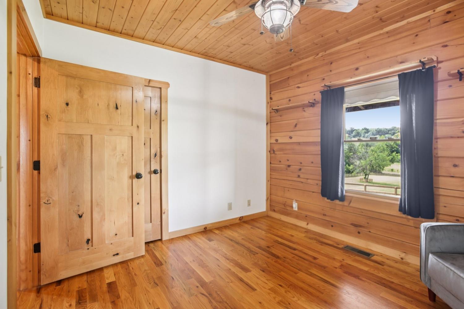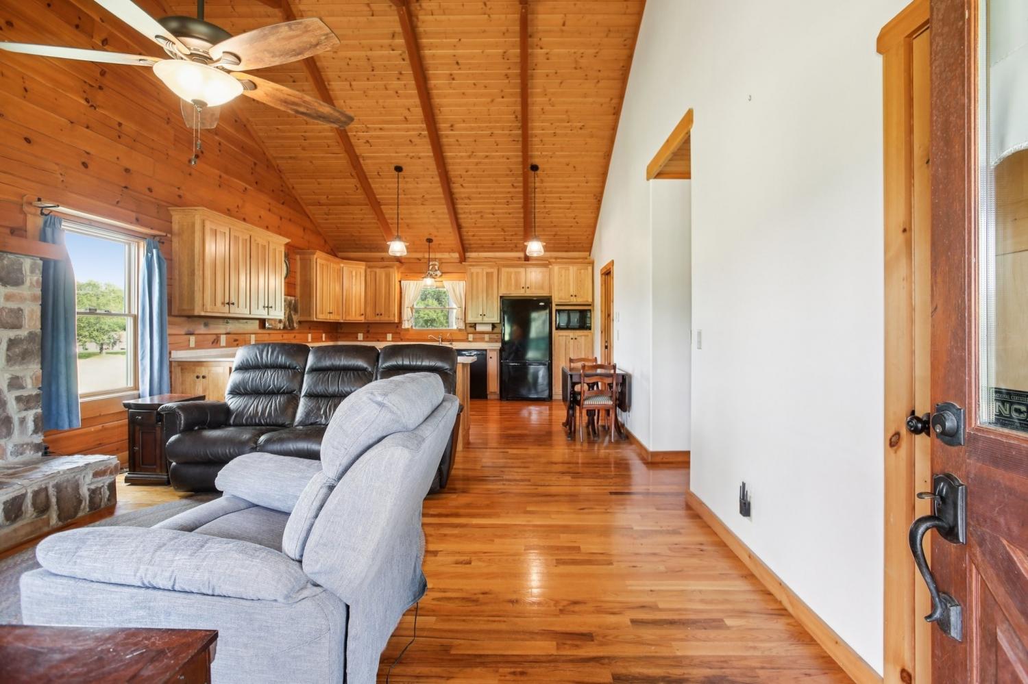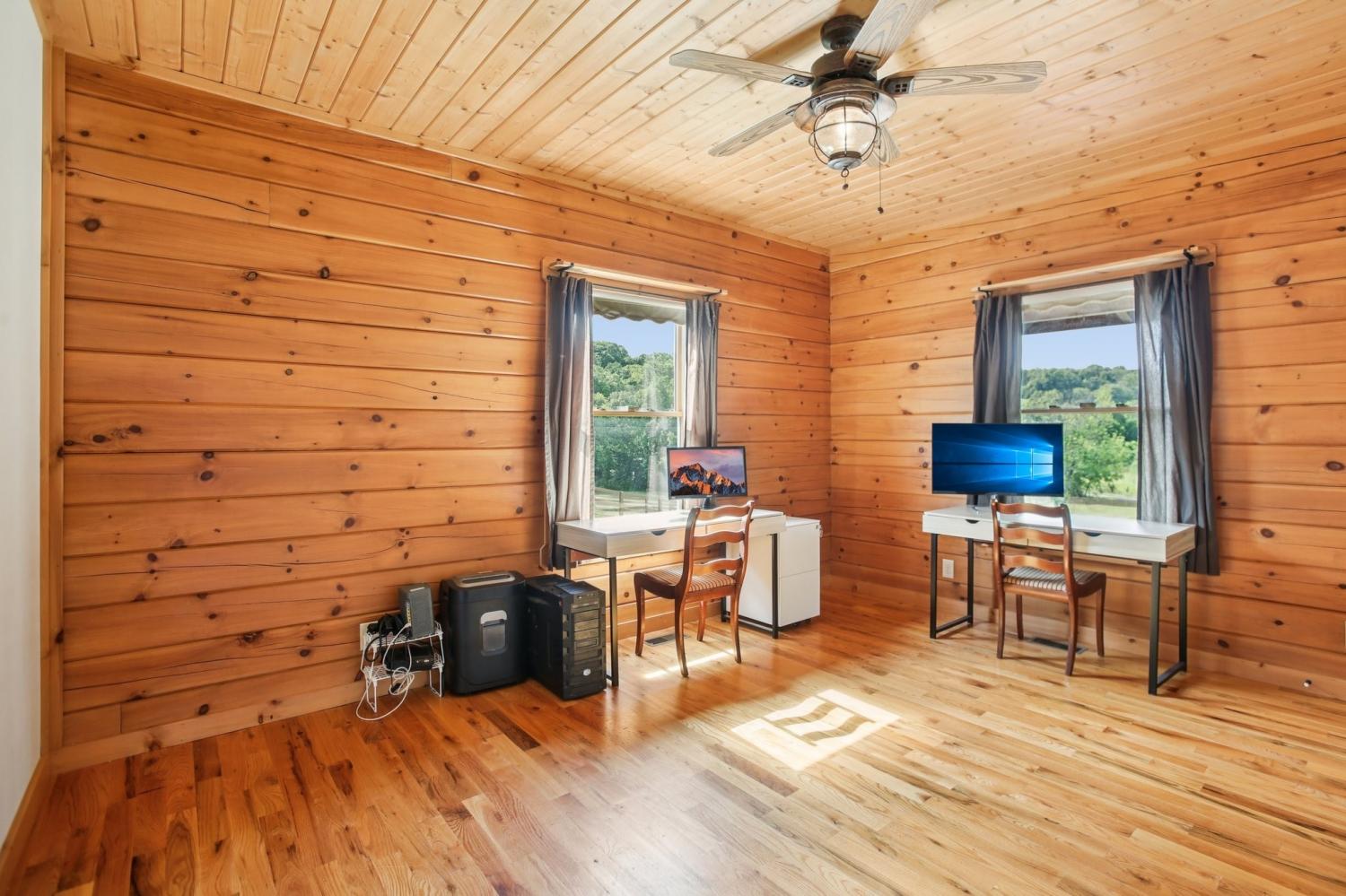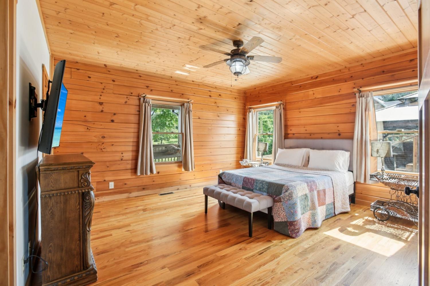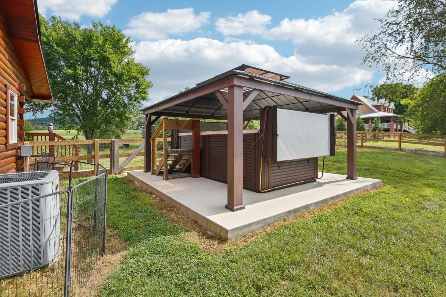 Experience uncompromised country living in this meticulously crafted 3-bedroom, 2-bathroom custom cabin. Centrally positioned on 5 gently rolling acres, this residence has meticulous maintenance and significant upgrades within the past four years. Conveniently located just 45 miles from downtown Nashville, it offers a serene, secluded atmosphere. The property is ideally suited for horses and cattle, featuring pastures enclosed by board, woven wire, electric fencing and remote control power gates, as well as a compact barn with water access. Strategic plantings of rows of Thuja Green Giants enhance both aesthetic appeal and privacy. This custom cabin seamlessly blends a tranquil country lifestyle with modern conveniences. It boasts soaring tongue-and-groove ceilings, a warm gas stone fireplace, and a spacious chef's kitchen outfitted with solid wood cabinetry, expansive countertops, and a premium 6-burner dual-fuel Thor range. The 14-foot-wide covered deck provides an ideal setting to appreciate the peaceful pastures, complimented by dual fans for comfort. For refreshment or relaxation, a private outdoor oasis awaits: a heated, four-season jetted pool, securely situated on a concrete pad within a custom pavilion, perfect for recreation, exercise, or unwinding. Additional exterior features include a newer roof, leaf guard gutter system, professional staining of the cabin and a paved driveway. The unfinished basement/garage features professionally installed non-slip epoxy flooring and climate-controlled storage. The basement has amazing insulation! ICF (Insulated Concrete Form) The property offers two garages and covered parking for an additional three vehicles, alongside two smaller covered spaces for recreational vehicles. There is also a monitored security system and dual generators, as well as 30 amp and 50 amp power boxes just outside of the garage so in the event of an emergency- you are covered! Mortgage savings may be available for buyers of this listing.