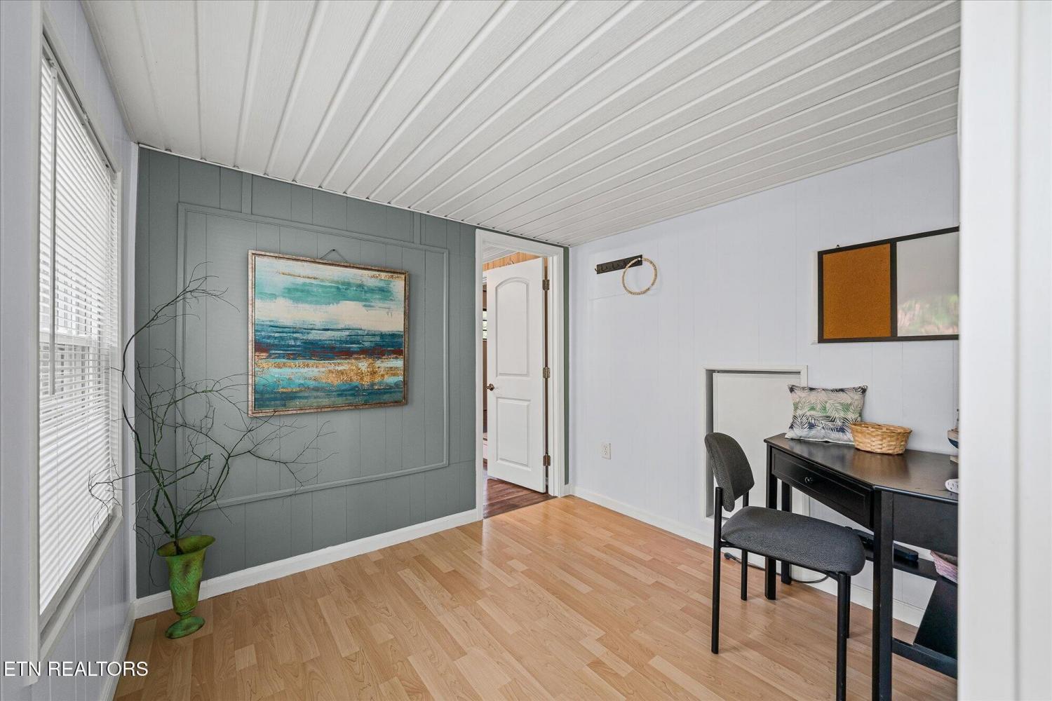 This spacious Park Model in Holiday Out had been completely renovated! At 748 SQ ft, this 2 bed/1 bath plus bonus space can be used as a vacation home or for year round resort living! Recent improvements include a new metal roof and gutters, updated plumbing and electrical- including new panel box and washer/dryer hookups, new flooring, new paint in neutral colors throughout, updated bathroom, light fixtures, and new low maintenance landscaping. Central Heating and Cooling provides year round comfort, and property is on sewer. 🏠A wall of windows spanning one side of the house brings in lots of natural light to the living room and office/flex space. The kitchen boasts a breakfast bar and tons of cabinets, electric fireplace for auxiliary heat and ambience, and attached dining area with bay window. Two bedrooms, hall bath with new tub insert and flooring, and large hall closet round out the interior. 🌳Exterior features include freshly graveled front with room to park multiple vehicles, large storage shed, new landscaping, and privacy fence in the back. ✨Enjoy everything Holiday Out has to offer, including a private beach, picnic area and pavilion with community events, lake access for your boat, and coin laundry, along with all of the amenities of Lake Tansi. ⛳ Lake Tansi Village has an 18 hole golf course with putting green and pro shop, lakes, marina, beach area, indoor and outdoor pools, rec facilities, clubhouse with year round activities calendar, 2 restaurants, security, and fire department. Call today to schedule your showing! Buyer to verify all information before making an informed offer.