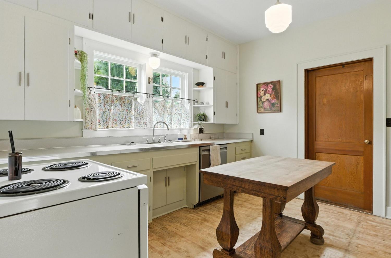 Charming home in the Cleveland's Historic District! Custom built in 1940, this lovely home has seen only two owners! Impeccably maintained, this 4 bedroom, 1.5 bath home blends timeless character with modern convenience. Beautiful hardwood floors, arched doorways, and abundant natural light create a warm, inviting feel throughout. The spacious living room flows into a sunny flex room—ideal for an office, playroom, or reading nook. This flex room has a separate entrance, ideal for work-from-home setup. A formal dining room connects to the bright kitchen, featuring ample cabinetry with fresh paint, open shelving, and a deep farmhouse-style window overlooking the yard. The generous laundry/mudroom offers wood paneling, storage, and outdoor access. Primary Bedroom, second BR and office/flex on main level! Upstairs offers two additional bedrooms and half bath. Outside, enjoy a large yard with mature trees for shade and privacy plus detached garage. Only 0.7 miles to Lee University! Located just minutes from schools, shopping, parks, and Cleveland's vibrant downtown, this home is perfect for anyone seeking classic style in a convenient location.