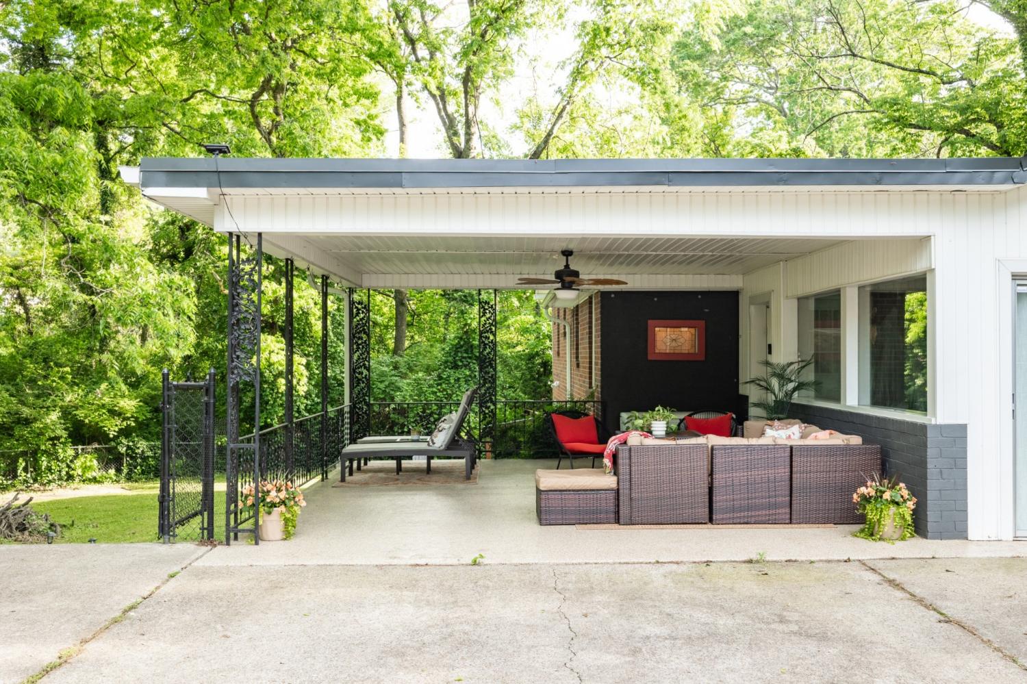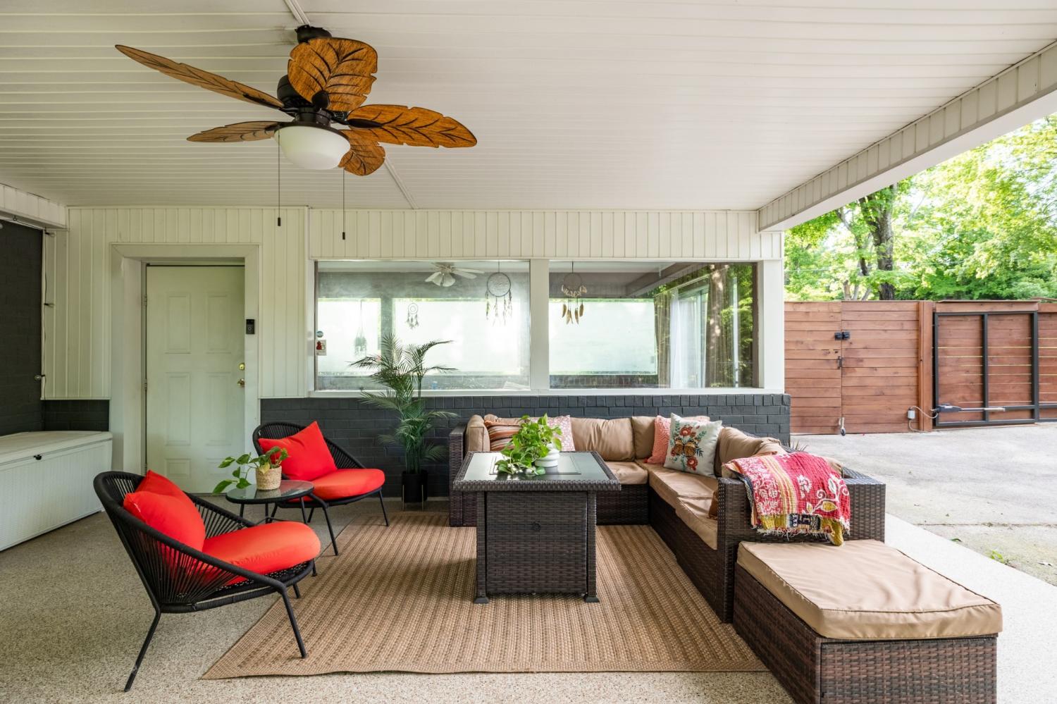 4600 Saunders Avenue – Mid-Century Home in Gra-Mar Acres This well-maintained split-level home offers a blend of mid-century character and modern convenience in the Gra-Mar Acres neighborhood. A bright and open living space welcomes you through the red front door, with large picture windows that provide abundant natural light. The kitchen features wood paneling, stained glass accents, slate stainless steel appliances, a spacious pantry, and a dining area that opens to a sunroom with surrounding windows. Upstairs includes a full bath and three bedrooms with hardwood floors and generous light; one bedroom has been converted into a walk-in closet. Outdoor features include a covered carport and lounge area with lifetime flooring by Maverick Coatings, a private fenced backyard with mature landscaping, and an electronic gate for secure vehicle access. The finished walkout basement offers a bedroom, full bathroom, flexible living area, laundry room, and potential for a full kitchenette—ideal for guest accommodations, a home office, or rental income. This property combines distinctive design with versatile living options, presenting a unique opportunity in Nashville’s real estate market. It's time to make this HOME yours!