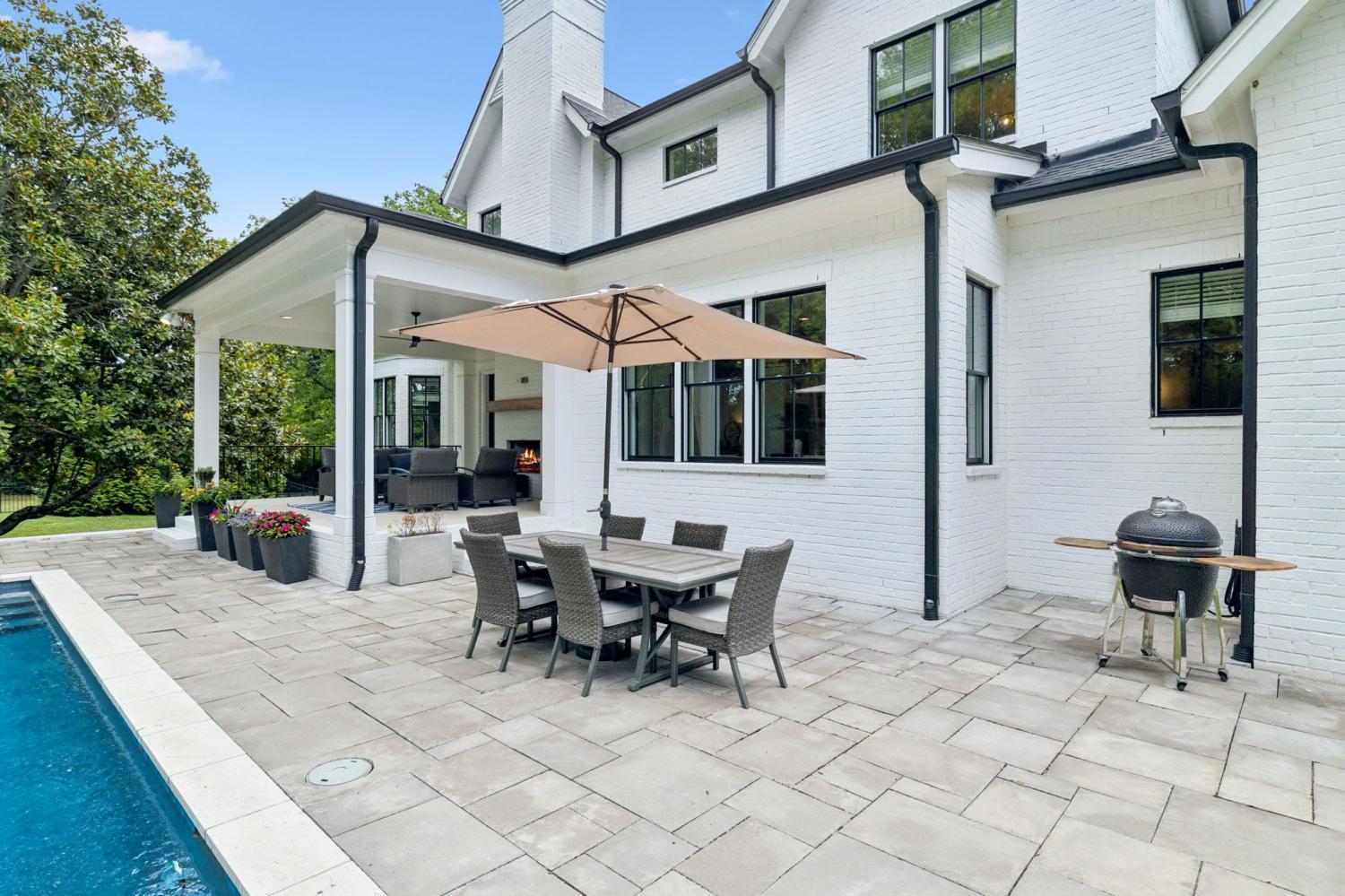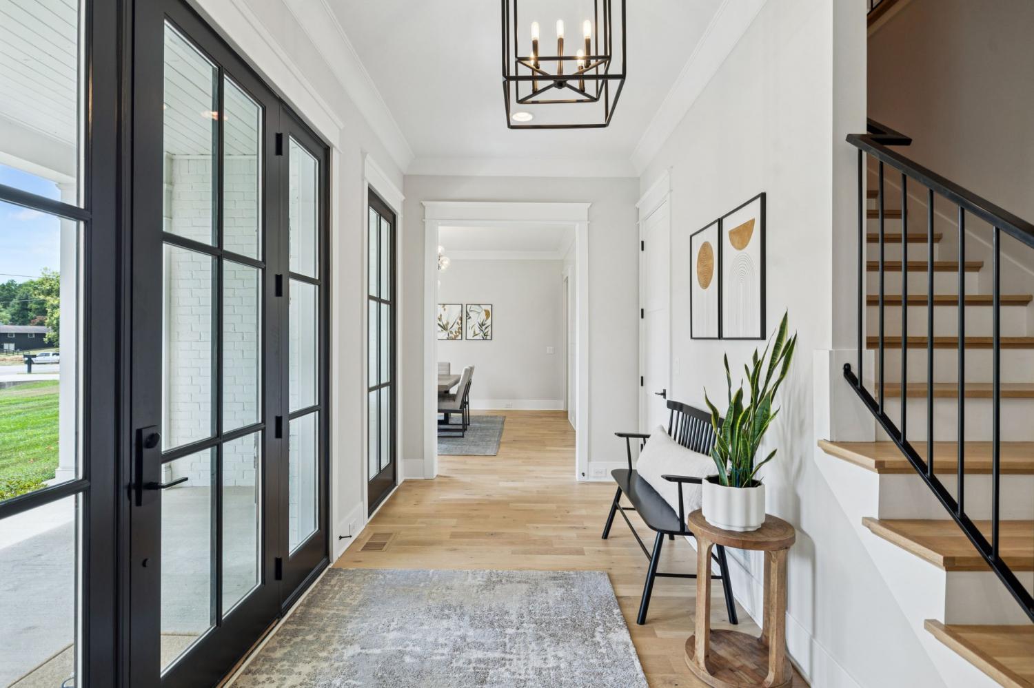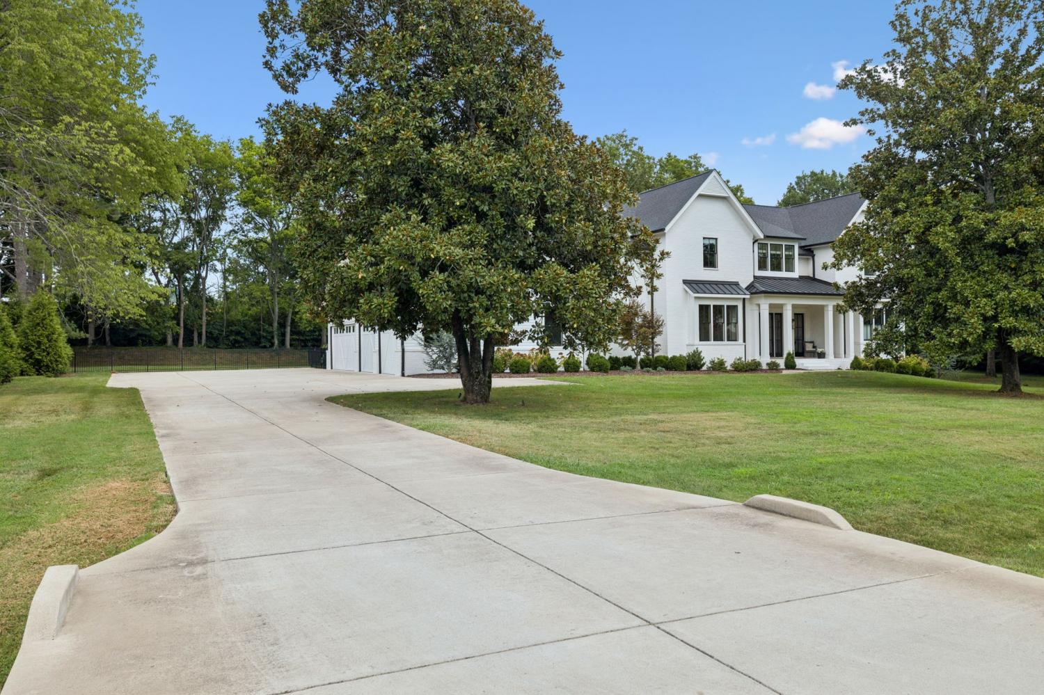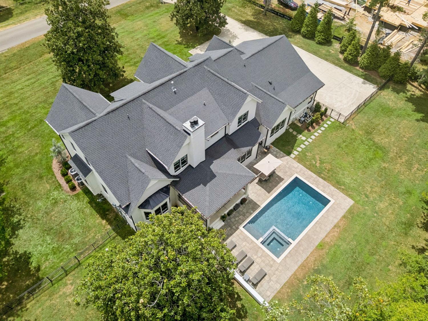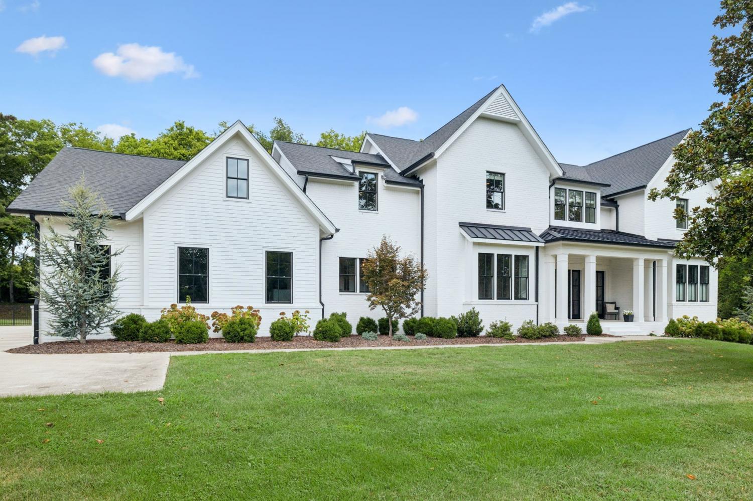 Luxury, comfort, and convenience meet at 5116 Williamsburg Rd in the sought-after Meadowlake community of Brentwood. From the moment you arrive, the beautiful white brick exterior, welcoming covered front porch, and inviting entry foyer set the tone for the elegance inside. Just off the foyer, the formal dining room features a shiplap accent wall, creating a seamless connection to the home’s timeless design details. The heart of the home is the gourmet kitchen, boasting top-of-the-line appliances, ceiling-height cabinetry, a large center island, quartz countertops, a hidden walk-in pantry, and a spacious breakfast nook with a continued shiplap accent wall. The adjoining living room offers a cozy fireplace framed by wooden beams, custom built-in shelving, and dual French doors that open to the covered back porch—perfect for indoor-outdoor living. The main-level primary suite is a private retreat, showcasing a vaulted shiplap ceiling, bay window seating area, and a spa-inspired bath with a stand-alone soaking tub, double vanities, a dedicated makeup station, built-in tile bench in the shower, and a walk-in closet with custom storage. A guest suite on the main floor provides ideal accommodations for visitors. Additional thoughtful touches include a drop-zone with hooks and a bench, and a large laundry/utility room with generous counter space, hanging rods, and even a desk work area. Upstairs, you’ll find a dedicated office or creative space, a spacious bonus room with a wet bar and beverage center, three more bedrooms, two full baths, and abundant unfinished storage space—offering room for future expansion. Step outside to your private 1-acre, fenced backyard oasis, complete with a covered porch featuring a fireplace, a sparkling heated saltwater pool, and an integrated spa—all backed by mature trees for privacy. Zoned for Williamson County’s award-winning schools and ideally located near shopping, dining, and I-65, this home offers the ultimate living experience.