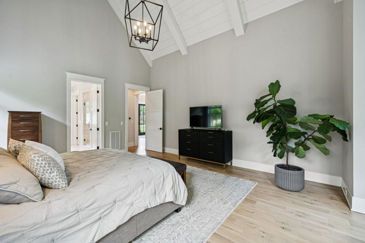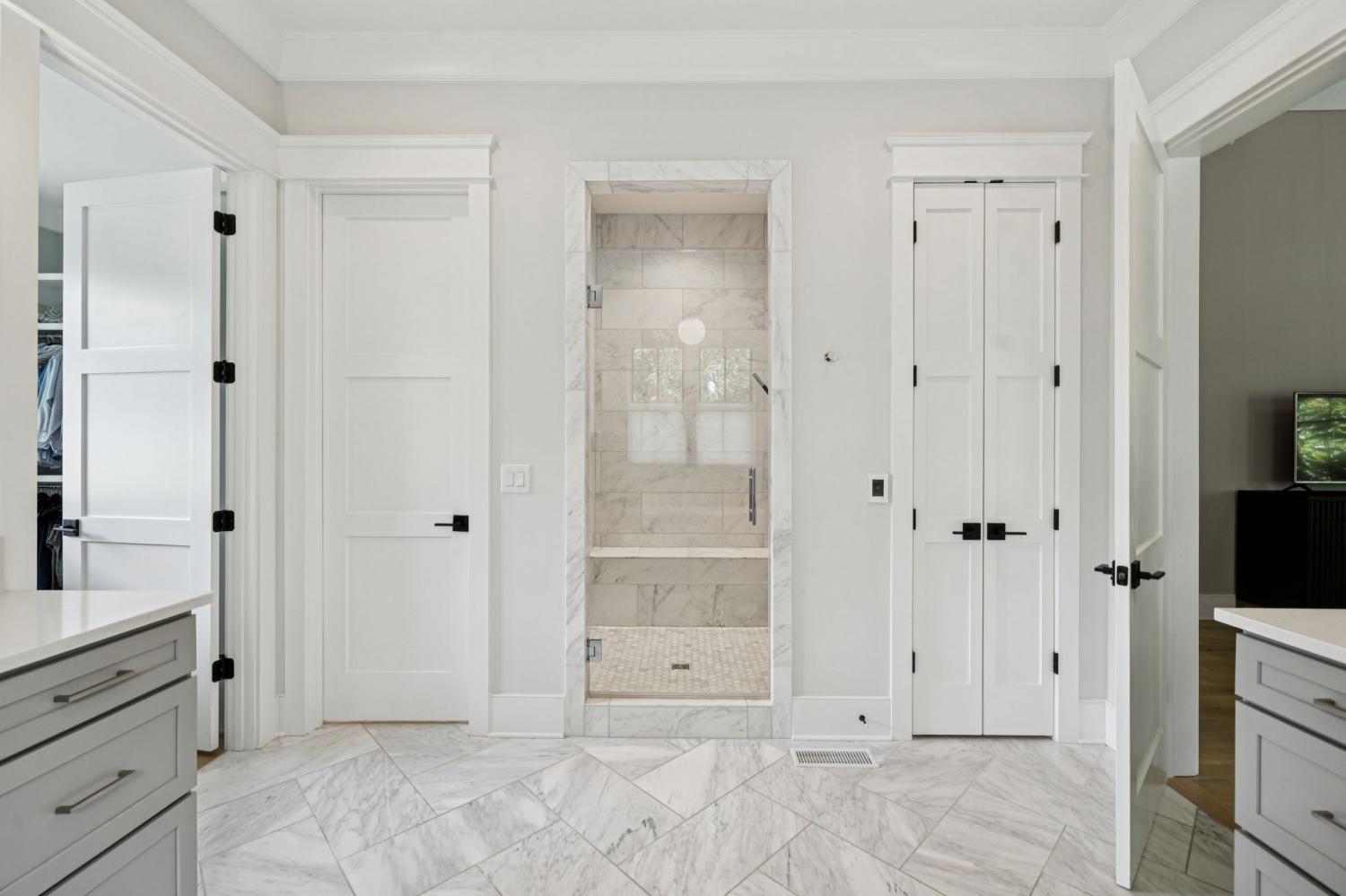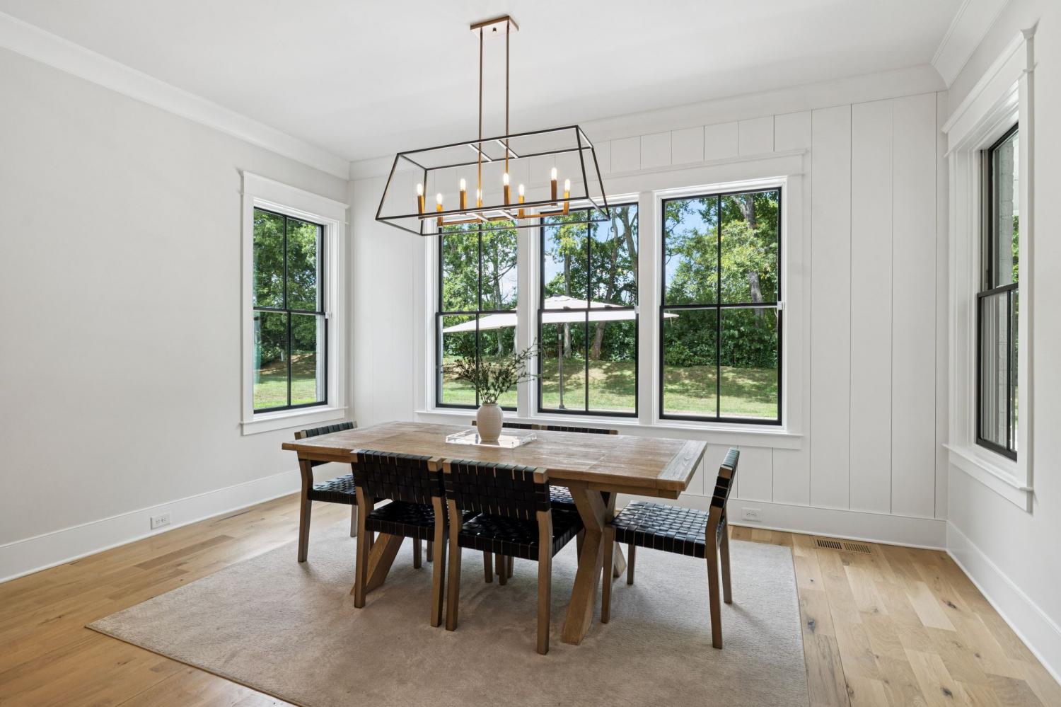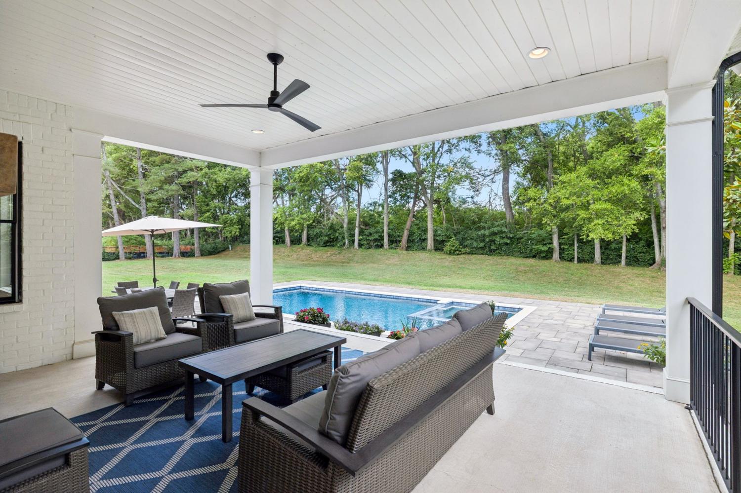Luxury, comfort, and convenience meet at 5116 Williamsburg Rd in the sought-after Meadowlake community of Brentwood. From the moment you arrive, the beautiful white brick exterior, welcoming covered front porch, and inviting entry foyer set the tone for the elegance inside. Just off the foyer, the formal dining room features a shiplap accent wall, creating a seamless connection to the home’s timeless design details. The heart of the home is the gourmet kitchen, boasting top-of-the-line appliances, ceiling-height cabinetry, a large center island, quartz countertops, a hidden walk-in pantry, and a spacious breakfast nook with a continued shiplap accent wall. The adjoining living room offers a cozy fireplace framed by wooden beams, custom built-in shelving, and dual French doors that open to the covered back porch—perfect for indoor-outdoor living. The main-level primary suite is a private retreat, showcasing a vaulted shiplap ceiling, bay window seating area, and a spa-inspired bath with a stand-alone soaking tub, double vanities, a dedicated makeup station, built-in tile bench in the shower, and a walk-in closet with custom storage. A guest suite on the main floor provides ideal accommodations for visitors. Additional thoughtful touches include a drop-zone with hooks and a bench, and a large laundry/utility room with generous counter space, hanging rods, and even a desk work area. Upstairs, you’ll find a dedicated office or creative space, a spacious bonus room with a wet bar and beverage center, three more bedrooms, two full baths, and abundant unfinished storage space—offering room for future expansion. Step outside to your private 1-acre, fenced backyard oasis, complete with a covered porch featuring a fireplace, a sparkling heated saltwater pool, and an integrated spa—all backed by mature trees for privacy. Zoned for Williamson County’s award-winning schools and ideally located near shopping, dining, and I-65, this home offers the ultimate living experience.