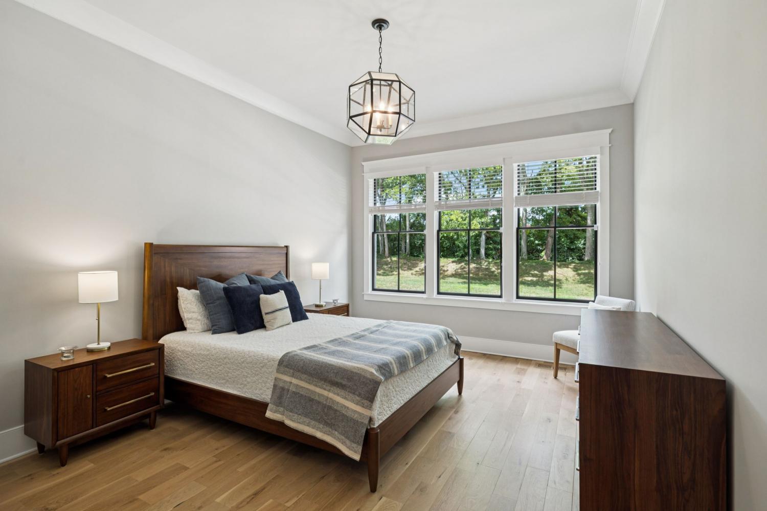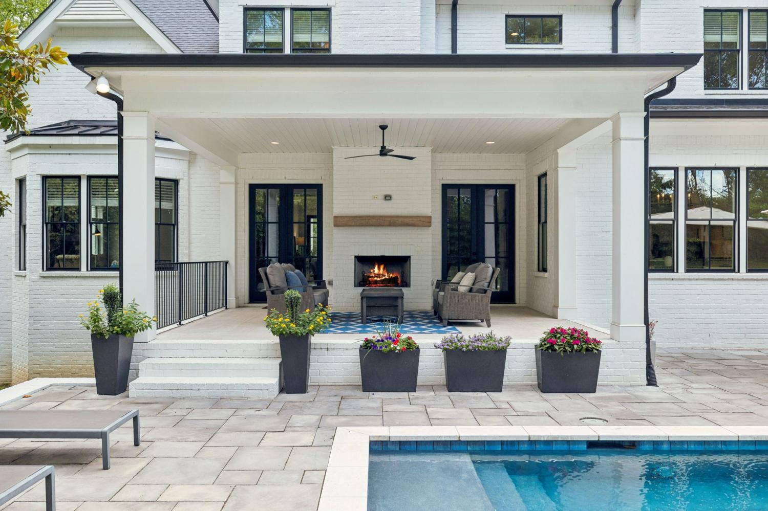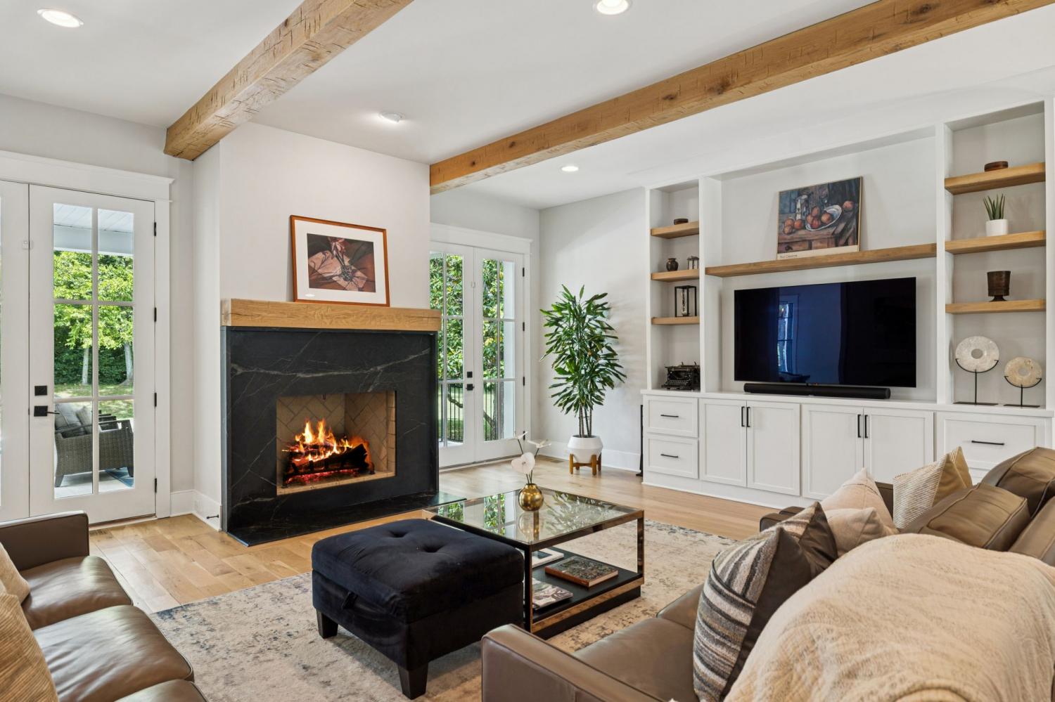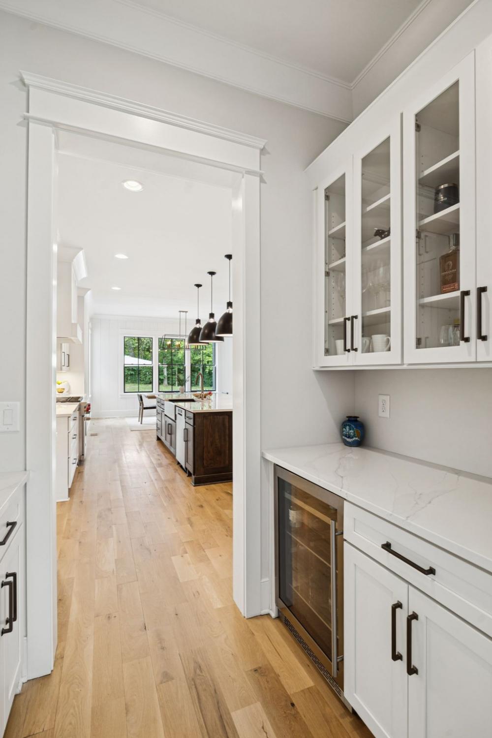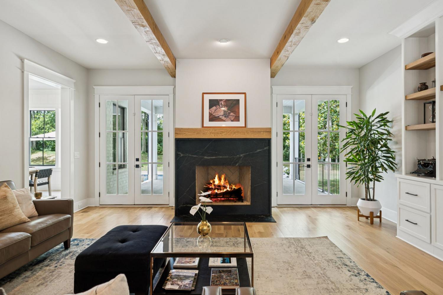 Luxury, comfort, and convenience meet at 5116 Williamsburg Rd in the sought-after Meadowlake community of Brentwood. From the moment you arrive, the beautiful white brick exterior, welcoming covered front porch, and inviting entry foyer set the tone for the elegance inside. Just off the foyer, the formal dining room features a shiplap accent wall, creating a seamless connection to the home’s timeless design details. The heart of the home is the gourmet kitchen, boasting top-of-the-line appliances, ceiling-height cabinetry, a large center island, quartz countertops, a hidden walk-in pantry, and a spacious breakfast nook with a continued shiplap accent wall. The adjoining living room offers a cozy fireplace framed by wooden beams, custom built-in shelving, and dual French doors that open to the covered back porch—perfect for indoor-outdoor living. The main-level primary suite is a private retreat, showcasing a vaulted shiplap ceiling, bay window seating area, and a spa-inspired bath with a stand-alone soaking tub, double vanities, a dedicated makeup station, built-in tile bench in the shower, and a walk-in closet with custom storage. A guest suite on the main floor provides ideal accommodations for visitors. Additional thoughtful touches include a drop-zone with hooks and a bench, and a large laundry/utility room with generous counter space, hanging rods, and even a desk work area. Upstairs, you’ll find a dedicated office or creative space, a spacious bonus room with a wet bar and beverage center, three more bedrooms, two full baths, and abundant unfinished storage space—offering room for future expansion. Step outside to your private 1-acre, fenced backyard oasis, complete with a covered porch featuring a fireplace, a sparkling heated saltwater pool, and an integrated spa—all backed by mature trees for privacy. Zoned for Williamson County’s award-winning schools and ideally located near shopping, dining, and I-65, this home offers the ultimate living experience.