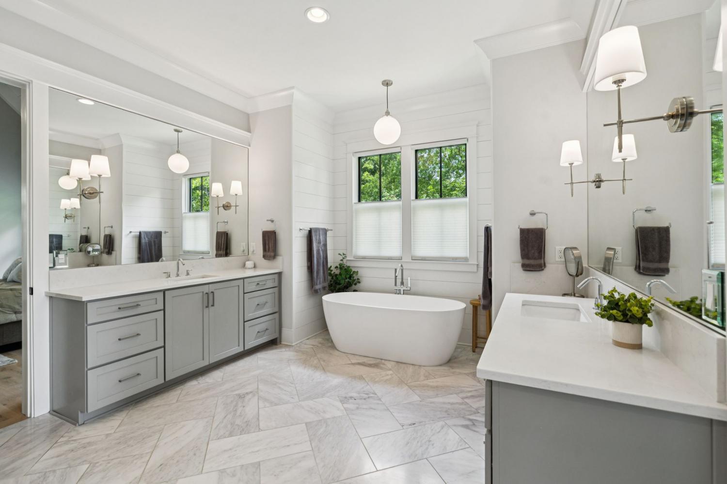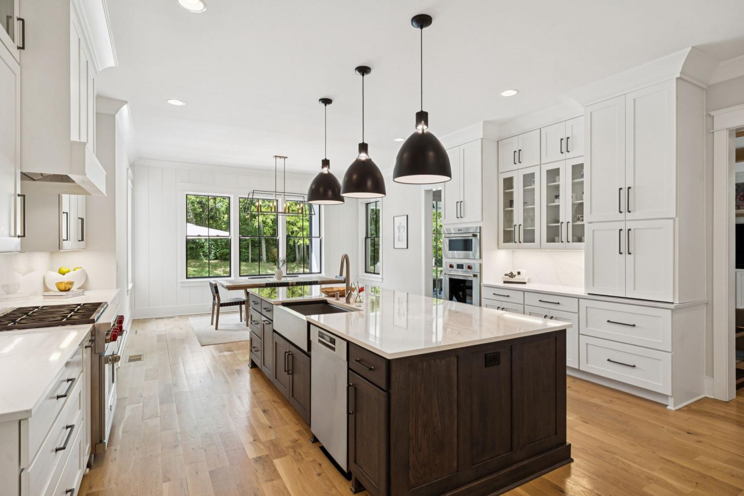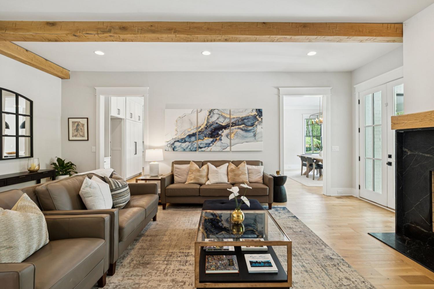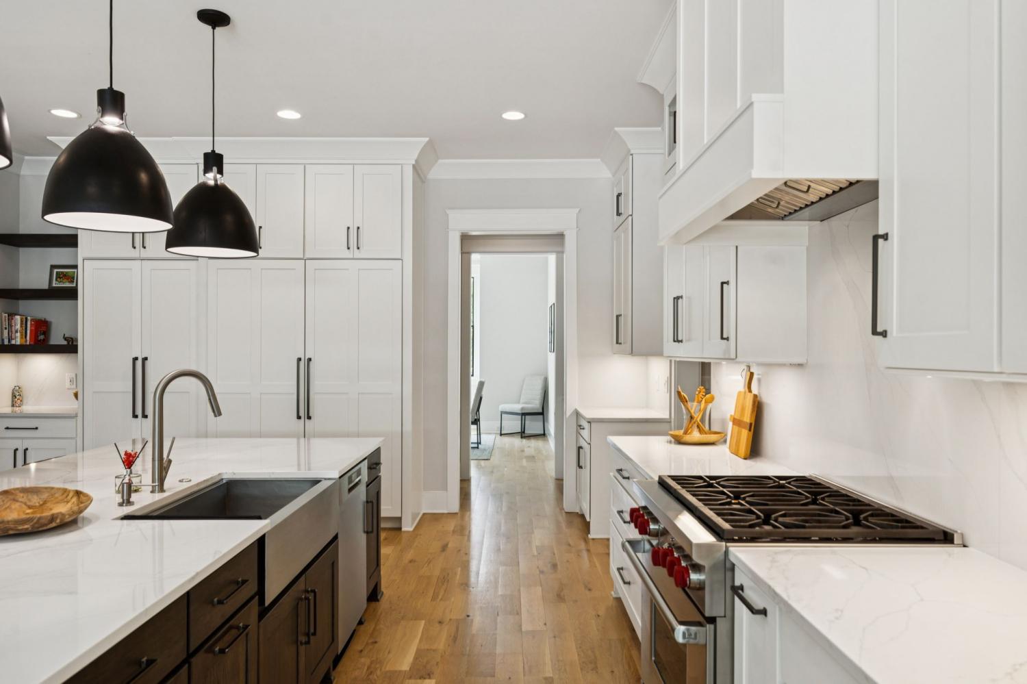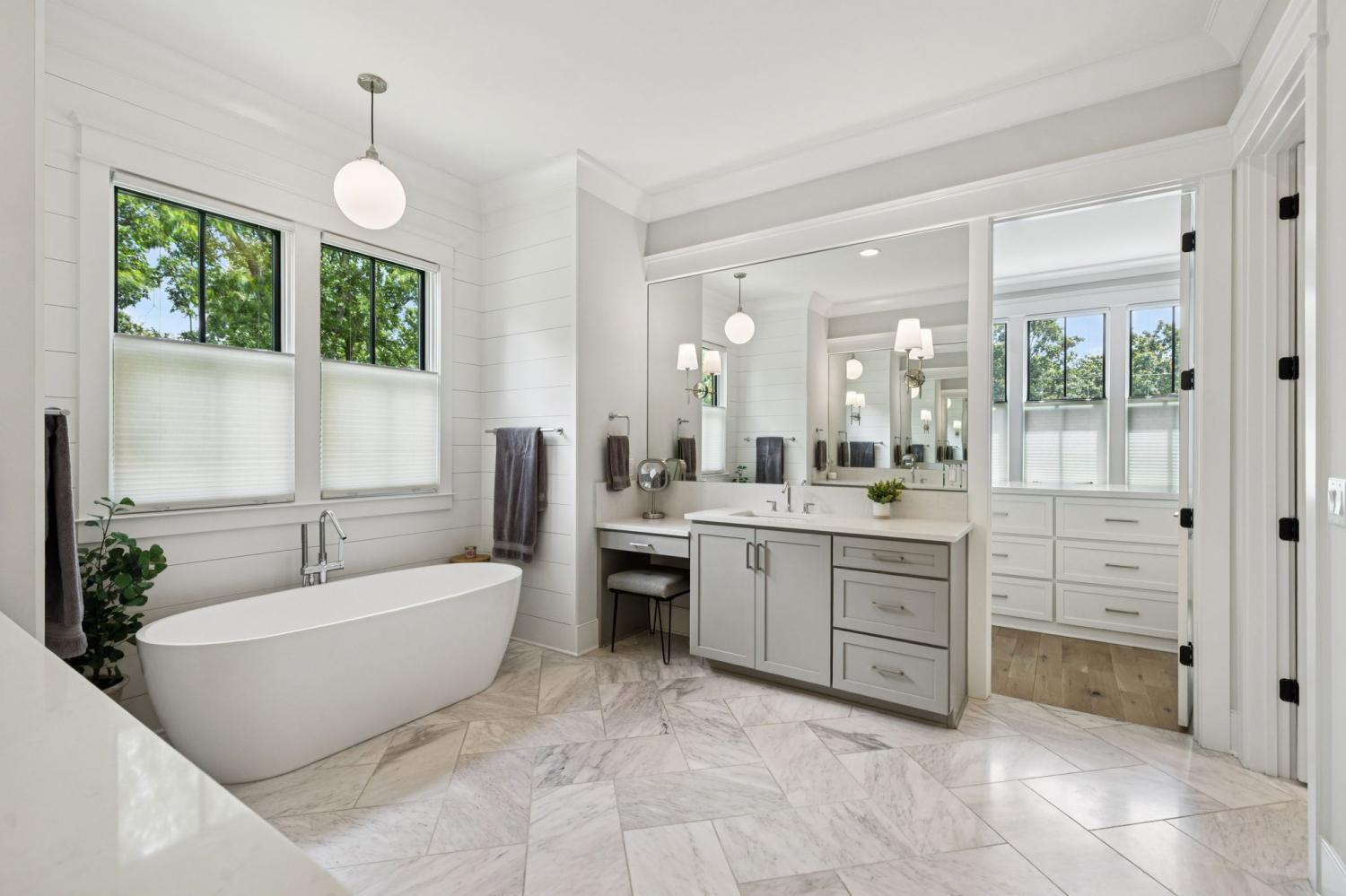 Luxury, comfort, and convenience meet at 5116 Williamsburg Rd in the sought-after Meadowlake community of Brentwood. From the moment you arrive, the beautiful white brick exterior, welcoming covered front porch, and inviting entry foyer set the tone for the elegance inside. Just off the foyer, the formal dining room features a shiplap accent wall, creating a seamless connection to the home’s timeless design details. The heart of the home is the gourmet kitchen, boasting top-of-the-line appliances, ceiling-height cabinetry, a large center island, quartz countertops, a hidden walk-in pantry, and a spacious breakfast nook with a continued shiplap accent wall. The adjoining living room offers a cozy fireplace framed by wooden beams, custom built-in shelving, and dual French doors that open to the covered back porch—perfect for indoor-outdoor living. The main-level primary suite is a private retreat, showcasing a vaulted shiplap ceiling, bay window seating area, and a spa-inspired bath with a stand-alone soaking tub, double vanities, a dedicated makeup station, built-in tile bench in the shower, and a walk-in closet with custom storage. A guest suite on the main floor provides ideal accommodations for visitors. Additional thoughtful touches include a drop-zone with hooks and a bench, and a large laundry/utility room with generous counter space, hanging rods, and even a desk work area. Upstairs, you’ll find a dedicated office or creative space, a spacious bonus room with a wet bar and beverage center, three more bedrooms, two full baths, and abundant unfinished storage space—offering room for future expansion. Step outside to your private 1-acre, fenced backyard oasis, complete with a covered porch featuring a fireplace, a sparkling heated saltwater pool, and an integrated spa—all backed by mature trees for privacy. Zoned for Williamson County’s award-winning schools and ideally located near shopping, dining, and I-65, this home offers the ultimate living experience.