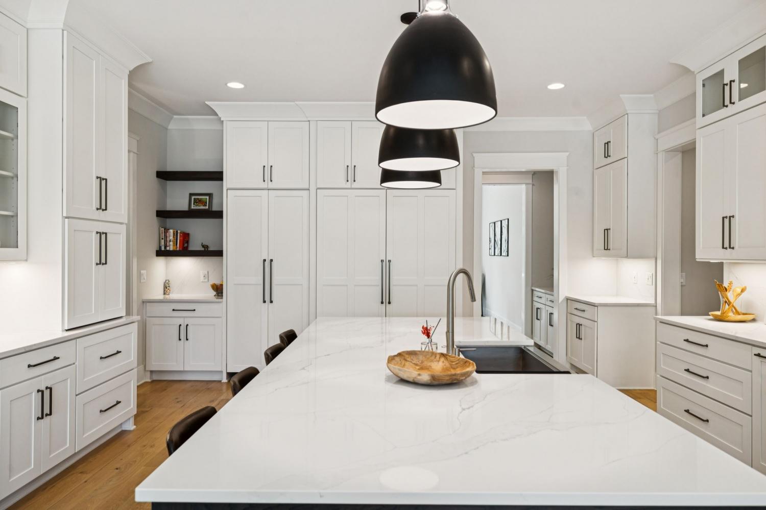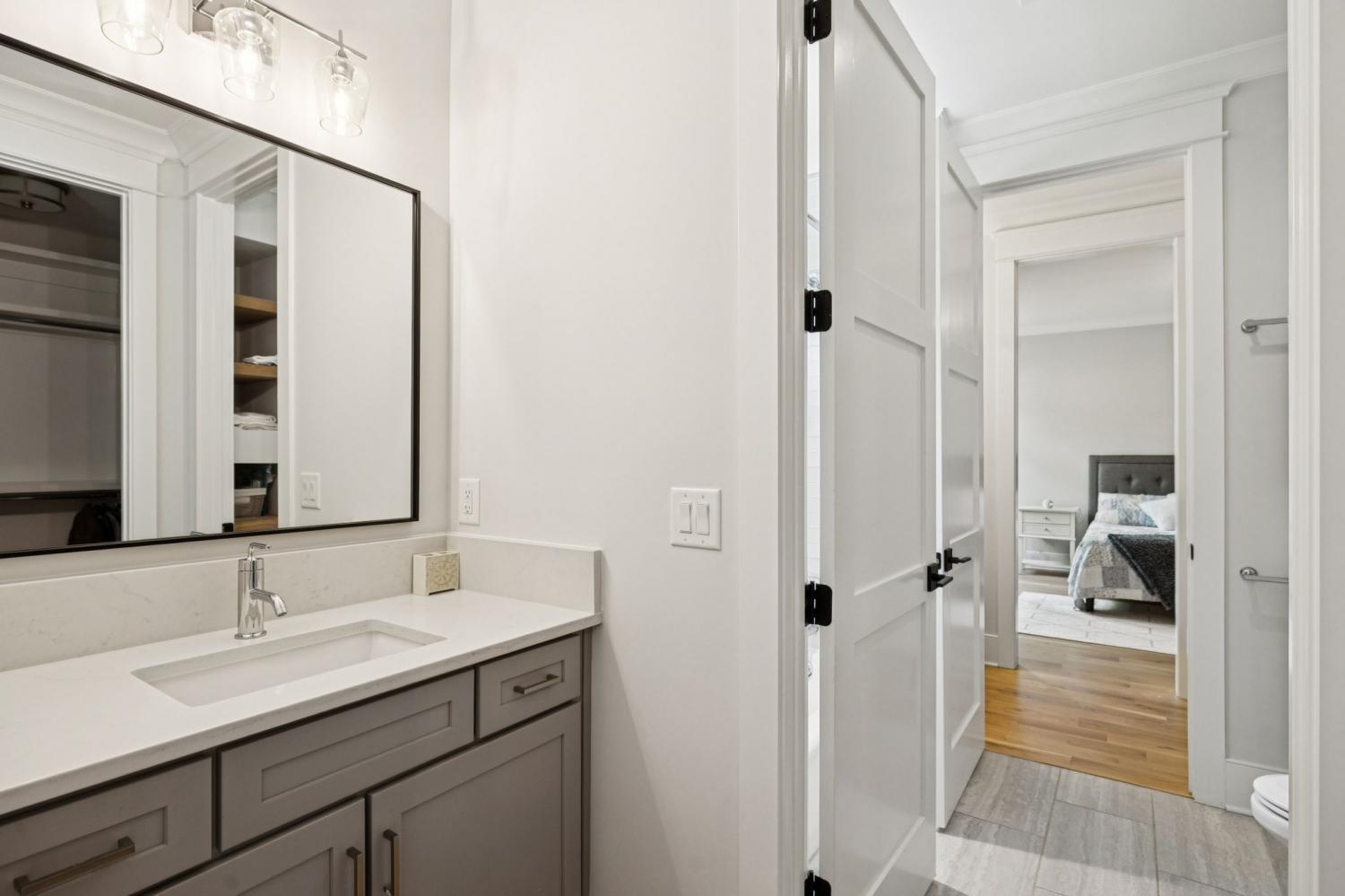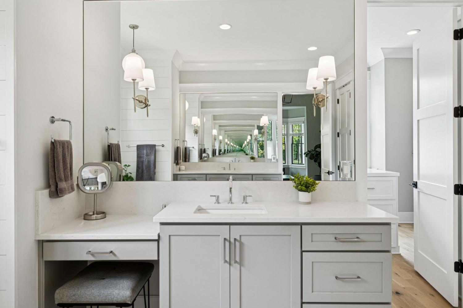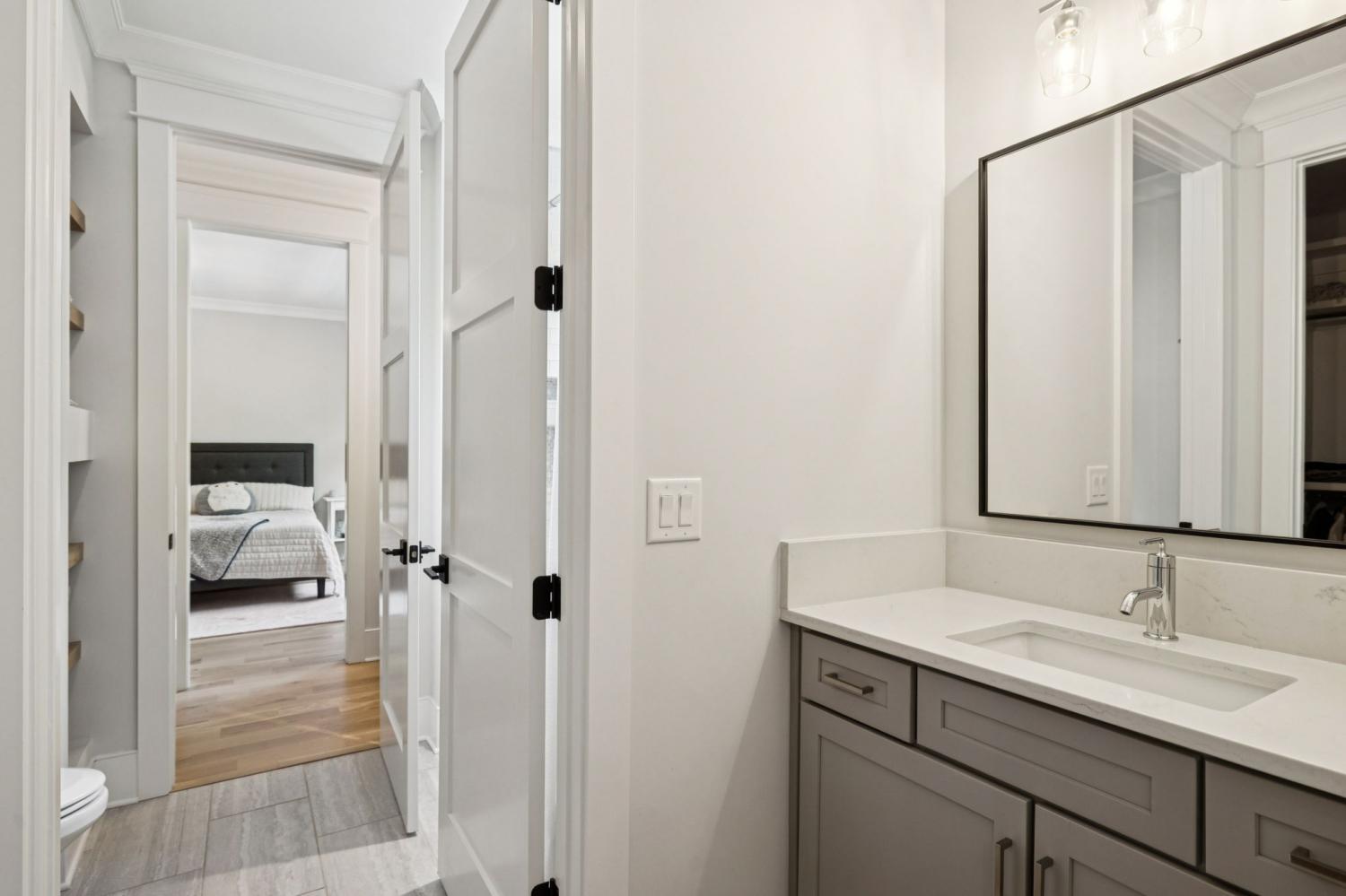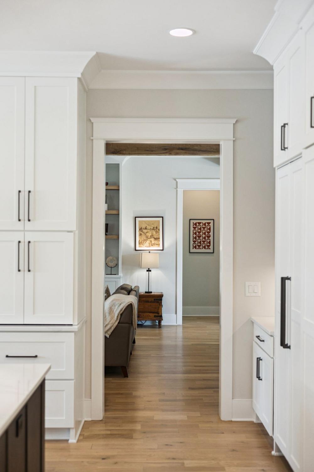 Luxury, comfort, and convenience meet at 5116 Williamsburg Rd in the sought-after Meadowlake community of Brentwood. From the moment you arrive, the beautiful white brick exterior, welcoming covered front porch, and inviting entry foyer set the tone for the elegance inside. Just off the foyer, the formal dining room features a shiplap accent wall, creating a seamless connection to the home’s timeless design details. The heart of the home is the gourmet kitchen, boasting top-of-the-line appliances, ceiling-height cabinetry, a large center island, quartz countertops, a hidden walk-in pantry, and a spacious breakfast nook with a continued shiplap accent wall. The adjoining living room offers a cozy fireplace framed by wooden beams, custom built-in shelving, and dual French doors that open to the covered back porch—perfect for indoor-outdoor living. The main-level primary suite is a private retreat, showcasing a vaulted shiplap ceiling, bay window seating area, and a spa-inspired bath with a stand-alone soaking tub, double vanities, a dedicated makeup station, built-in tile bench in the shower, and a walk-in closet with custom storage. A guest suite on the main floor provides ideal accommodations for visitors. Additional thoughtful touches include a drop-zone with hooks and a bench, and a large laundry/utility room with generous counter space, hanging rods, and even a desk work area. Upstairs, you’ll find a dedicated office or creative space, a spacious bonus room with a wet bar and beverage center, three more bedrooms, two full baths, and abundant unfinished storage space—offering room for future expansion. Step outside to your private 1-acre, fenced backyard oasis, complete with a covered porch featuring a fireplace, a sparkling heated saltwater pool, and an integrated spa—all backed by mature trees for privacy. Zoned for Williamson County’s award-winning schools and ideally located near shopping, dining, and I-65, this home offers the ultimate living experience.