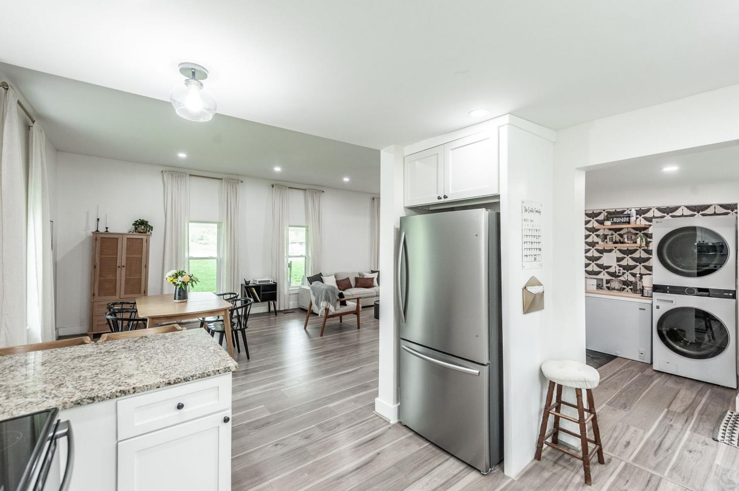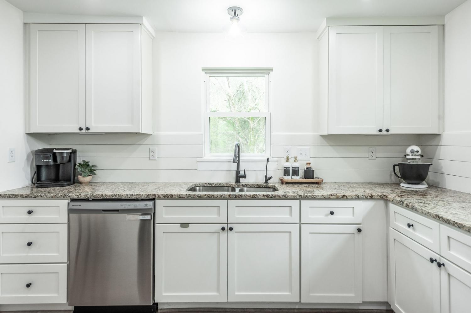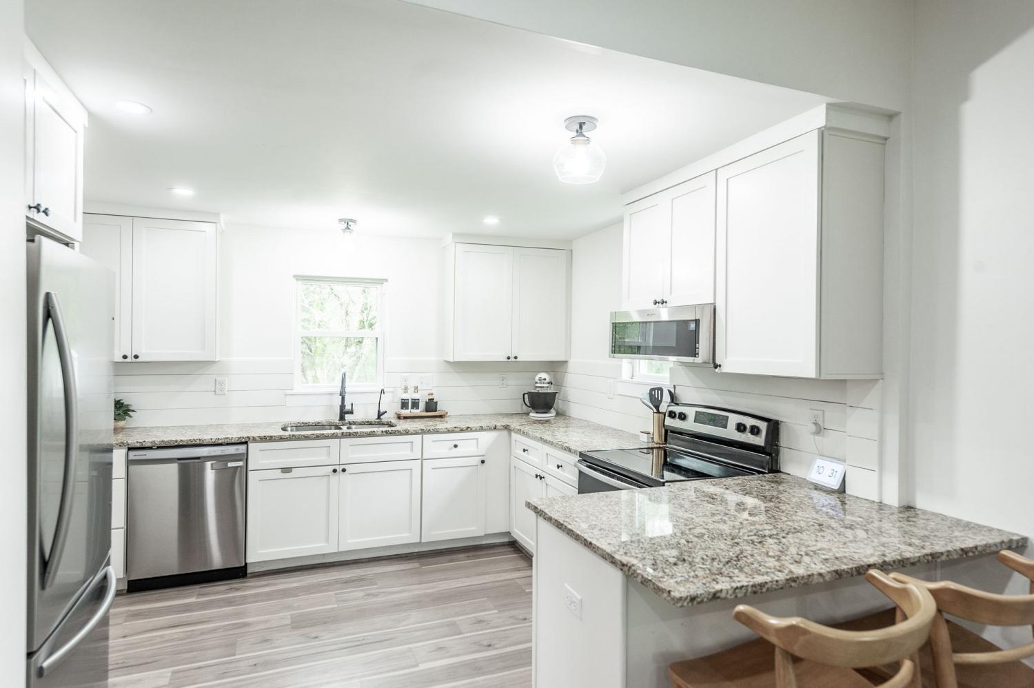 Welcome to this beautifully renovated 1,788 sqft home nestled on a peaceful 1-acre lot. NEW ROOF 8/12/2025. Featuring 3 bedrooms and 2 baths, this home offers an open floor plan with recessed lighting and replacement windows that flood the space with natural light. The kitchen boasts stainless steel appliances, a double sink, and granite countertops—perfect for cooking and entertaining. The spacious primary bedroom includes a stunning ensuite with a skylight, tiled bath, and double vanity. Enjoy relaxing on the covered front porch in this move-in-ready gem!