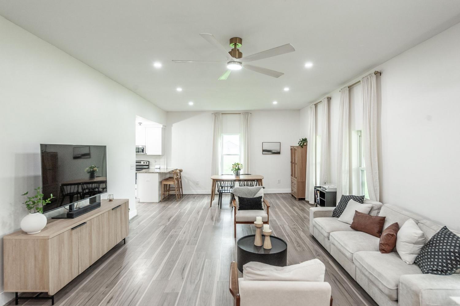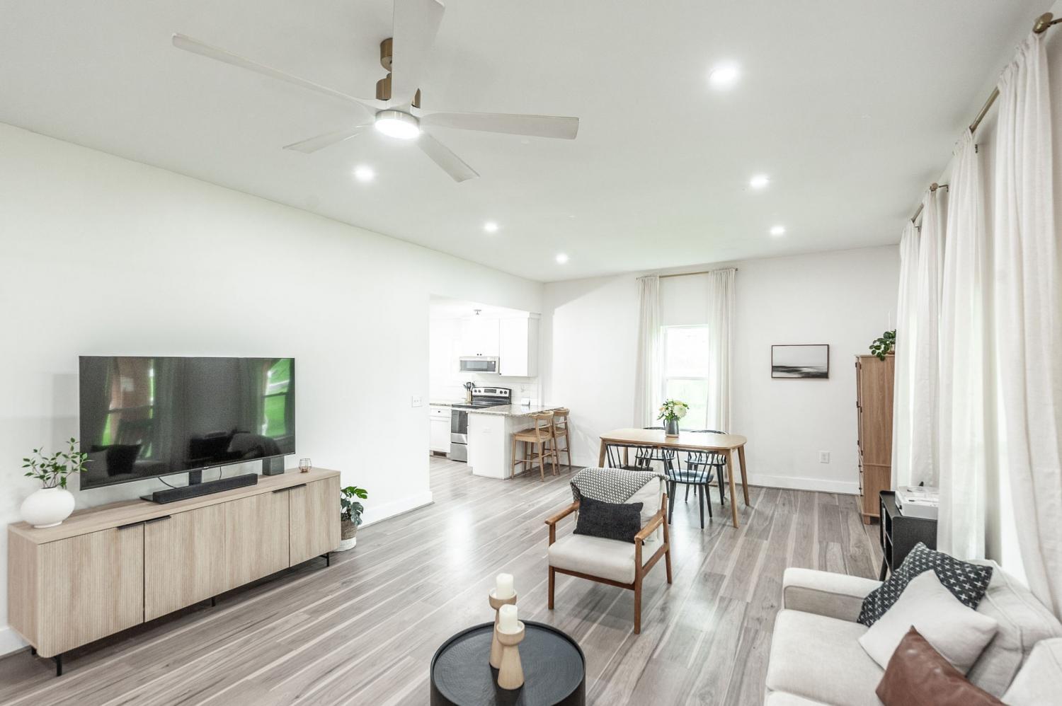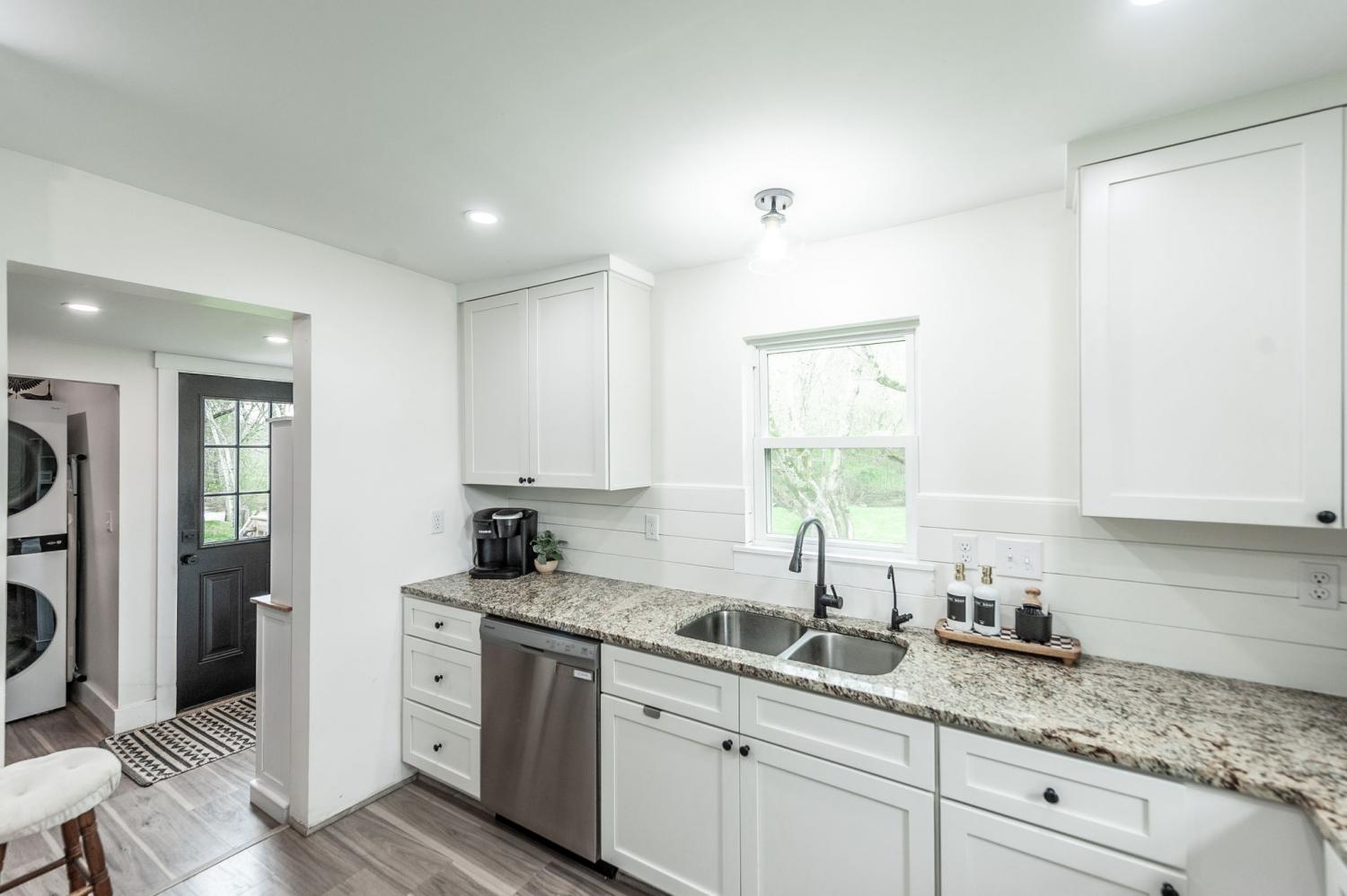 Welcome to this beautifully renovated 1,788 sqft home nestled on a peaceful 1-acre lot. NEW ROOF 8/12/2025. Featuring 3 bedrooms and 2 baths, this home offers an open floor plan with recessed lighting and replacement windows that flood the space with natural light. The kitchen boasts stainless steel appliances, a double sink, and granite countertops—perfect for cooking and entertaining. The spacious primary bedroom includes a stunning ensuite with a skylight, tiled bath, and double vanity. Enjoy relaxing on the covered front porch in this move-in-ready gem!