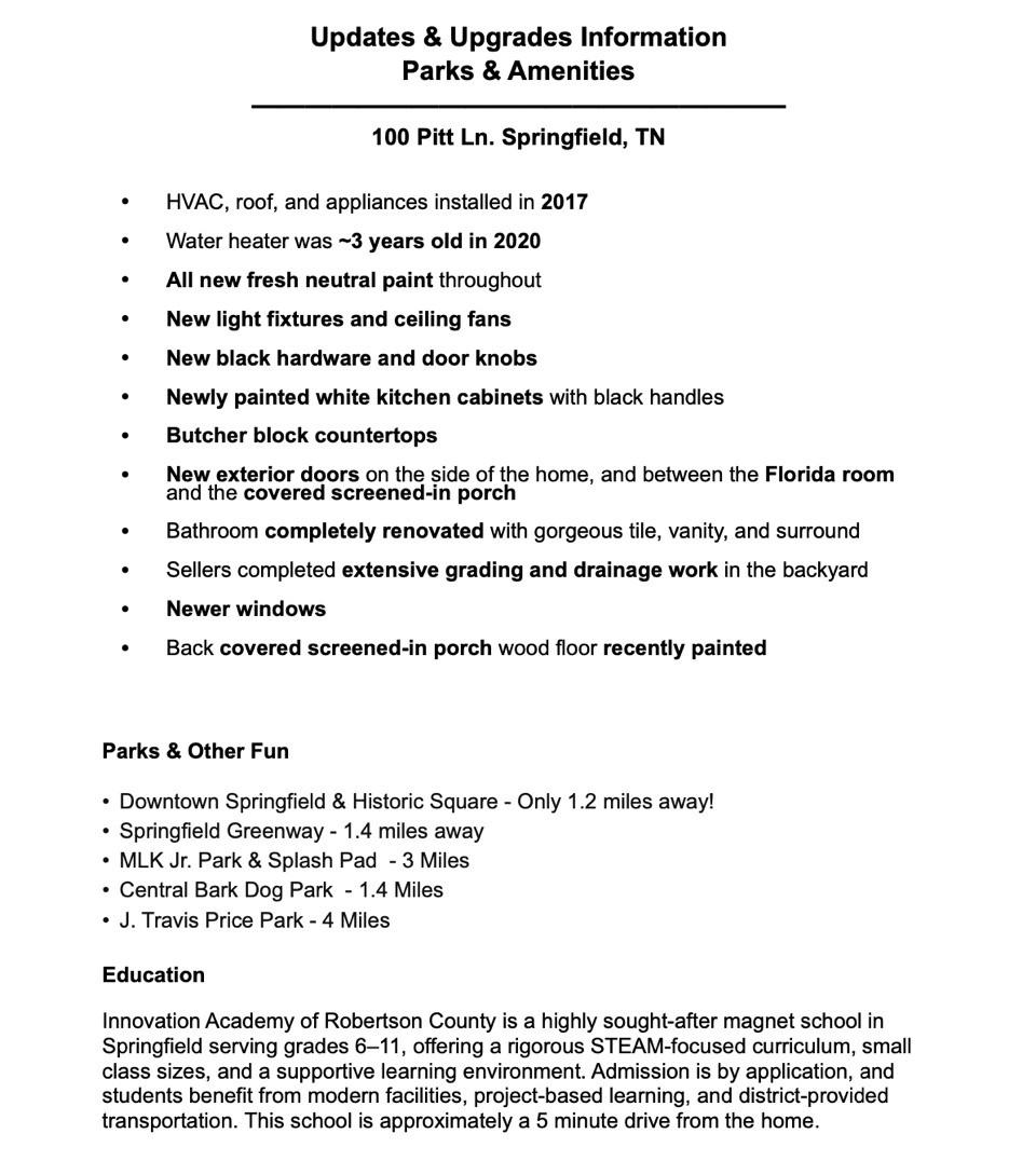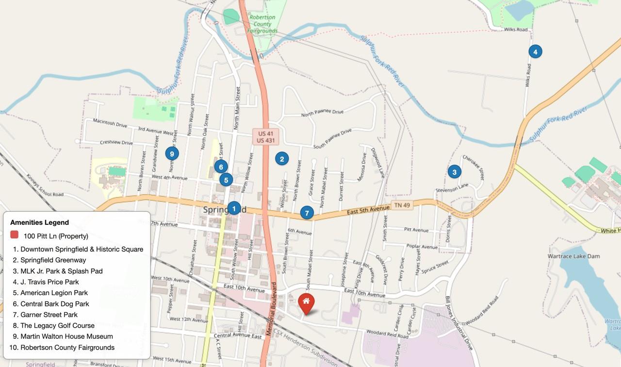 I-65 N to Springfield, becomes Memorial Blvd. Left onto 5th Ave W. Right onto Pitt Ln. First house on left.