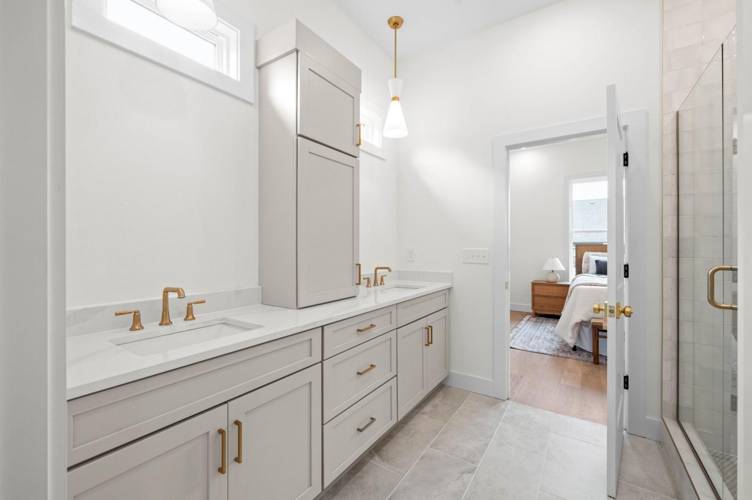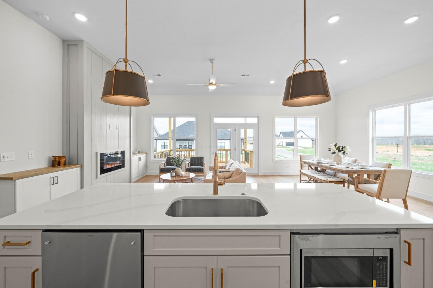 The Myrtle by Homefront builders is a 4 bed, 2.5 bath Ranch with an upstairs bonus room. This house is bathed in natural light from lots of windows and the 10ft ceilings really make it feel spacious. From the stunning 2 story entryway to the well designed main living space, there’s lots to love with this floor plan! The kitchen featured GE cafe appliances and it also has a pantry as well as a large island. A fireplace between cabinets and custom shelving give the living room stylish storage. The bonus room has a half bath and two closets, one that leads right into the attic for additional storage. The laundry room has cabinets and a drop station to keep everything organized! Primary shower features two shower heads and a waterfall fixture as well. The details of this home have all been considered when it comes to design! Homefront Builders homes are backed by a 10 year structural warranty!