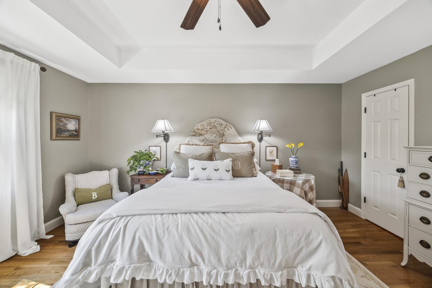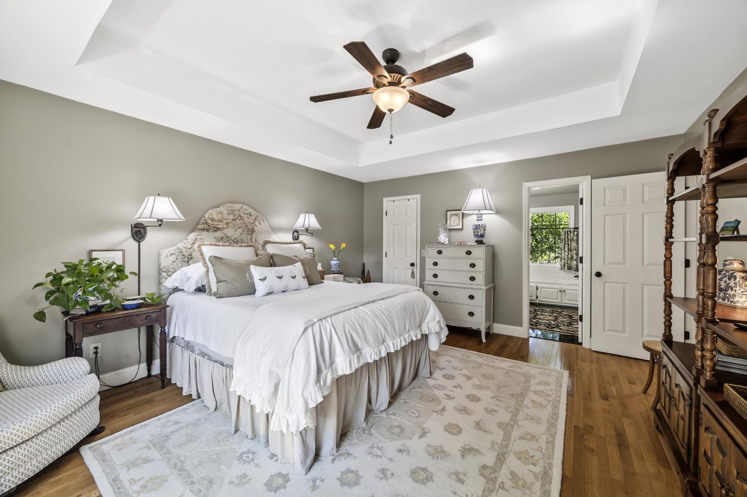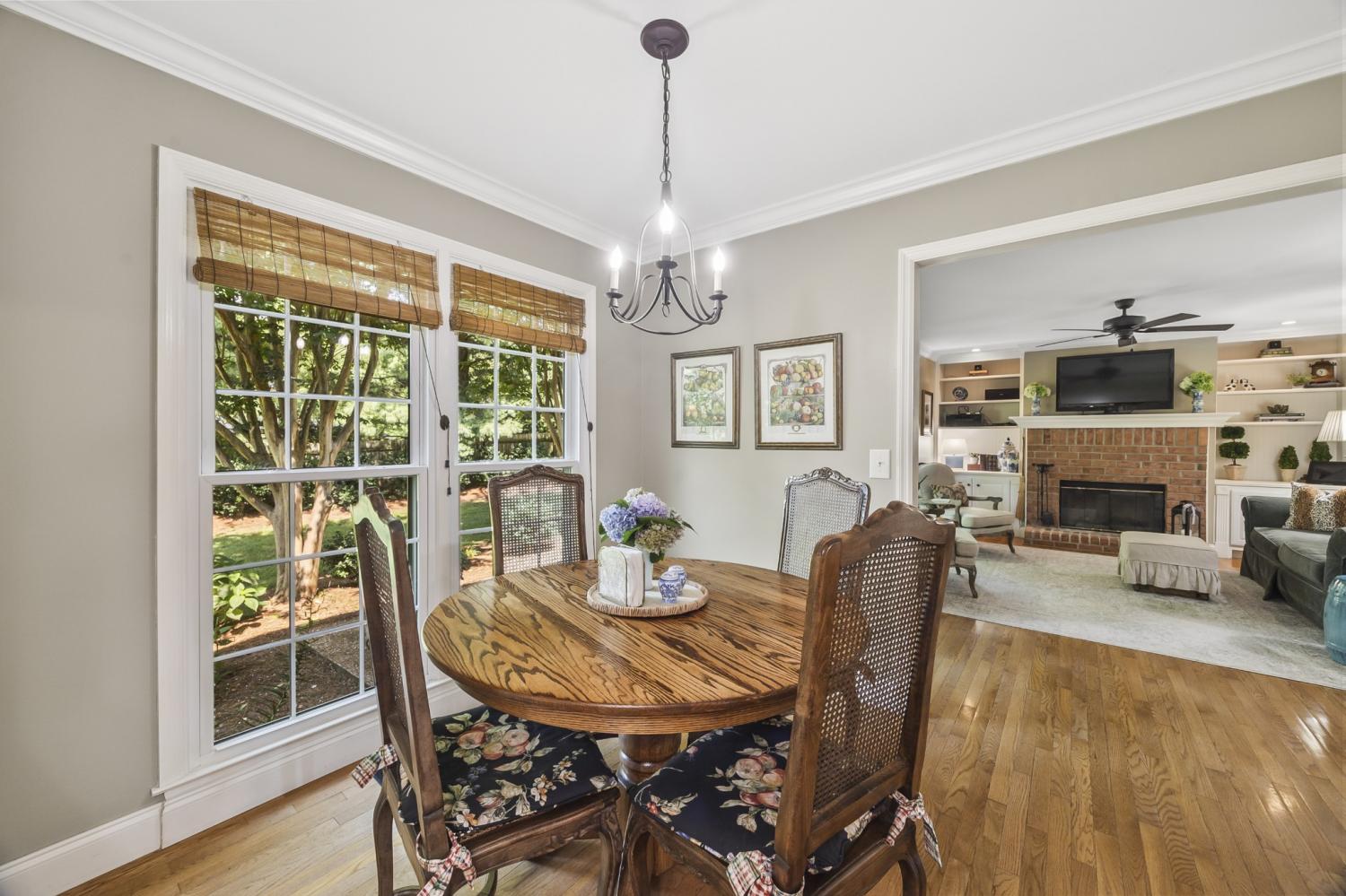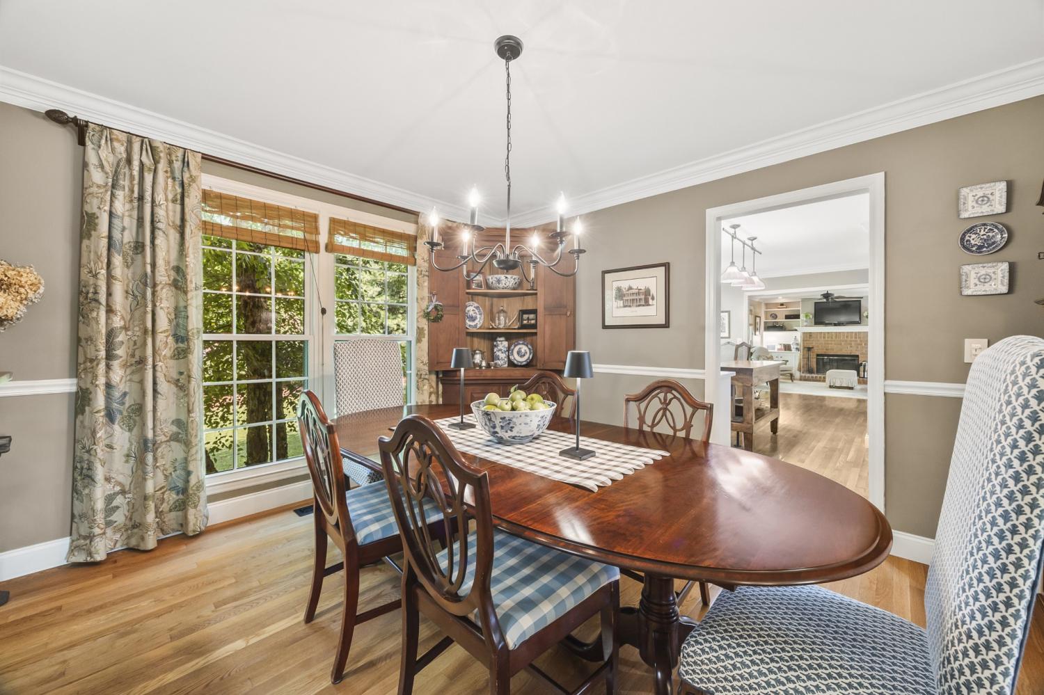 Welcome to Langford Farms! Nestled on a peaceful cul-de-sac, this charming Southern home offers the perfect blend of timeless elegance and modern comfort. Step onto the inviting front porch—complete with a classic swing—and take in the mature, beautifully maintained landscaping. Inside, you’ll find a meticulously decorated interior reminiscent of the pages of Southern Living, featuring crown molding, beadboard, and shiplap accents throughout. The heart of the home is a custom, remodeled kitchen with a spacious pantry that flows seamlessly into the breakfast nook and cozy family room, where a gas starter fireplace provides the perfect gathering spot. A formal dining room offers an ideal setting for holiday meals, while a separate living room provides space for entertaining or showcasing a baby grand piano. Upstairs, you’ll discover four spacious bedrooms, including a luxurious primary suite with both a walk-in and a secondary closet, plus an elegant bath featuring a separate shower. Designed for modern living, a high-efficiency tankless water heater provides endless hot water while reducing energy costs. The laundry room’s prime location—just steps from every bedroom—adds everyday convenience. Additional bedrooms offer flexible possibilities, whether you envision a home office, fitness studio, or creative space. Step outside to enjoy the private, beautifully landscaped patio perfect for outdoor entertaining. A 2-car attached garage adds everyday convenience. This home has been immaculately maintained and is truly move-in ready. Don’t miss your chance to make it your own!