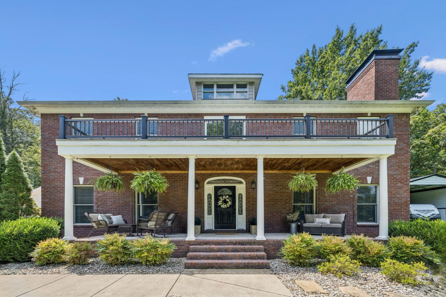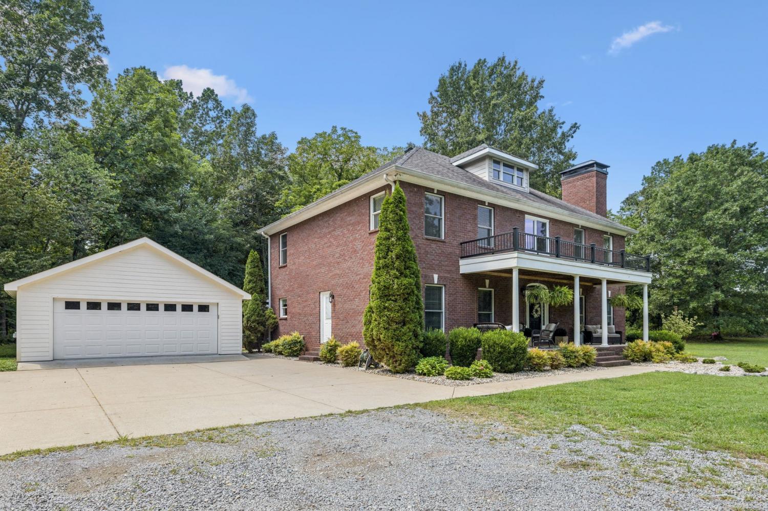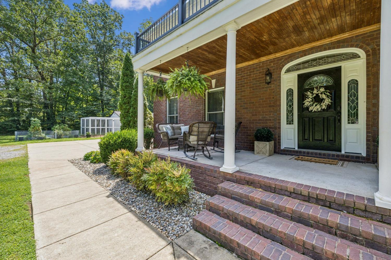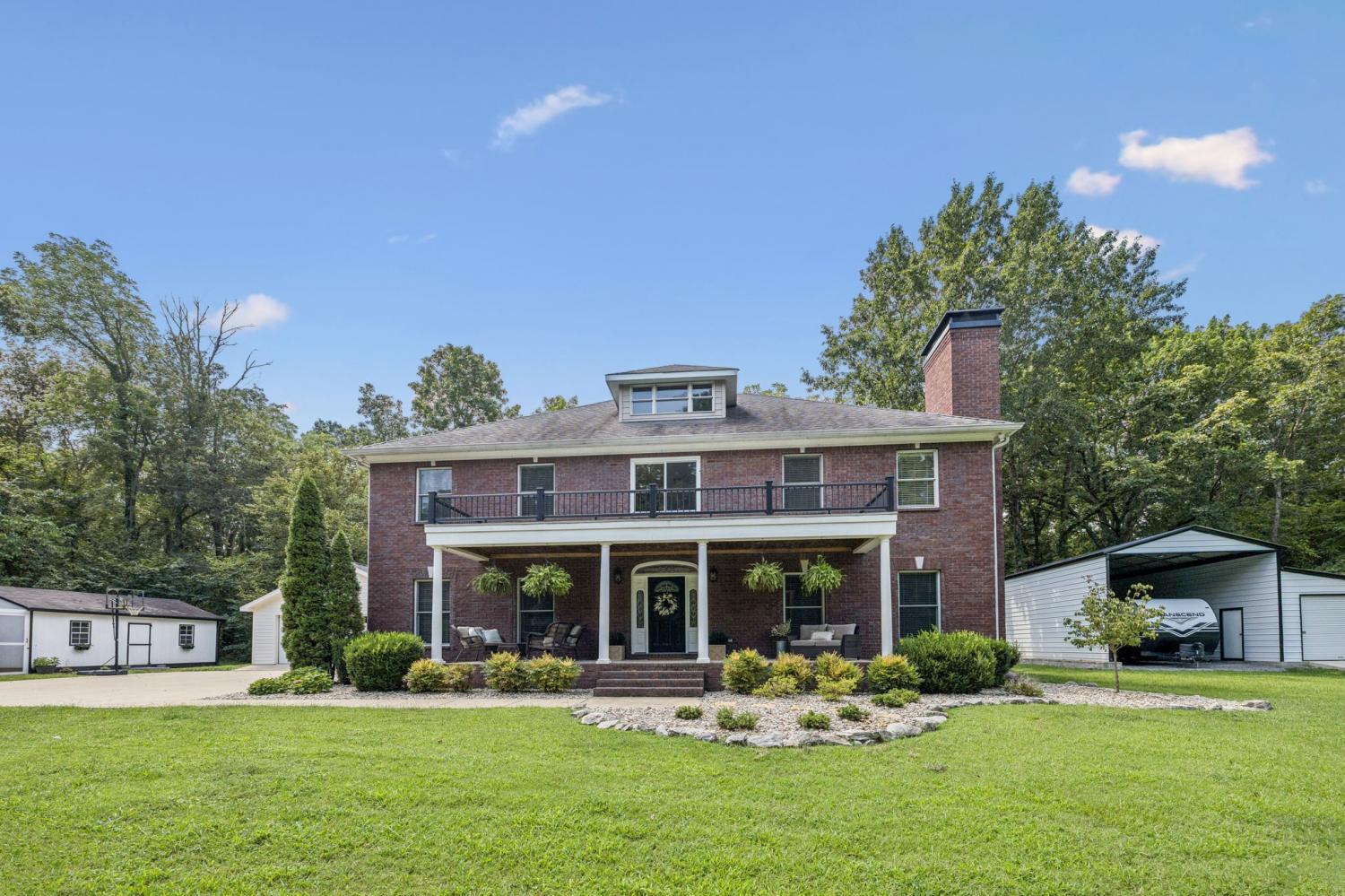 Incredible property with wonderful updates and upgrades. Welcoming rocking chair front porch makes you feel like you are "home". Step into elegant foyer with curved staircase. 18x35 RV covered parking plus attached shop with electricity 12x35. Shed/Chicken coop, pergola on back patio, very nicely finished basement currently used as magnificent Craft Room yet perfect for Rec Room with additional Exercise room. Finished basement has an epoxy on the floor. Unfinished portion of basement provides massive amounts of storage and storm sheltering. 2 Story Library/office with fireplace. Large tile dual head shower in Primary Bath. All rooms are large.