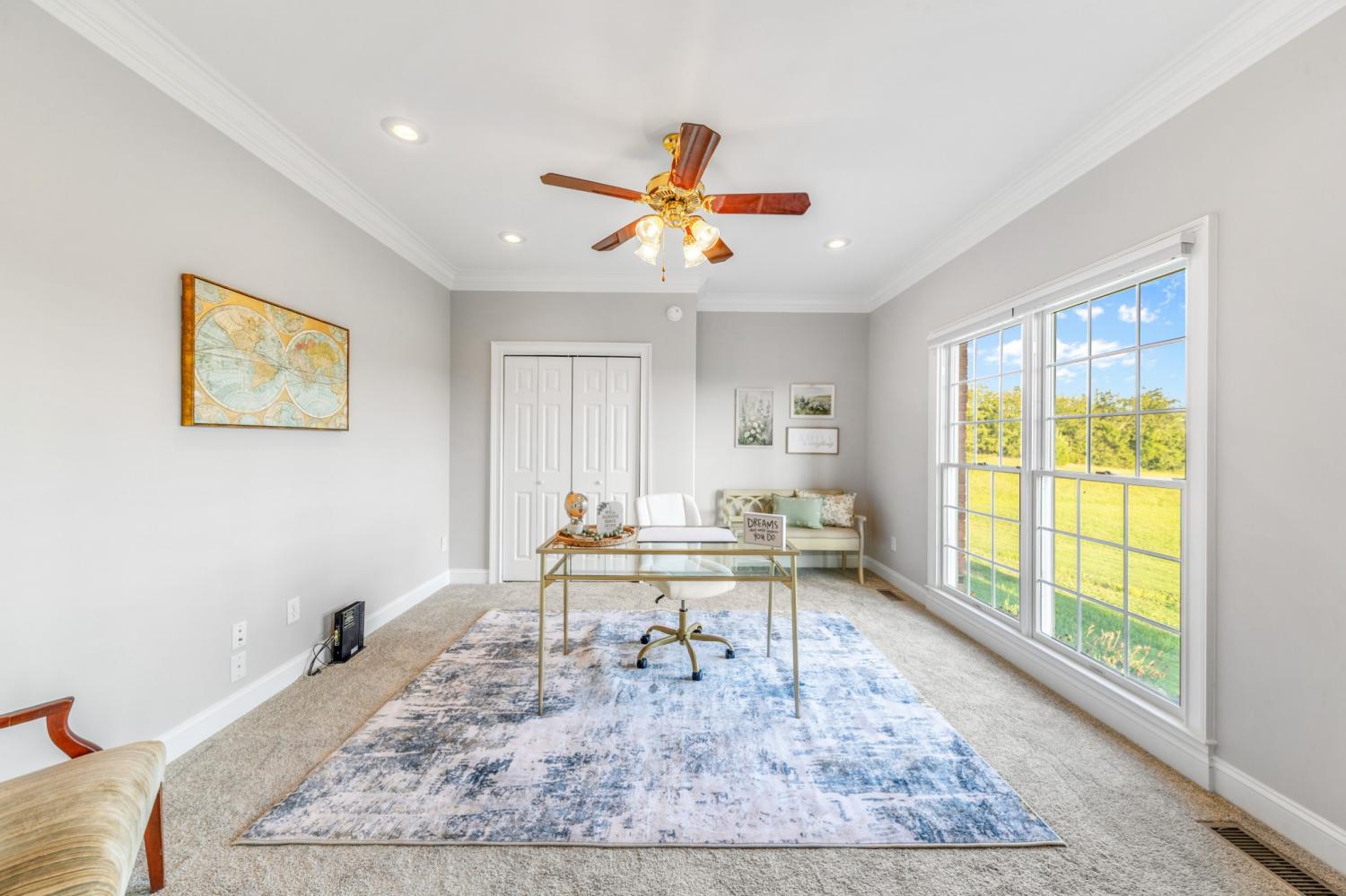 From the moment you pass through the gated entrance, this property feels special. The 22+ acres are flat, beautifully maintained, & completely usable, whether you’re after peaceful country living, space for animals, or a world-class setup for your car collection. The home itself offers over 3,800 sq. ft. of thoughtful living space. A dramatic two-story foyer greets you, with a grand staircase & walls of windows that flood the home with light. The kitchen is spacious & inviting with a pantry, breakfast area, and easy flow into the formal dining room & family room. The main-level primary suite is a true retreat, complete with a double vanity, oversized tile walk-in shower & soaking tub. Upstairs, you’ll find four more bedrooms & a huge bonus room that’s ready for game nights, movie marathons, or anything your family dreams up. Step outside & you’ll instantly picture your next gathering around the custom outdoor kitchen, complete with stainless appliances & a double-sided fireplace. The views here are wide-open & peaceful, the kind of place where sunsets never get old. And then… the shops. If you’re a car enthusiast, hobbyist, or collector, this is your playground. The main shop is 40x120, fully heated & cooled, with 5 custom insulated 14’ garage doors, a Wildfire lift system, full lighting, cabinetry, shelving, restroom, Swisher storm shelter, an indoor/outdoor Bluetooth stereo + PA system, & a massive concrete pad for additional parking. The security system with cameras is already in place. The secondary barn is 48x84 with a 24’ center bay, dual 12’ side sheds, ThermaGuard insulation, rock wainscot, plenty of windows, multiple garage doors, walk-through entries, an open lean-to with painted concrete floors, overhead lighting with water roughed in. This property is one of those rare finds that blends high-end living with professional-grade workshop capacity & all the privacy you could ask for. Call today for a private showing!
