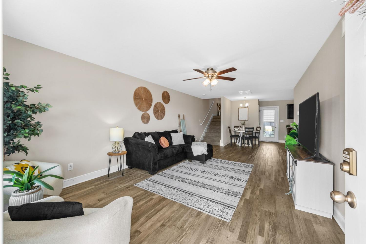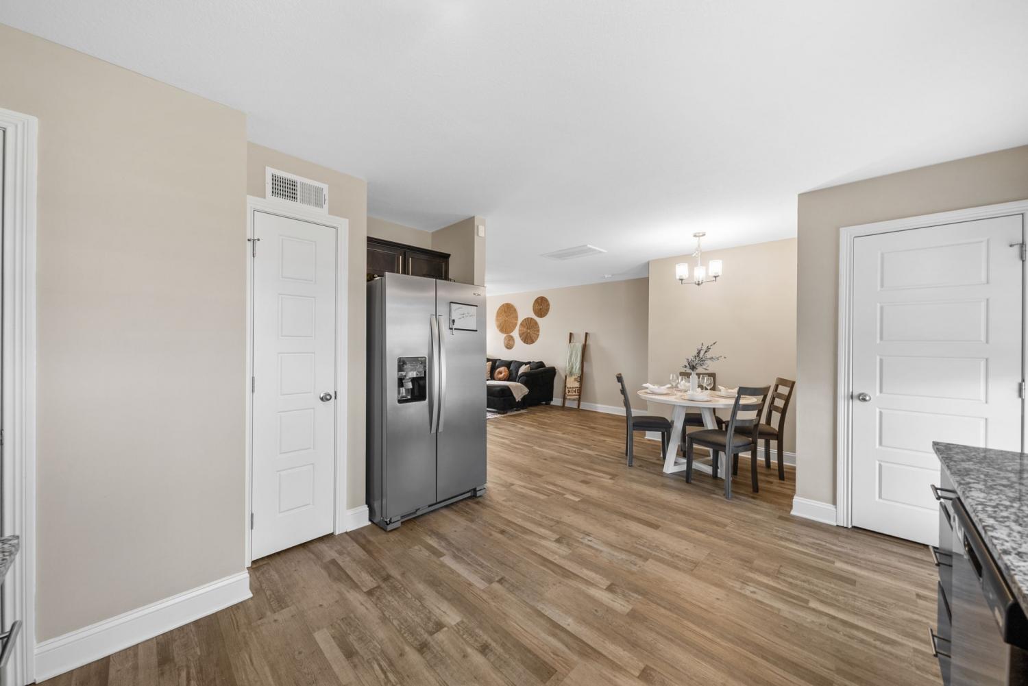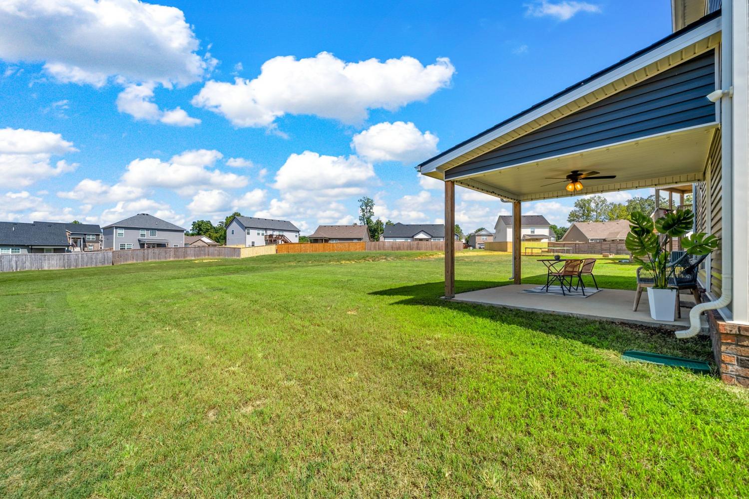 Picture Perfect this like-new home that has been freshly painted throughout is ready for its next owner! The open layout features a spacious living room that flows seamlessly into the kitchen, complete with two pantries and sleek stainless steel appliances. The Impressive primary bedroom is a true retreat with elegant trey ceilings, a generous walk-in closet, and an en-suite bathroom boasting a glass shower. Enjoy the convenience of a 2-car garage and the luxury of a large backyard, perfect for entertaining or relaxing. The covered patio provides year-round comfort, while the highly desirable neighborhood offers a welcoming community feel. With modern finishes, abundant storage, and a prime location close to shopping, dining, and Fort Campbell, this home blends style, comfort, and functionality in one perfect package! Security system remains with the home — just set it up and enjoy added peace of mind.