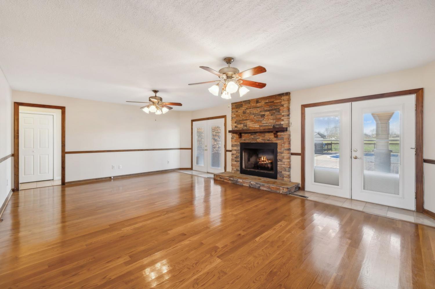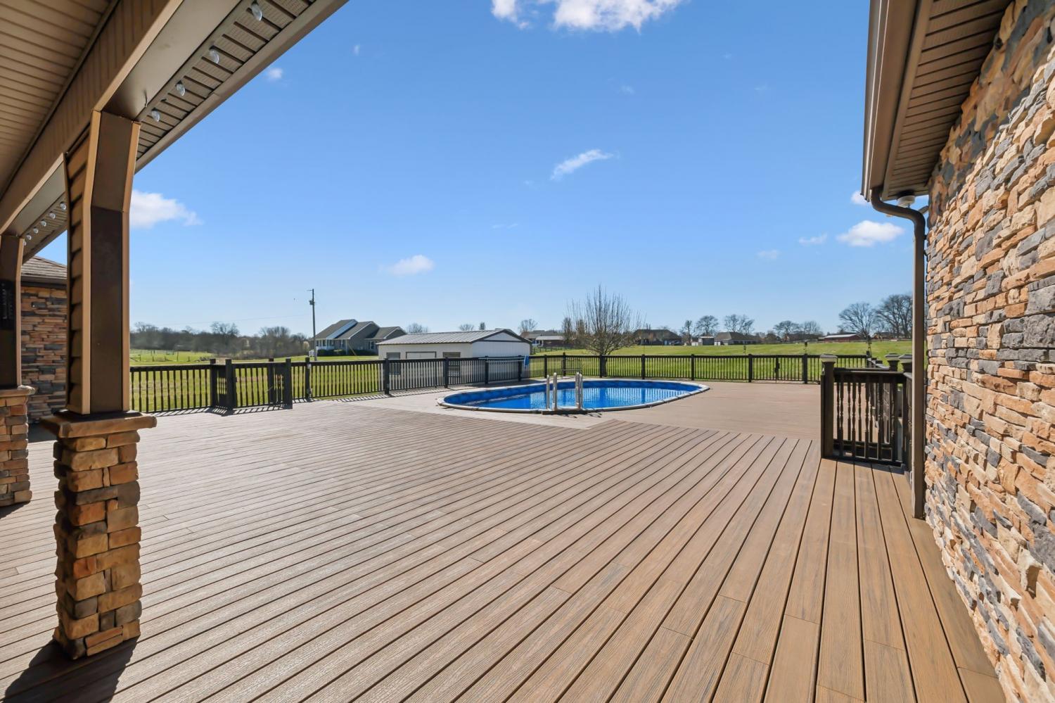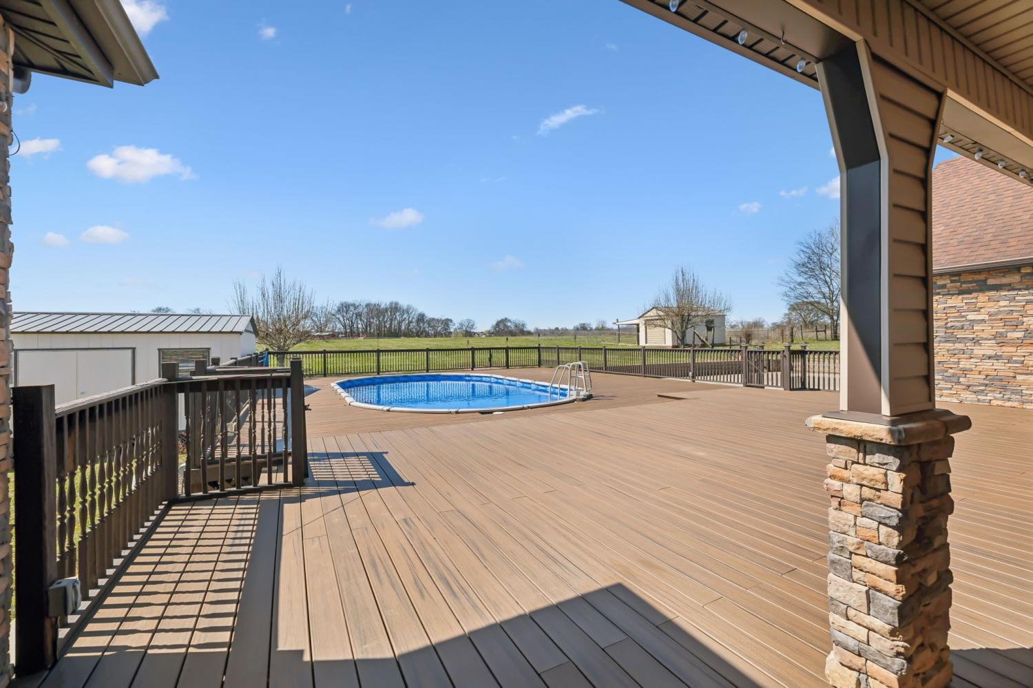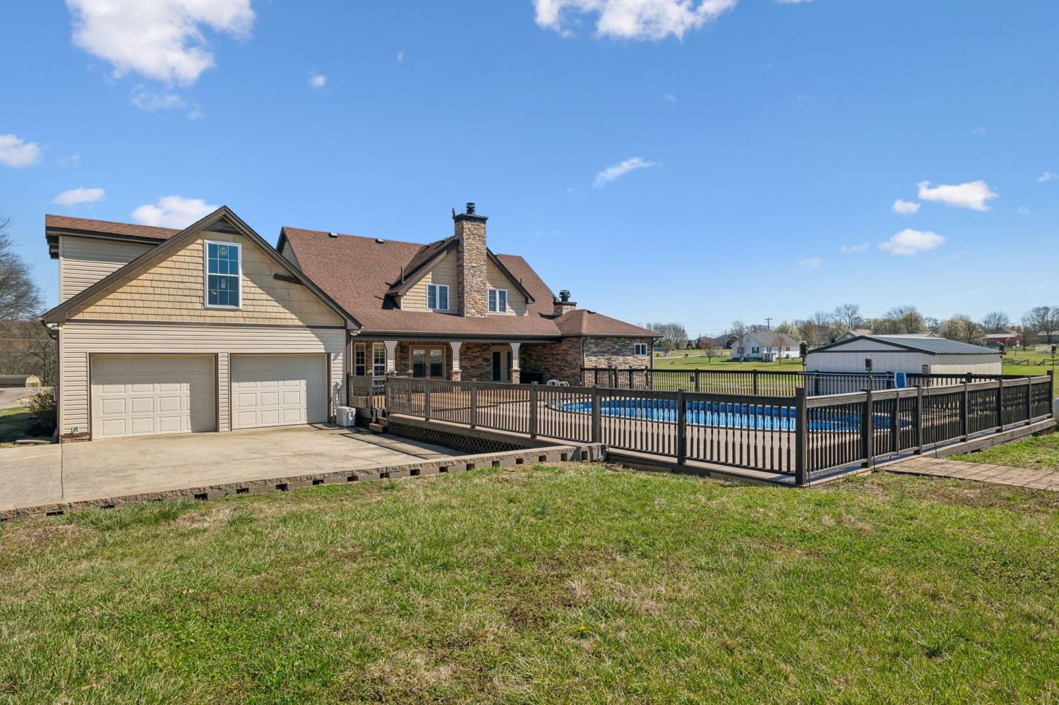 Stunning and picturesque retreat in the rolling hills of middle Tennessee. This large home offers ample room from the massive dining room, oversized living room with a stone fireplace and two double doors exiting to your oasis of a large custom deck surrounding an above ground chlorine free pool, all have been impeccably maintained. This home has all of the elegant country charm and comfort with 3 fireplaces and 4 full bathrooms!! Custom kitchen with a new gas stove, abundant cabinets and new countertops will make the chef of the family happy! This home has been beautifully rebuilt from the studs by the owners. There is a large bonus room above the garage with its own HVAC for low energy consumption and comfort. This space is just waiting for your entertaining ideas. Primary suite on the main floor offers a spacious private getaway with custom stone fireplace, his and hers separate vanities, large jetted tub, and separate shower. Upstairs features two very large bedrooms each with their own private bath and a family room with its own fireplace. The crawl space has been completely encapsulated makin it a clean energy efficient environment. The grounds cover nearly two and a half acres of all manicured lawn. Plenty of room for additional out buildings and the two existing out buildings will remain.