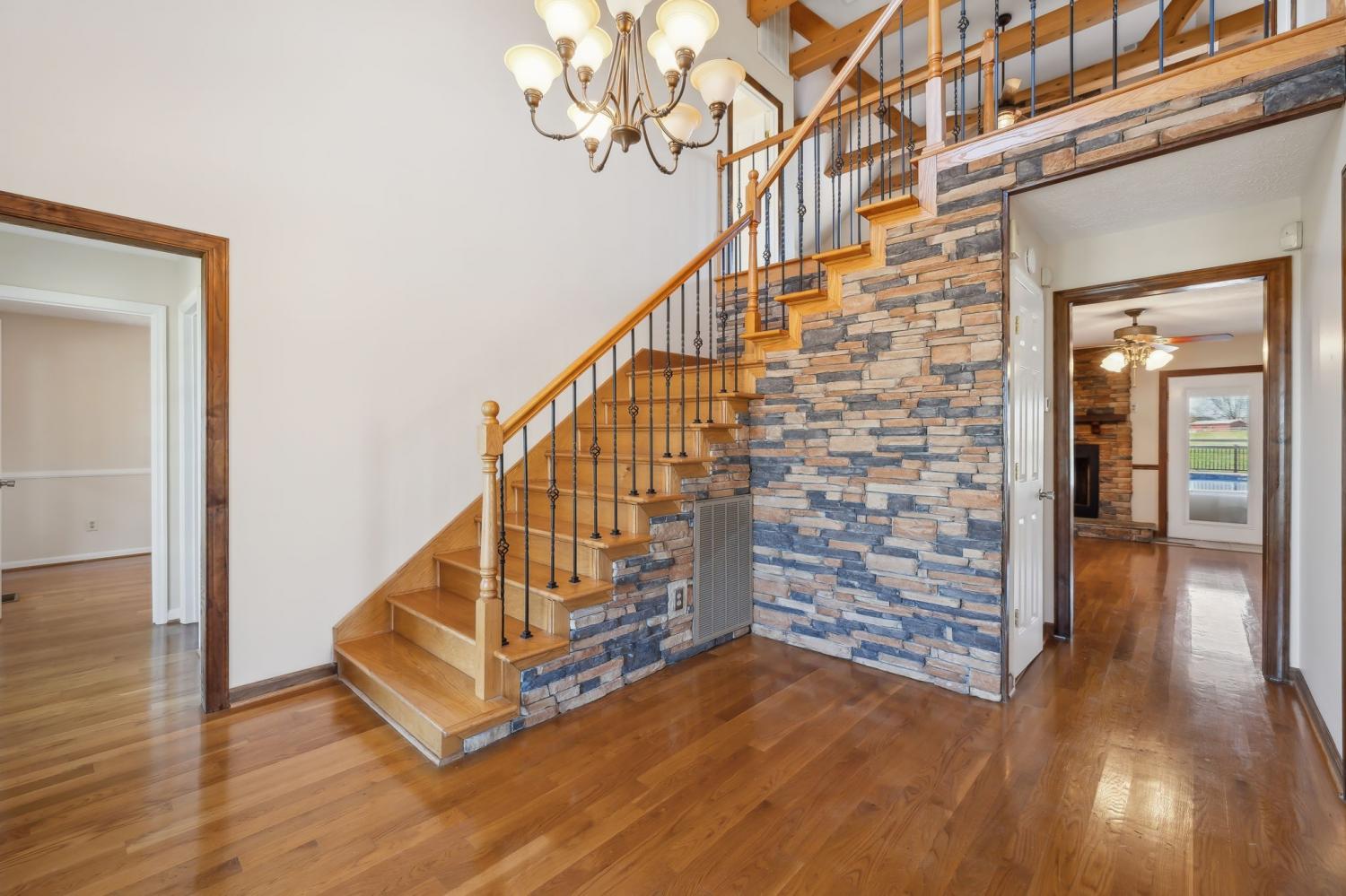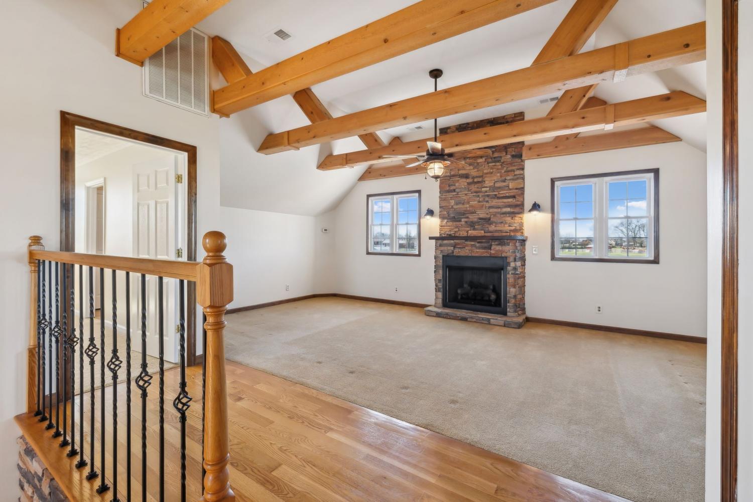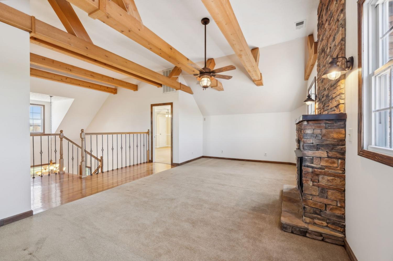 Stunning and picturesque retreat in the rolling hills of middle Tennessee. This large home offers ample room from the massive dining room, oversized living room with a stone fireplace and two double doors exiting to your oasis of a large custom deck surrounding an above ground chlorine free pool, all have been impeccably maintained. This home has all of the elegant country charm and comfort with 3 fireplaces and 4 full bathrooms!! Custom kitchen with a new gas stove, abundant cabinets and new countertops will make the chef of the family happy! This home has been beautifully rebuilt from the studs by the owners. There is a large bonus room above the garage with its own HVAC for low energy consumption and comfort. This space is just waiting for your entertaining ideas. Primary suite on the main floor offers a spacious private getaway with custom stone fireplace, his and hers separate vanities, large jetted tub, and separate shower. Upstairs features two very large bedrooms each with their own private bath and a family room with its own fireplace. The crawl space has been completely encapsulated makin it a clean energy efficient environment. The grounds cover nearly two and a half acres of all manicured lawn. Plenty of room for additional out buildings and the two existing out buildings will remain.
