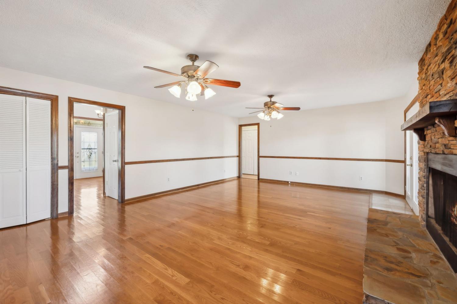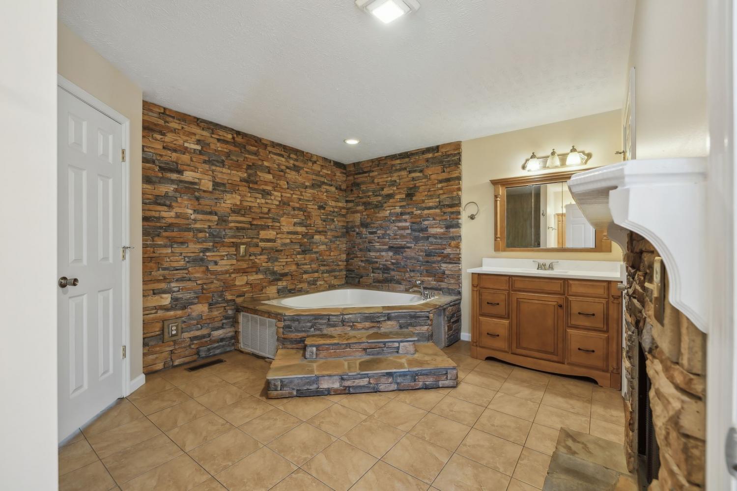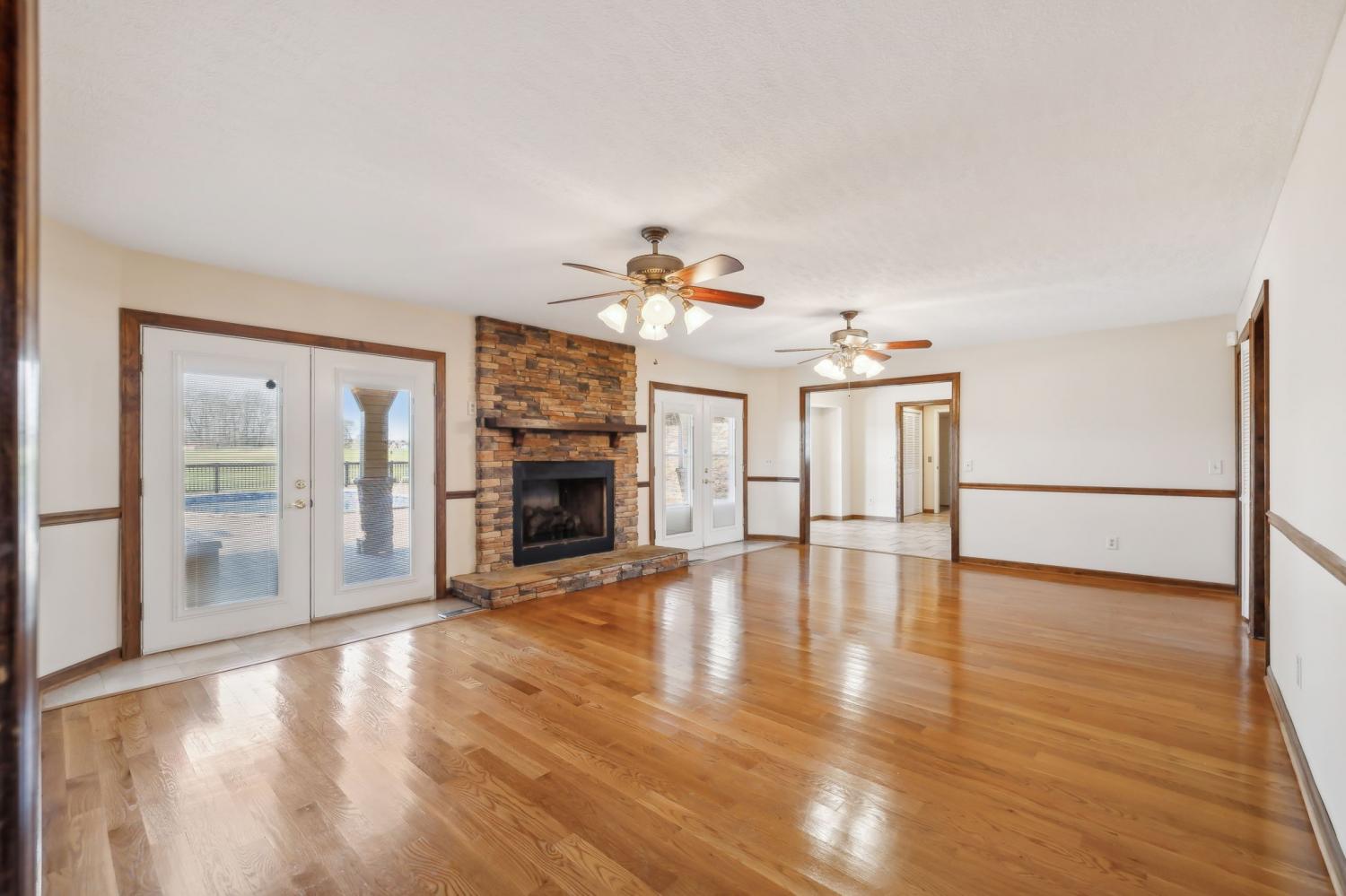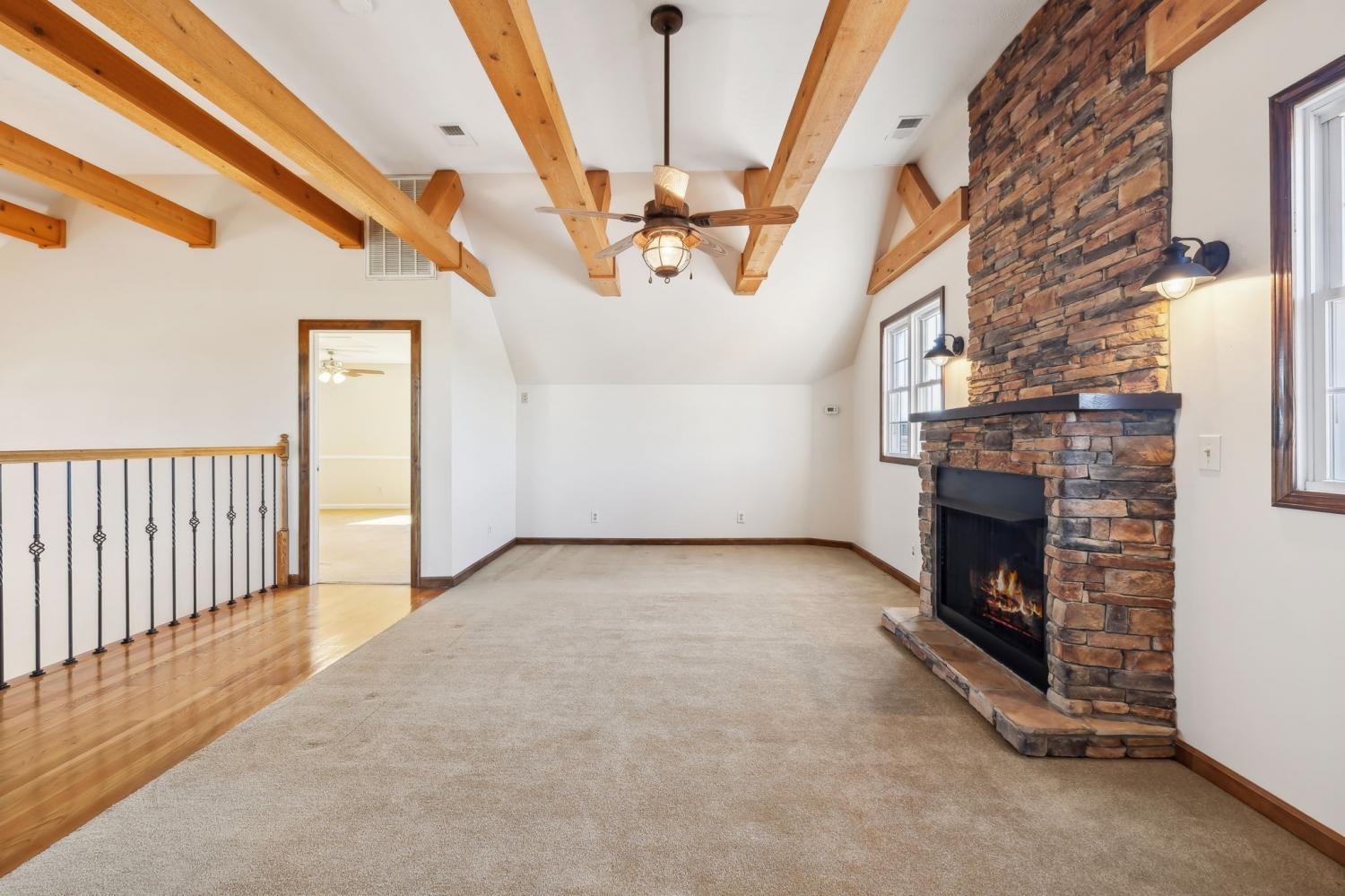 Stunning and picturesque retreat in the rolling hills of middle Tennessee. This large home offers ample room from the massive dining room, oversized living room with a stone fireplace and two double doors exiting to your oasis of a large custom deck surrounding an above ground chlorine free pool, all have been impeccably maintained. This home has all of the elegant country charm and comfort with 3 fireplaces and 4 full bathrooms!! Custom kitchen with a new gas stove, abundant cabinets and new countertops will make the chef of the family happy! This home has been beautifully rebuilt from the studs by the owners. There is a large bonus room above the garage with its own HVAC for low energy consumption and comfort. This space is just waiting for your entertaining ideas. Primary suite on the main floor offers a spacious private getaway with custom stone fireplace, his and hers separate vanities, large jetted tub, and separate shower. Upstairs features two very large bedrooms each with their own private bath and a family room with its own fireplace. The crawl space has been completely encapsulated makin it a clean energy efficient environment. The grounds cover nearly two and a half acres of all manicured lawn. Plenty of room for additional out buildings and the two existing out buildings will remain.