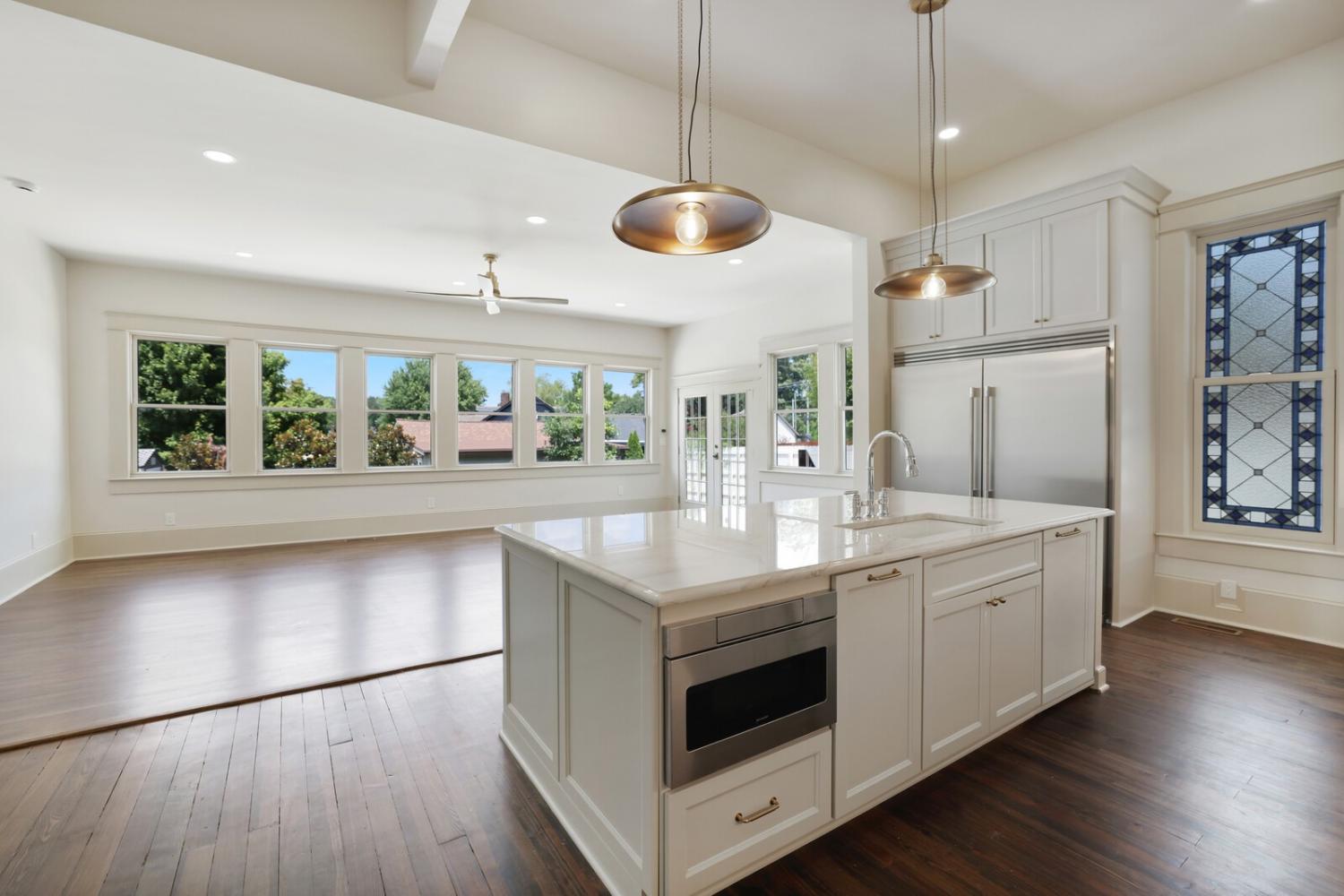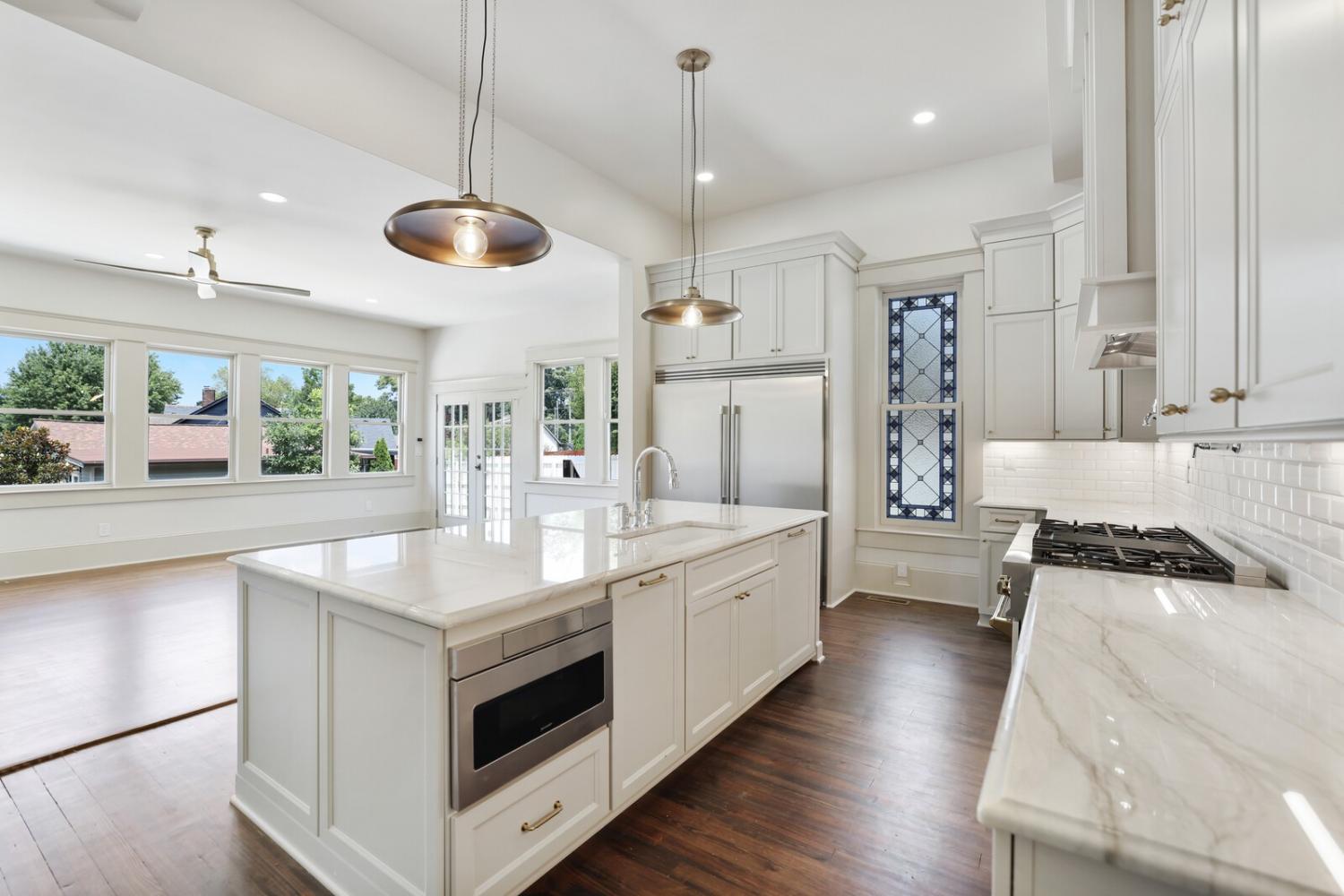 One of the oldest homes in Nashville! With documentation tracing its origins to circa 1880, this property offers a rare glimpse into the city’s Victorian past. This Queen-Anne style home sits in the heart of 12th South and has been completely rebuilt from the studs up, blending timeless character with high-end finishes. Set on a massive corner lot, the home welcomes you with a wraparound porch and original stained-glass doors and windows that add charm at every turn. Step inside to soaring 12-foot ceilings and refinished pine floors, where thoughtful design meets luxury living. The custom chef’s kitchen is a true showpiece, featuring Taj Mahal quartzite countertops, a 48-inch ZLINE gas range, custom cabinetry, and an impressive 60-inch fridge/freezer. Elegant light fixtures and expansive windows flood the interiors with natural light, while preserved fireplaces, transoms, and stained-glass details highlight the home’s historic character. The layout offers 4 spacious bedrooms, 3.5 baths, an upstairs office/loft, and a main-level library alongside a refined dining room. Outdoors, enjoy abundant space for entertaining with a lush yard, wraparound porch, and a new parking pad for convenient off-street parking. Every system has been updated, including all-new electrical, plumbing, ductwork, HVAC, plus a tankless water heater (2023), roof (2021), and siding (2022). With over 3,500 sq. ft. of living space, this property delivers modern comfort while preserving the craftsmanship of a bygone era. This is more than a home, it’s a historic treasure reimagined for today’s lifestyle. Move-in ready and waiting for its next chapter.