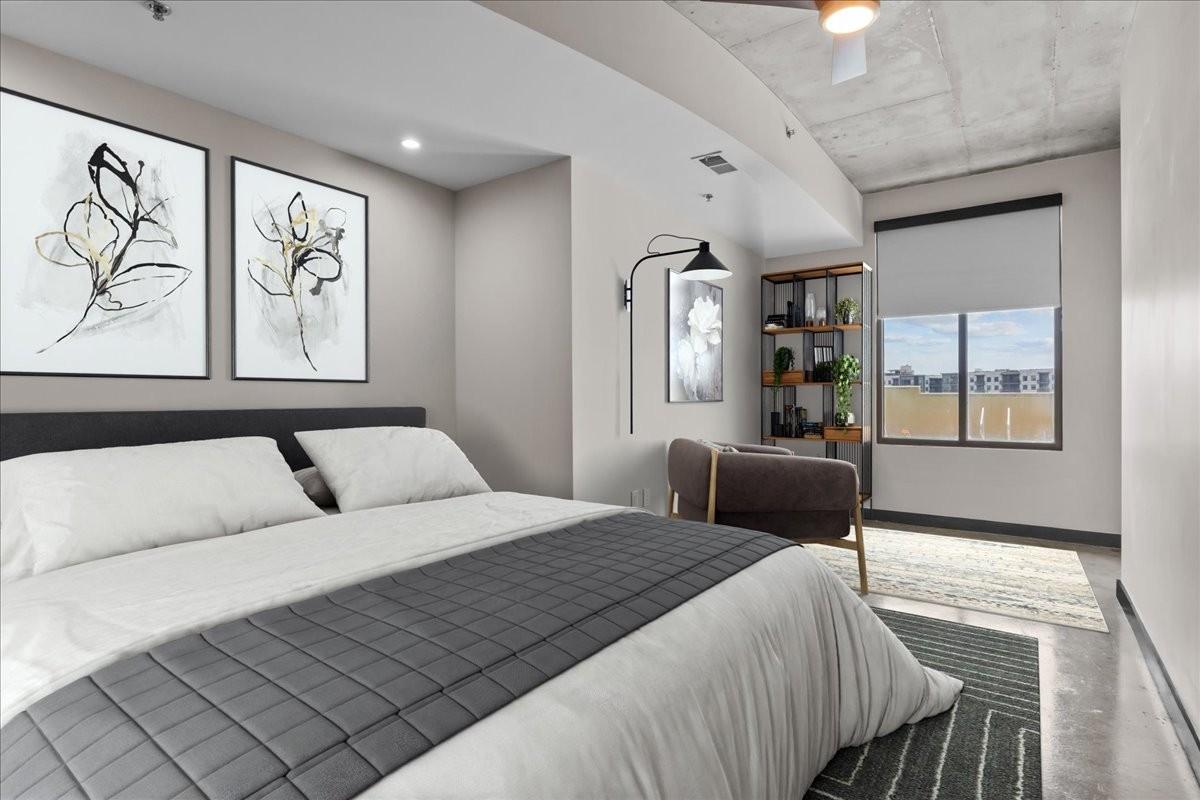 LIVE WHERE NASHVILLE PLAYS! Own a piece of Music City Energy. Come and discover "Lock & Leave" luxury living in this PREMIER BOUTIQUE high-rise just off Music Row. This urban chic one-bedroom + office/flex room residence is ideally located just steps away from the pool and outdoor lounge/entertainment area, perfect for effortless entertaining. Featuring sleek Polished concrete floors throughout, a spacious Primary Suite, and an office/flex area that could be used for an office or guest area. The updated kitchen showcases newer SS appliances with modern lighting, and motorized contemporary window treatment throughout, along with fresh paint. The unit comes with 1 assigned garage parking space and an oversized storage unit for added convenience, along with Bicycle storage in the garage area. A rare opportunity to enjoy the ease of urban living in a secure, sophisticated setting.