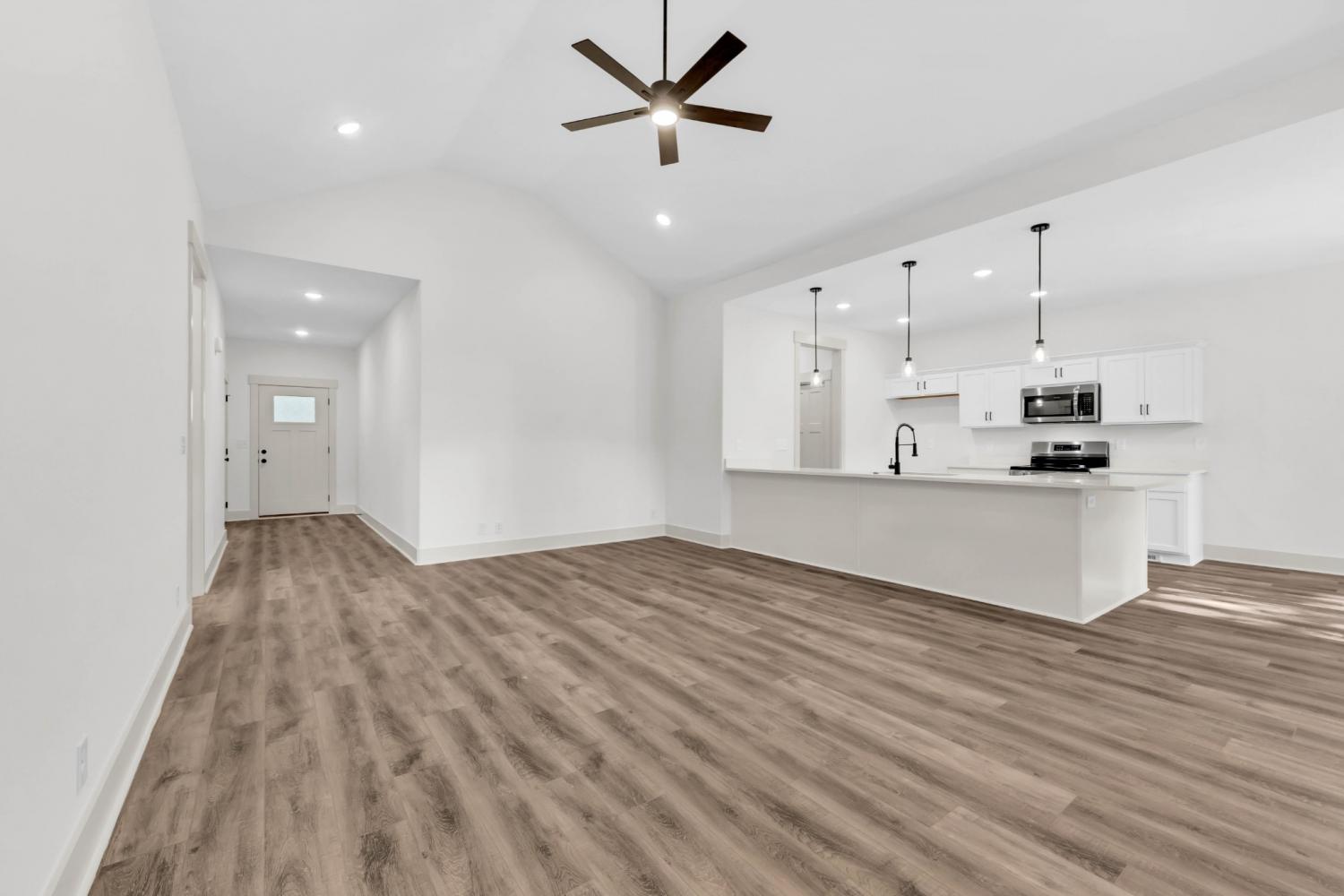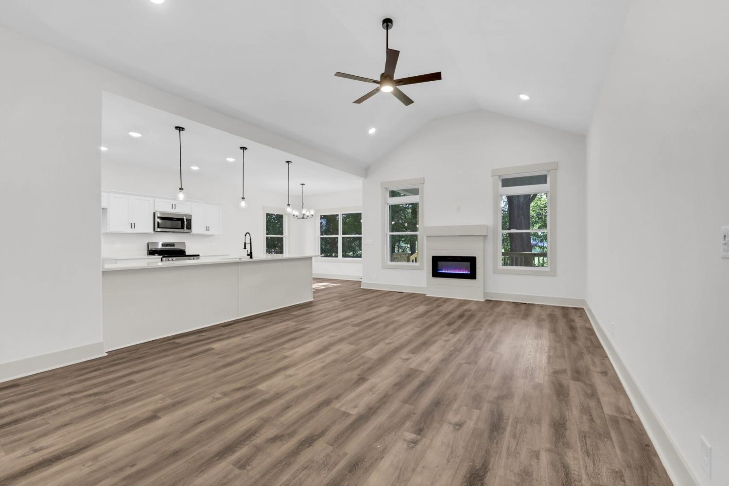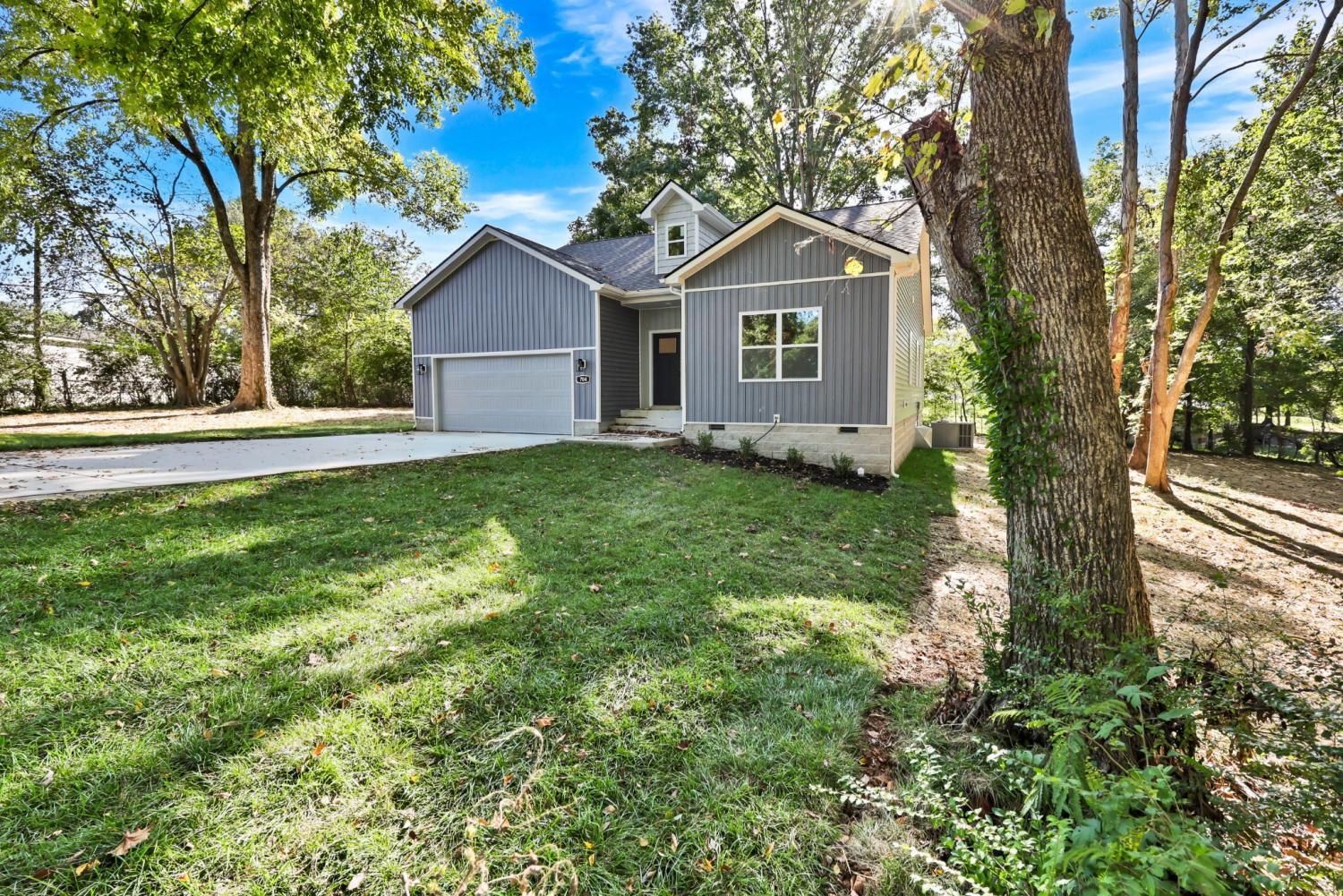 New Construction on over half an acre! Welcome to your brand new one-level home, located just minutes from Fort Campbell, shopping, and dining. Step inside this open-concept floor plan that’s perfect for everyday living and entertaining. The living room features a cozy electric fireplace with shiplap accent and mantle, while the kitchen shines with solid-surface countertops, stainless steel appliances, and upgraded cabinetry. The spacious primary suite offers a walk-in closet and a luxurious bath with double vanities, tile flooring, and a stunning tile walk-in shower. Craftsman-style trim and doors add charm throughout the home, complemented by a decorative lighting package. Enjoy the convenience of a separate laundry room, plus outdoor living with a covered deck overlooking a large & level backyard with mature trees.