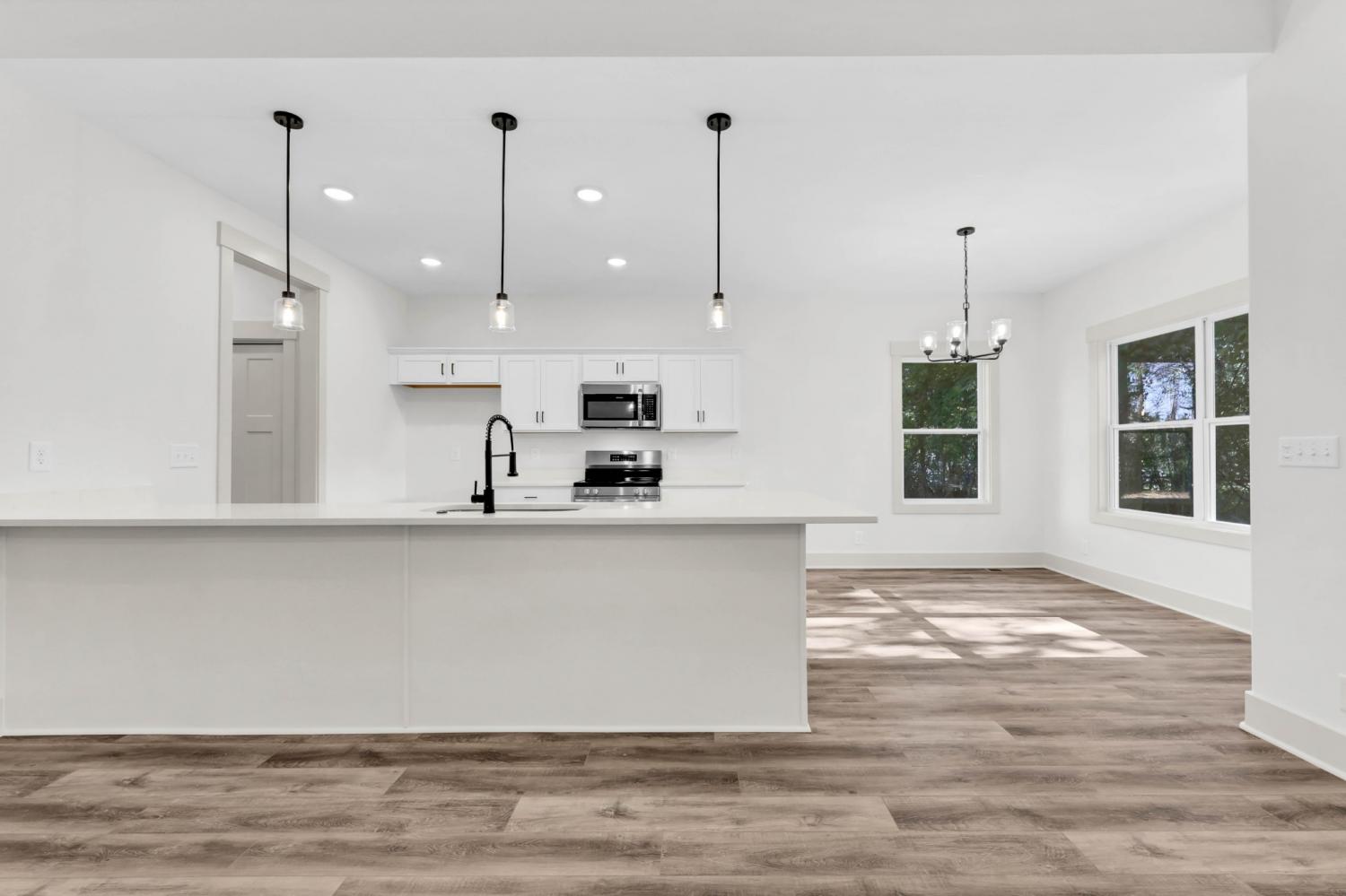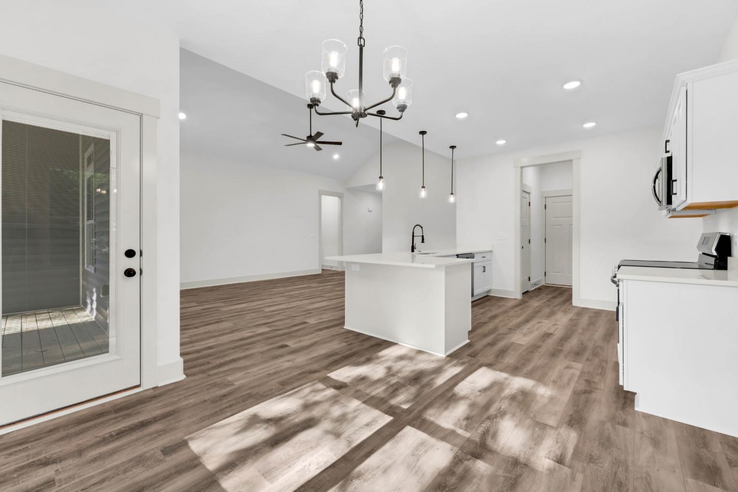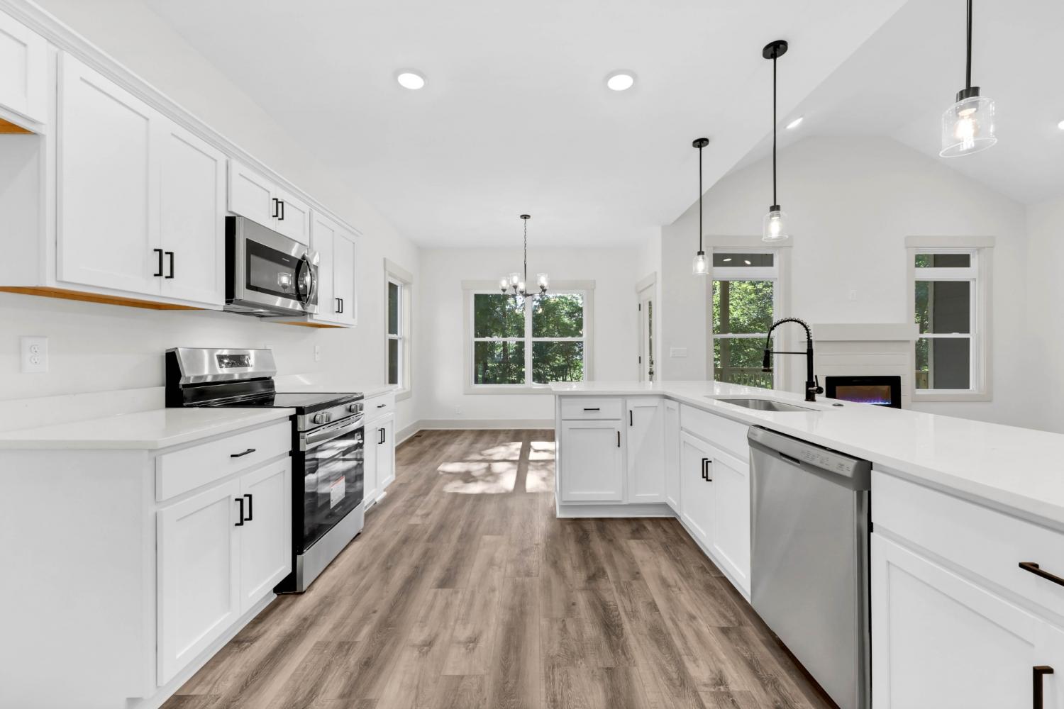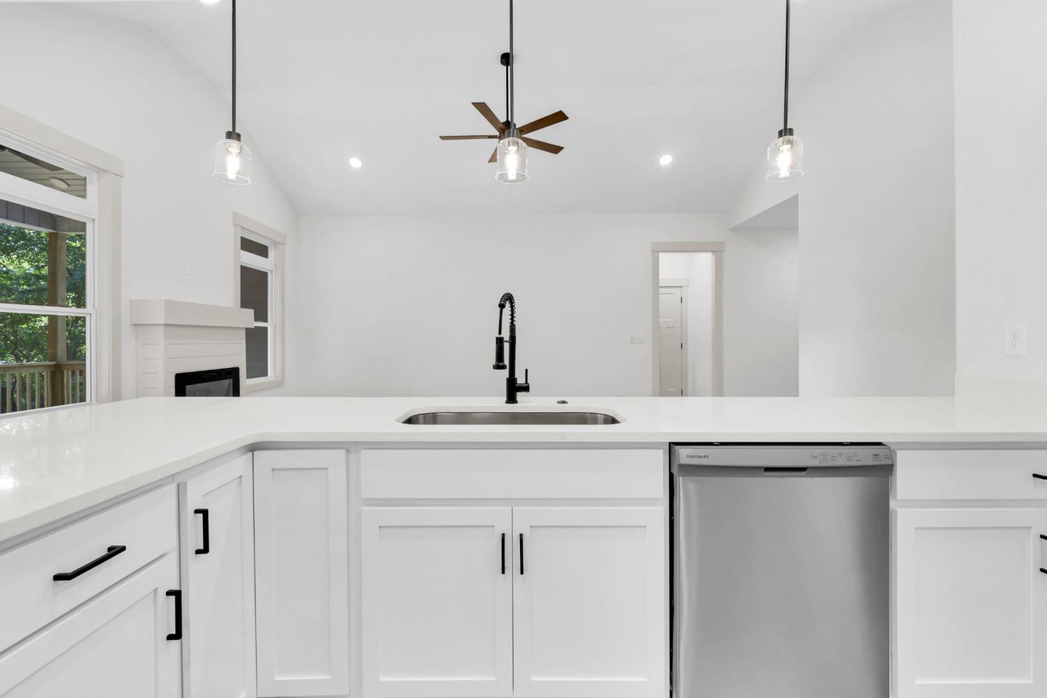 New Construction on over half an acre! Welcome to your brand new one-level home, located just minutes from Fort Campbell, shopping, and dining. Step inside this open-concept floor plan that’s perfect for everyday living and entertaining. The living room features a cozy electric fireplace with shiplap accent and mantle, while the kitchen shines with solid-surface countertops, stainless steel appliances, and upgraded cabinetry. The spacious primary suite offers a walk-in closet and a luxurious bath with double vanities, tile flooring, and a stunning tile walk-in shower. Craftsman-style trim and doors add charm throughout the home, complemented by a decorative lighting package. Enjoy the convenience of a separate laundry room, plus outdoor living with a covered deck overlooking a large & level backyard with mature trees.