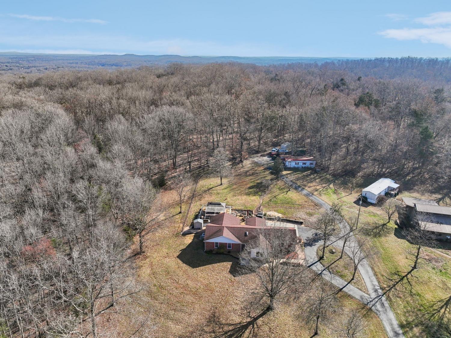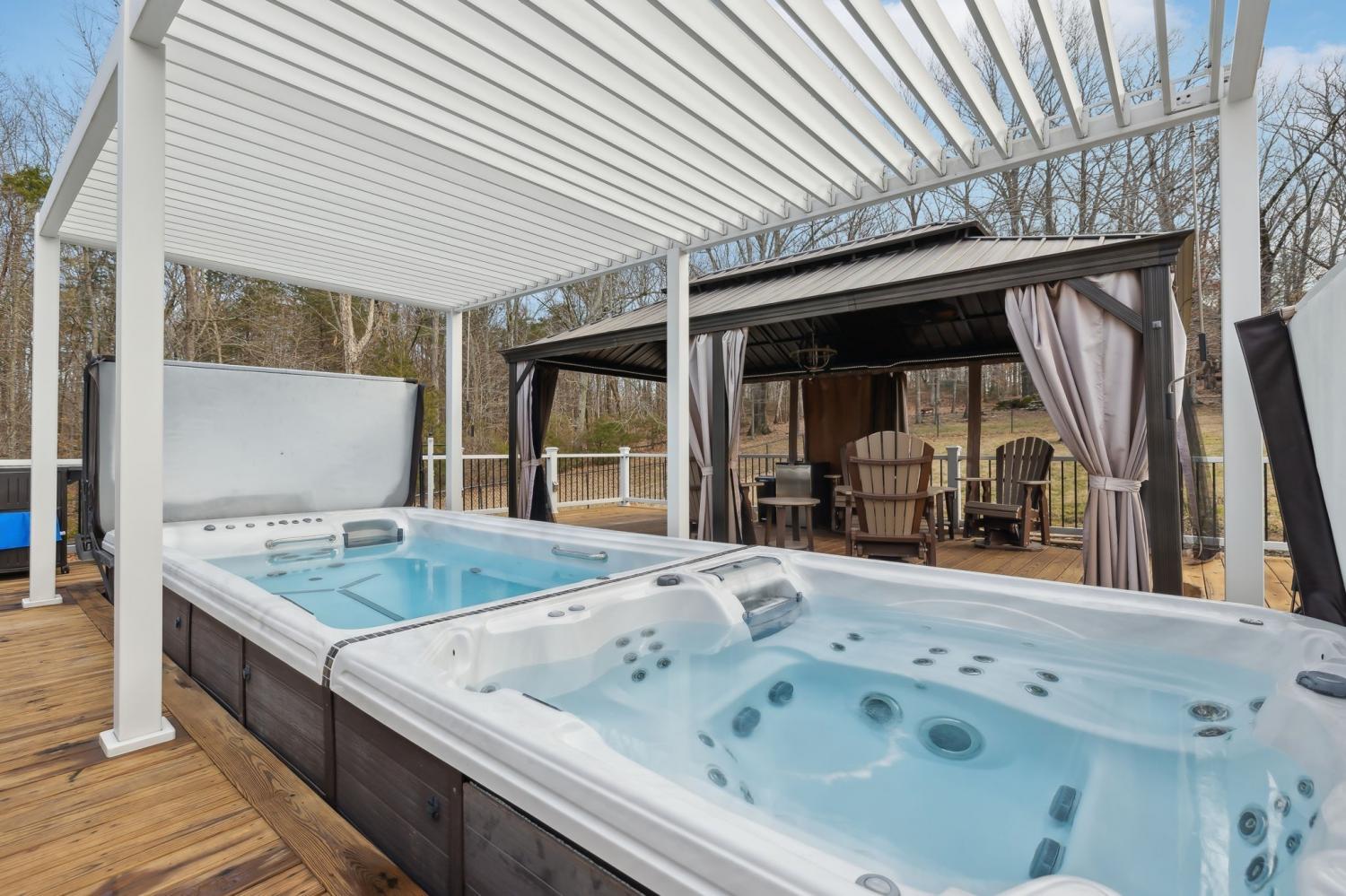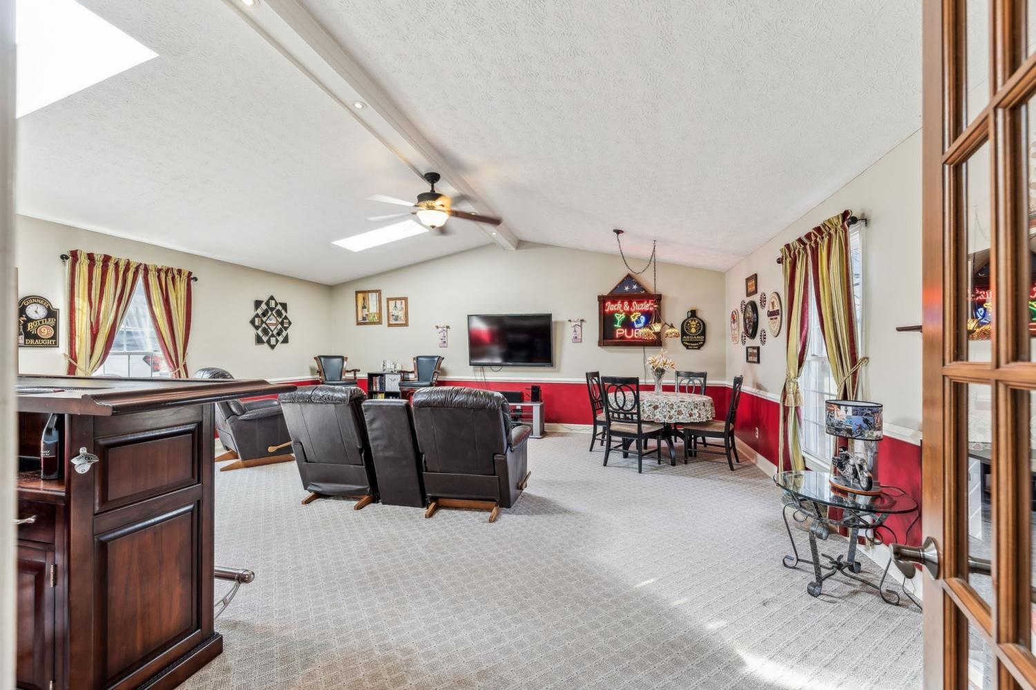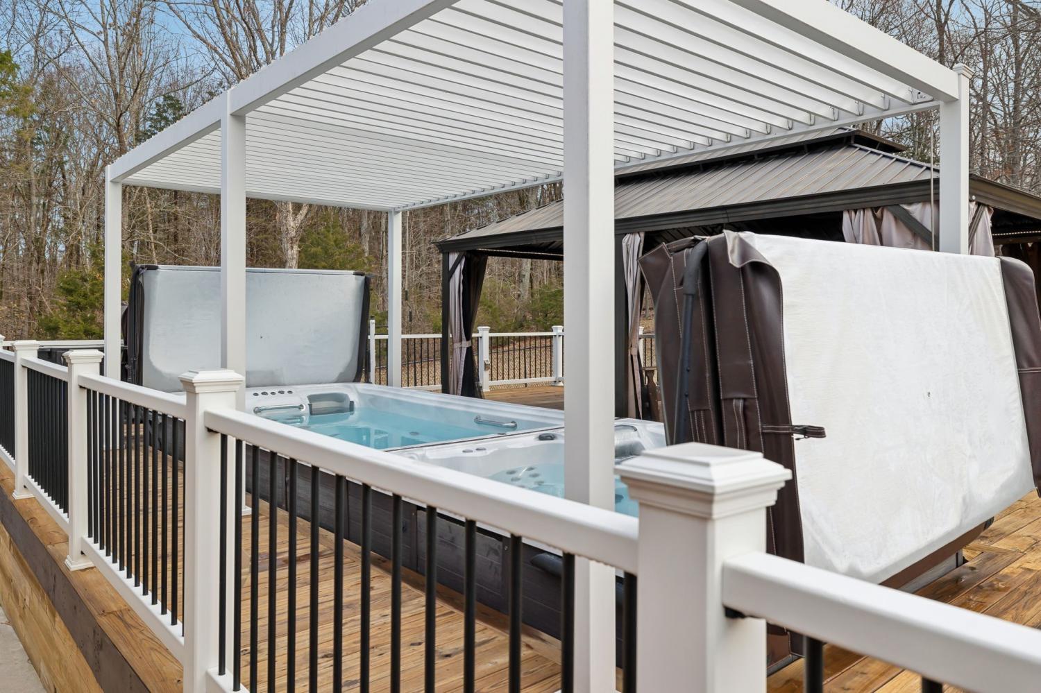 Your country paradise awaits—just 4 miles from I-65! Tucked back off the road with a 500 ft. paved driveway, this peaceful retreat offers the perfect blend of privacy and convenience. The property features a heated & cooled workshop with patio and tractor shed, plus incredible outdoor living spaces. The expansive deck is designed for entertaining, complete with a cooking gazebo, party gazebo, covered hot tub, swim spa, fire pit, and plenty of room to relax while watching the wildlife. Inside, a heated & cooled sun porch surrounded by glass provides the ultimate spot for evening relaxation. The family room boasts a walk-up bar, while the cozy den offers a fireplace with gas logs—perfect for enjoying the big game or a card night. The spacious primary suite includes a walk-in tile shower, abundant closet space, and private access to the deck. The modern kitchen shines with updated appliances, solid countertops, and a bar featuring a built-in lighted china cabinet that opens to the den. With 3 bedrooms plus an office/craft room (optional 4th bedroom), this home offers flexibility for your needs. Recent updates include a new roof, gutters, skylights with remote control blinds, and shutters (July 2025). All appliances remain, making this home truly move-in ready. The property also offers 5+ acres of space for kids to ride bikes or four-wheelers. Lovingly maintained and in immaculate condition, this home is ready for its next owners to enjoy!