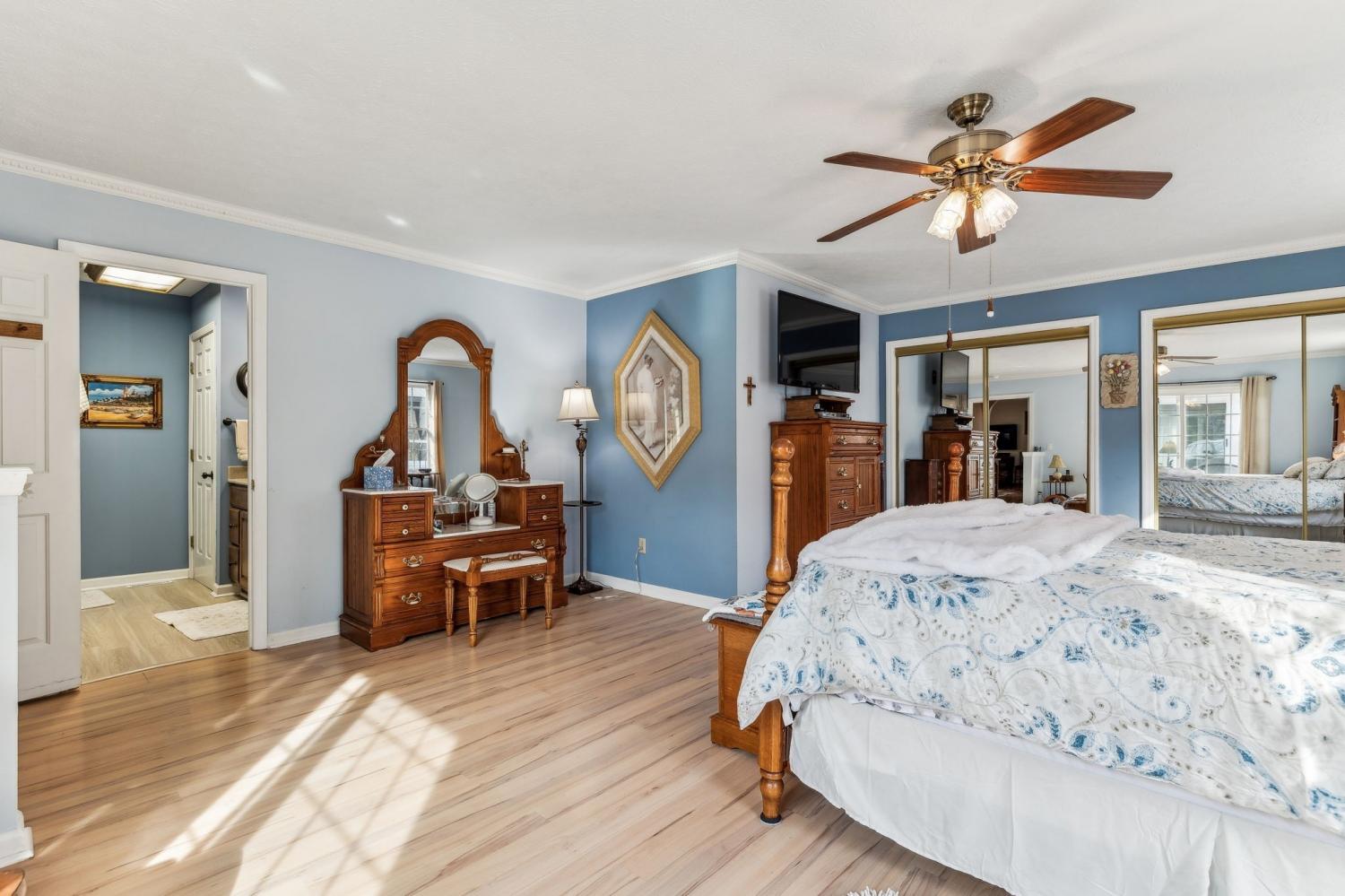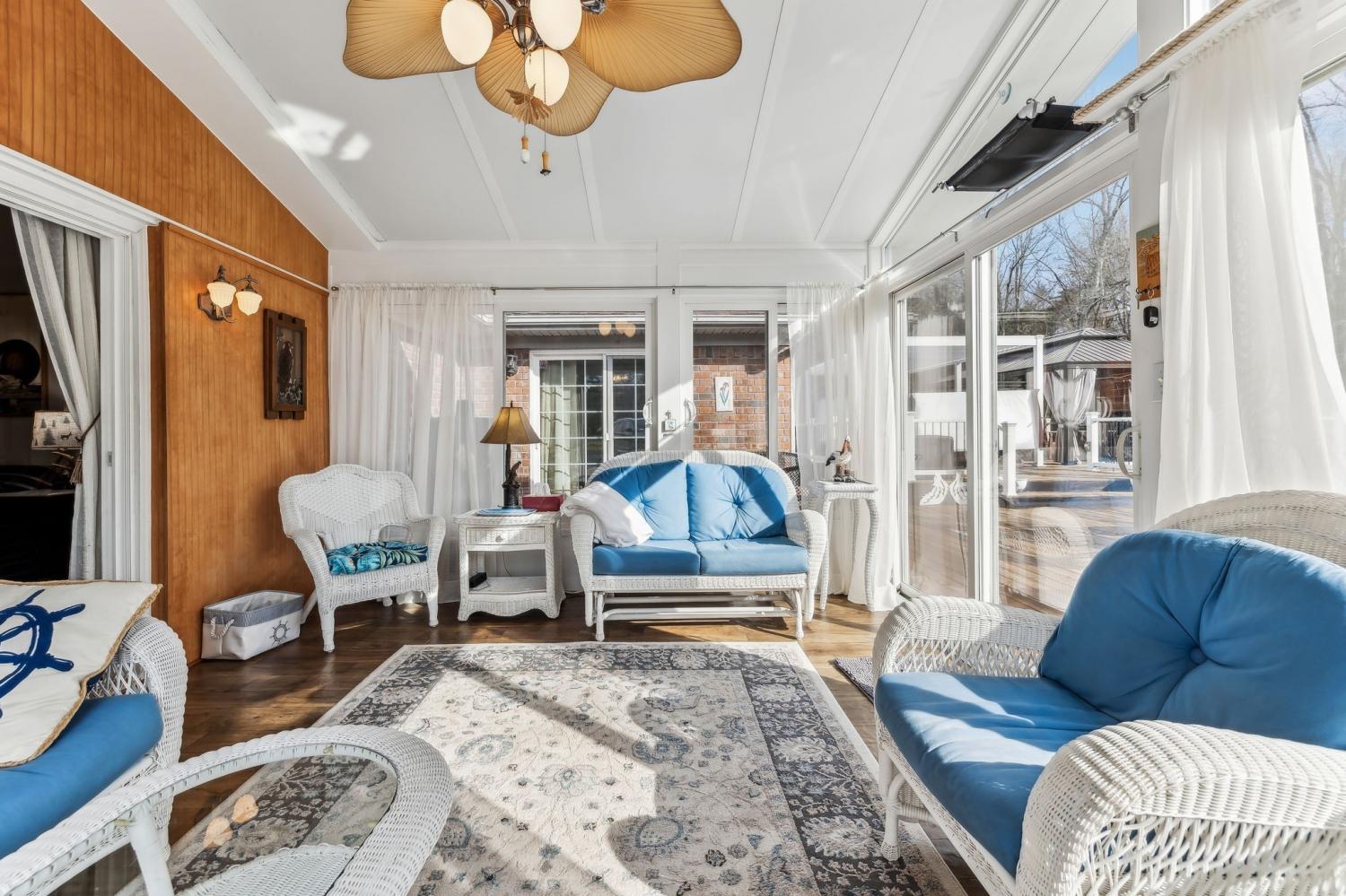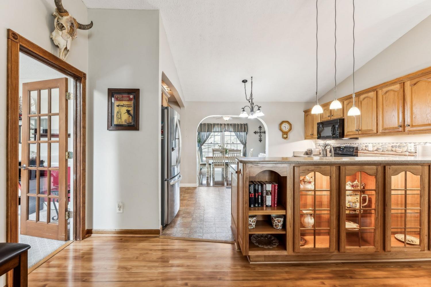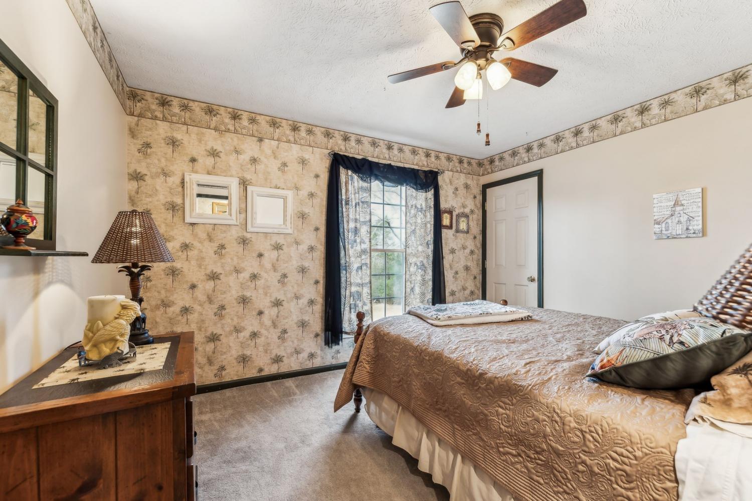 Your country paradise awaits—just 4 miles from I-65! Tucked back off the road with a 500 ft. paved driveway, this peaceful retreat offers the perfect blend of privacy and convenience. The property features a heated & cooled workshop with patio and tractor shed, plus incredible outdoor living spaces. The expansive deck is designed for entertaining, complete with a cooking gazebo, party gazebo, covered hot tub, swim spa, fire pit, and plenty of room to relax while watching the wildlife. Inside, a heated & cooled sun porch surrounded by glass provides the ultimate spot for evening relaxation. The family room boasts a walk-up bar, while the cozy den offers a fireplace with gas logs—perfect for enjoying the big game or a card night. The spacious primary suite includes a walk-in tile shower, abundant closet space, and private access to the deck. The modern kitchen shines with updated appliances, solid countertops, and a bar featuring a built-in lighted china cabinet that opens to the den. With 3 bedrooms plus an office/craft room (optional 4th bedroom), this home offers flexibility for your needs. Recent updates include a new roof, gutters, skylights with remote control blinds, and shutters (July 2025). All appliances remain, making this home truly move-in ready. The property also offers 5+ acres of space for kids to ride bikes or four-wheelers. Lovingly maintained and in immaculate condition, this home is ready for its next owners to enjoy!