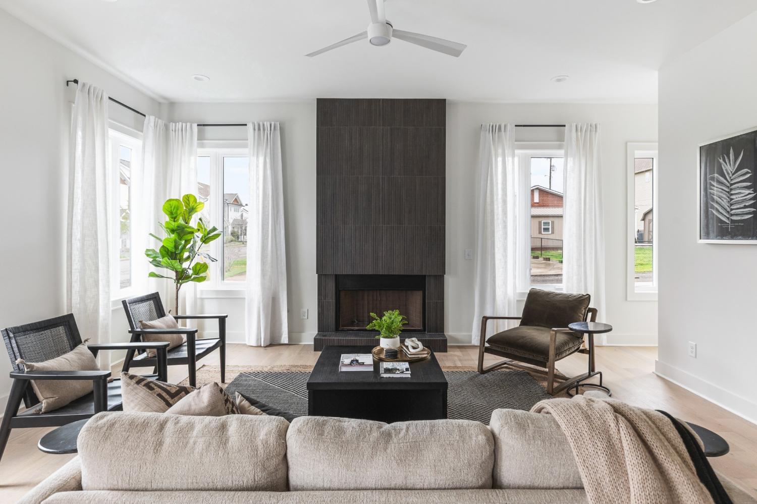 This stunning new-construction modern home places you at the center of it all, with ultimate walkability right outside your door: the Nations - a vibrant neighborhood celebrated for its thriving restaurant scene, coffee shops, and local amenities. Inside, the home balances contemporary style with thoughtful function. The main level features a light-filled open-concept living and dining area anchored by a sleek fireplace, perfect for the upcoming fall season. Just off the two-car garage, a dedicated creative workspace offers the ideal setup for remote work, hobbies, or additional storage. Upstairs, every bedroom is designed as a private retreat, complete with designer-curated finishes. The expansive primary suite is the crown jewel, showcasing spa-like details and a soaking tub. Three additional bedrooms provide flexibility for family, guests, or a home office, all with elevated style and quality. A newly installed fenced yard with a gated entry elevates your green space for easy outdoor living. With its unmatched design, high-quality finishes, and an unbeatable location, this home captures the best of modern Nashville living.