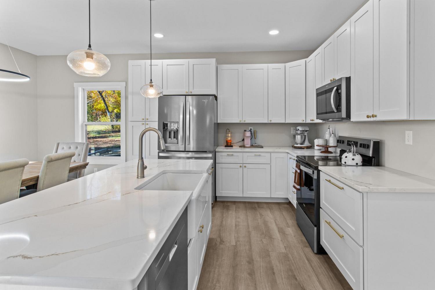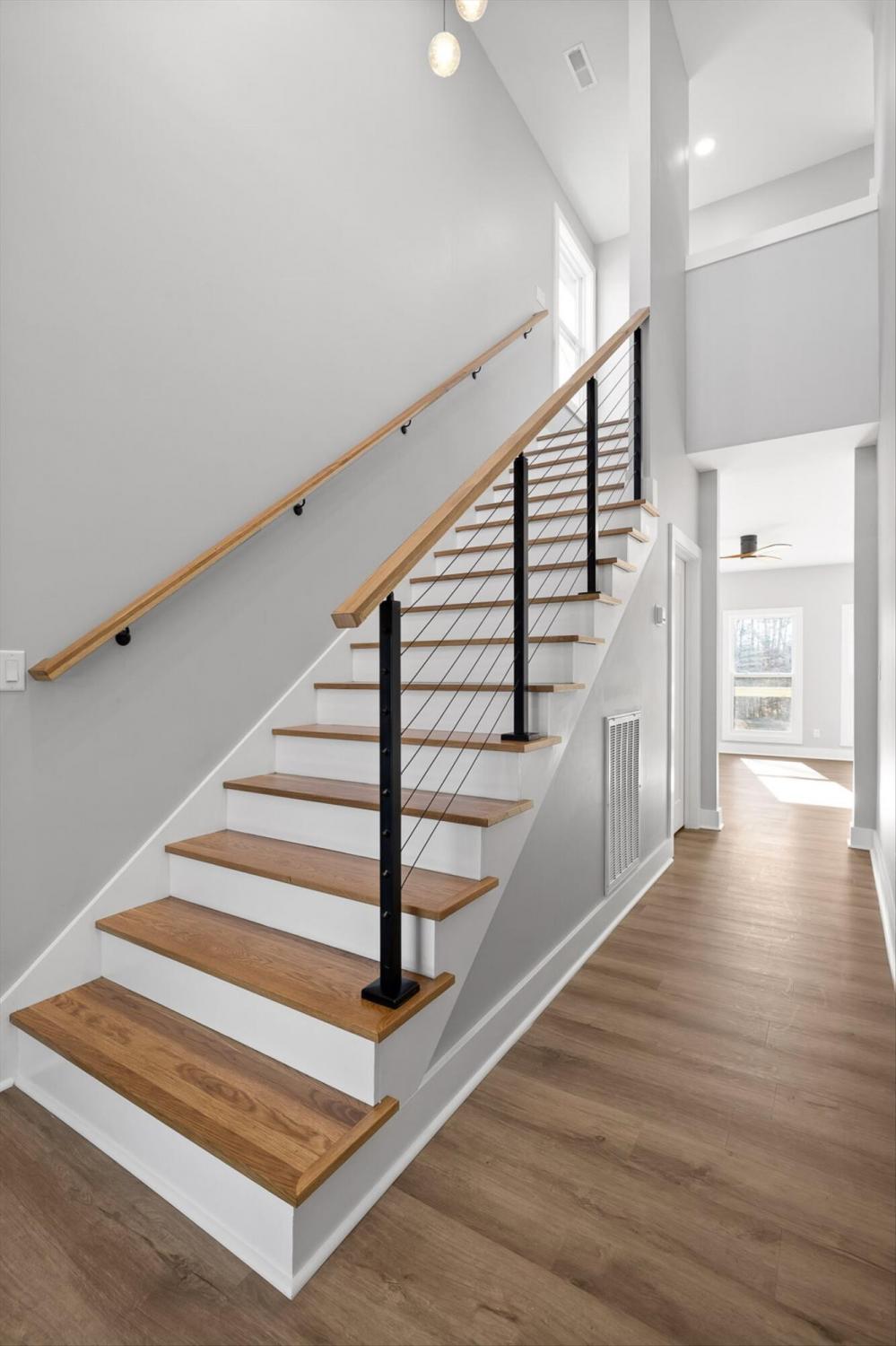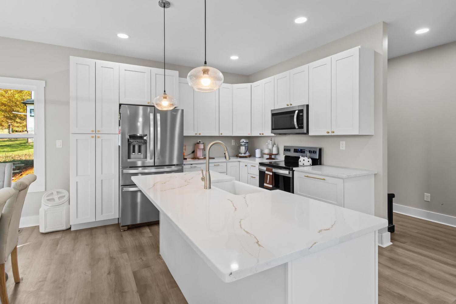 Discover the charm of this contemporary modern home with high-end finishes in a newly developed subdivision on the back side of the greens of the old Mt Airy Golf Course, offering a peaceful and scenic setting like no other. Step inside this two-story design that cleverly separates the main living space and a convenient half bath on the lower level from three bedrooms and two full bathrooms on the upper level. The main living areas are thoughtfully designed for comfort and functionality, creating an ideal environment for both daily living and entertaining guests. The clever layout provides a distinct boundary between the living and sleeping quarters, offering a sense of privacy and separation for the occupants. Traveling is a breeze with proximity to various airports like Chattanooga Metropolitan Airport, McGhee Tyson Airport, Nashville International Airport, and even Hartsfield-Jackson Atlanta International Airport, ensuring seamless connections to various destinations for your next adventure.