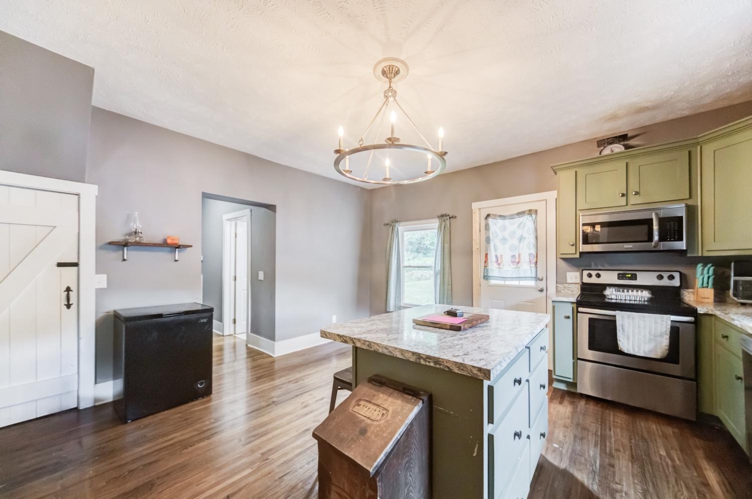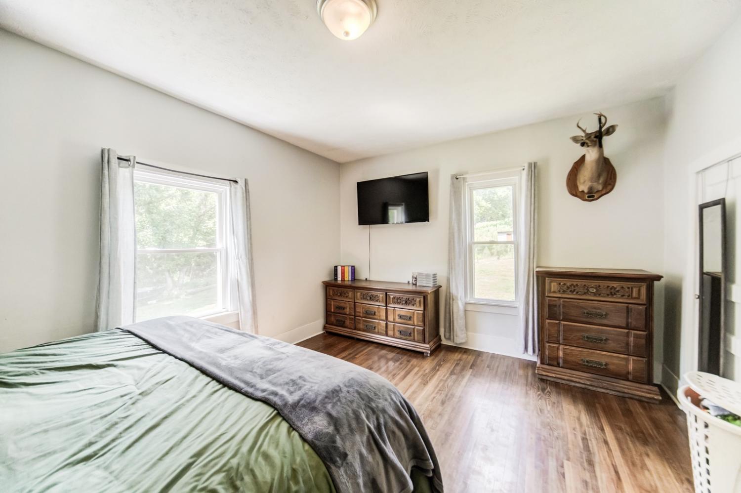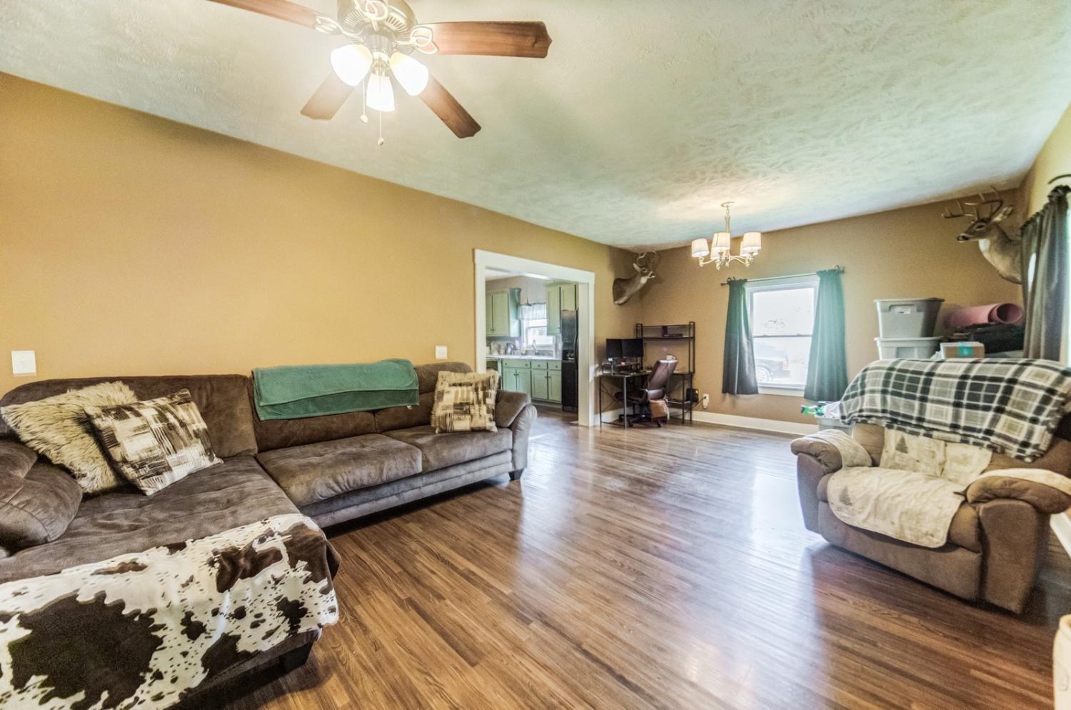 Peace, quiet, serenity, and beauty best describes this gem! 1945 renovated farmhouse with a spacious kitchen area, huge living room, hardwood floors, and a rustic utility area. House also offers a cellar in the basement that can store canning goods or serve as a storm cellar. Home sits on 2.5 acres surrounded by woods, and gorgeous scenery along with some of acreage fenced just waiting for your horses or livestock. Property offers a detached garage with concrete floors and utilities. There is a old smokehouse as well as a beautiful spring separated by a spring house. This place is a must see because of the beauty of the countryside while sitting on your front porch! Property is located close to recreational areas, convenient to small town necessities yet still offering a sense of privacy.