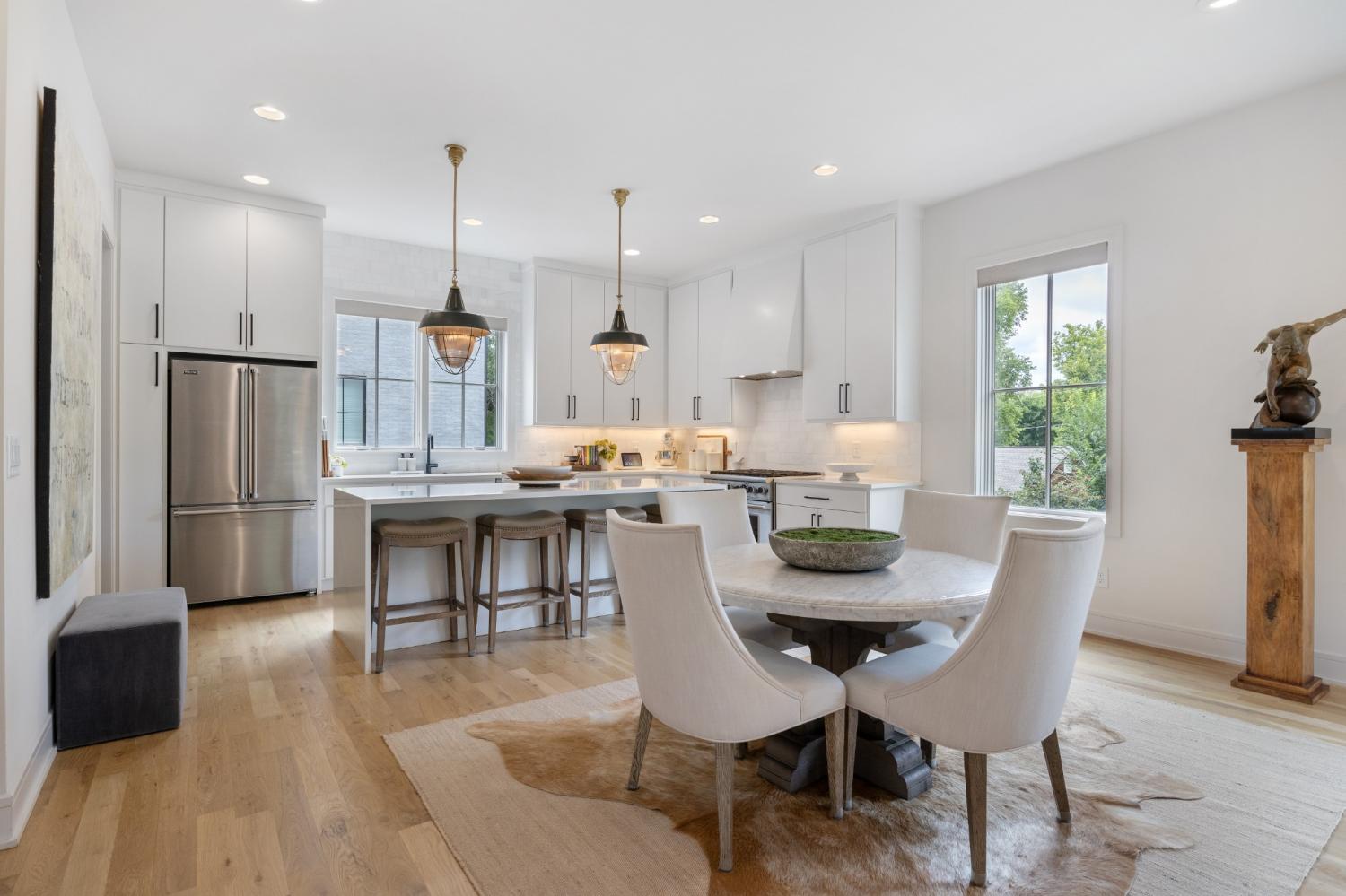Located in the heart of Nashville’s most coveted neighborhood, this better-than-new greystone captures the essence of upscale urban living, offering a true lock-and-leave lifestyle just steps from the vibrant restaurants and boutiques of 12 South. Inside, a thoughtfully appointed floor plan and the meticulously curated designer finishes strike the perfect balance between elegance and comfort. The open-concept layout invites effortless entertaining, with a limewash fireplace anchoring the living room and a chef’s kitchen featuring ceiling-height cabinetry, a full VIKING appliance suite, and a striking waterfall island. Upstairs, the stunning primary impresses with soaring ceilings, bay windows that bathe the room in natural light, and dual closets, while the ensuite features a floor-to-ceiling marble walk-in shower, freestanding soaking tub, and dual vanities for a truly spa-like experience. Two additional bedrooms provide versatility for guests, a home office, or creative space. The top-level entertaining area—complete with a wine closet and private balcony—sets the stage for memorable evenings. Beyond the residence, an exclusive community garden featuring gas grills and fire pits offers a tranquil retreat in the heart of the city. No detail has been overlooked in this beautiful residence—it’s one you have to see for yourself!