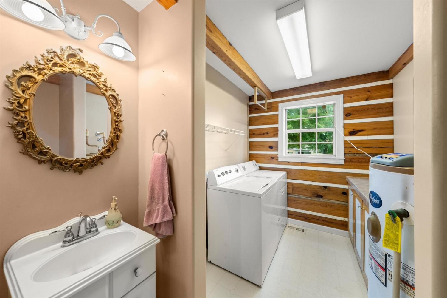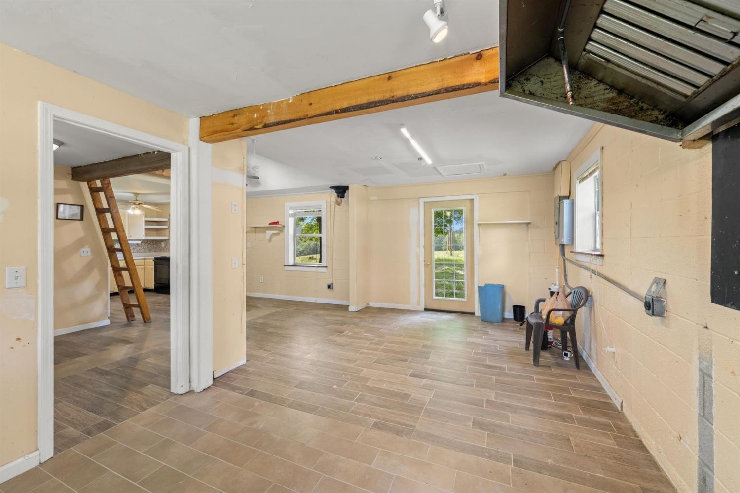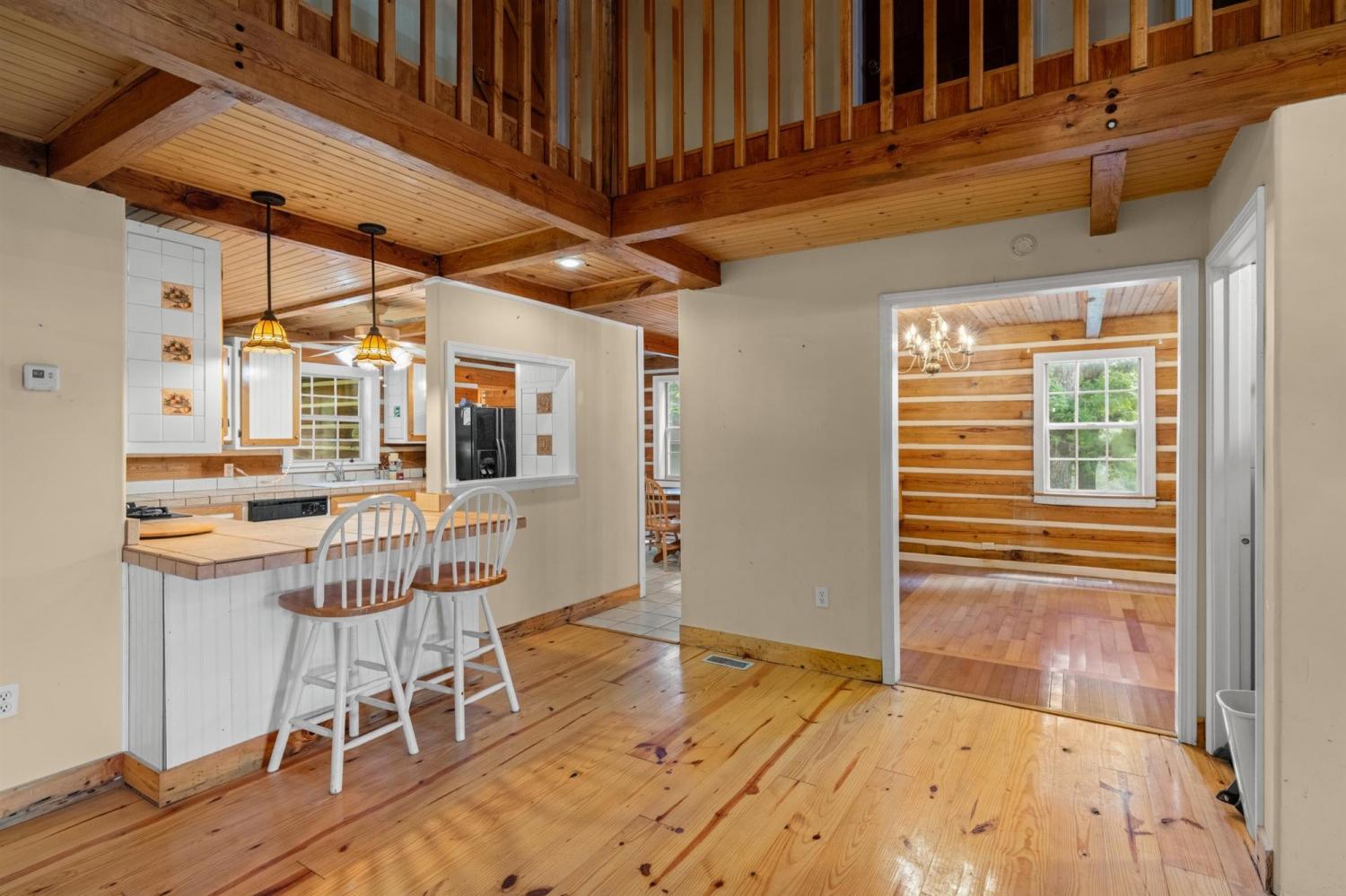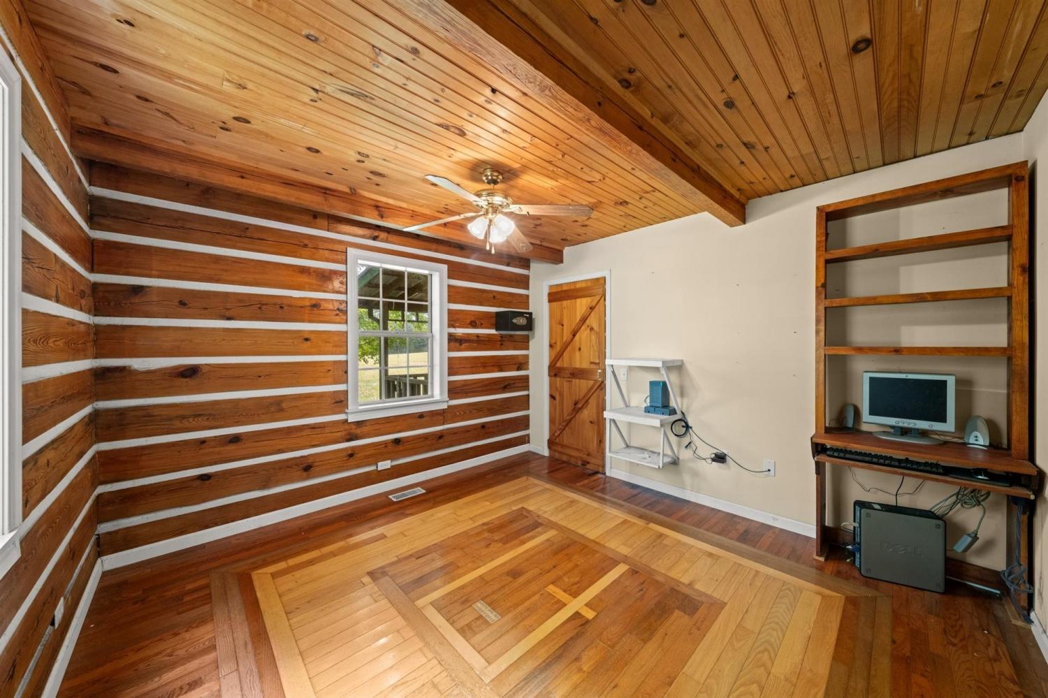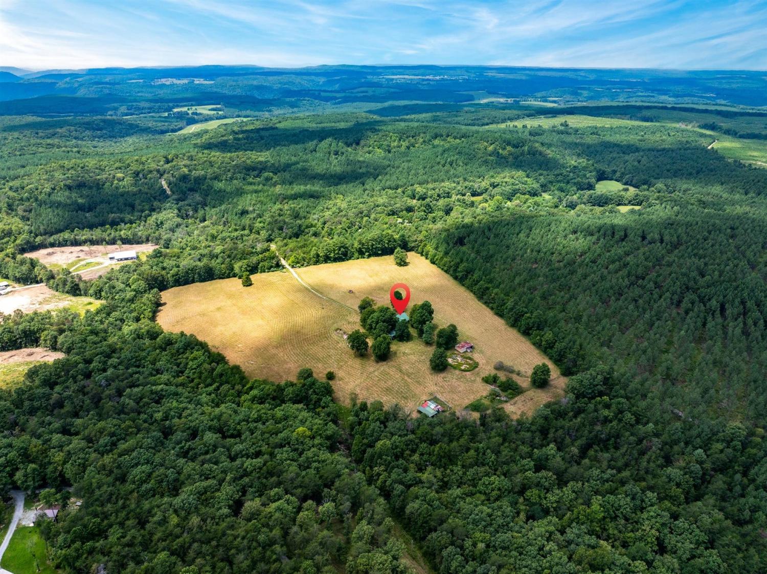 Rare opportunity to own this 25-acre unrestricted private oasis, featuring 2 houses, a detached 2-car garage, a large barn, and high-speed fiber internet. You'll own 6 acres of trees surrounding this beautiful homestead, providing ultimate privacy for the remaining 19 acres of flat/gently-sloping cleared pasture. Farm, create a family compound, or just sit back and enjoy watching the deer and wild turkeys run around! Walking into the 2,822 sq/ft log cabin, you'll first take pleasure in the airy feel of the 20-foot vaulted ceiling. The first floor has a master bed/bath, sitting room, office, dining room, eat-in kitchen, and laundry room with additional half-bath. The second floor features a full bath and 4 rooms with 7-foot ceilings. The hardwood staircase then takes you farther up to the third level, where you'll find two small rooms. The 816 sq/ft cinderblock house features a 12-foot vaulted ceiling, with a bedroom, full bathroom, and open-concept kitchen/living room. This house also has two small additional rooms upstairs. The garage and barn both have electricity. The barn features multiple animal stalls and lots of hay to get you started. Public electricity, private well water, septic. Public water available. They don't make houses like this anymore. Come with your vision and update the kitchen and bathrooms to your liking. My awesome handyman is ready to start, or bring your own. No permits required (except for septic and electric). Internet driving directions say there are unpaved roads on the way to the house, but that is incorrect. The roads are paved. No HOA. Sale as-is. Buyer to inspect/verify/obtain all information of importance.