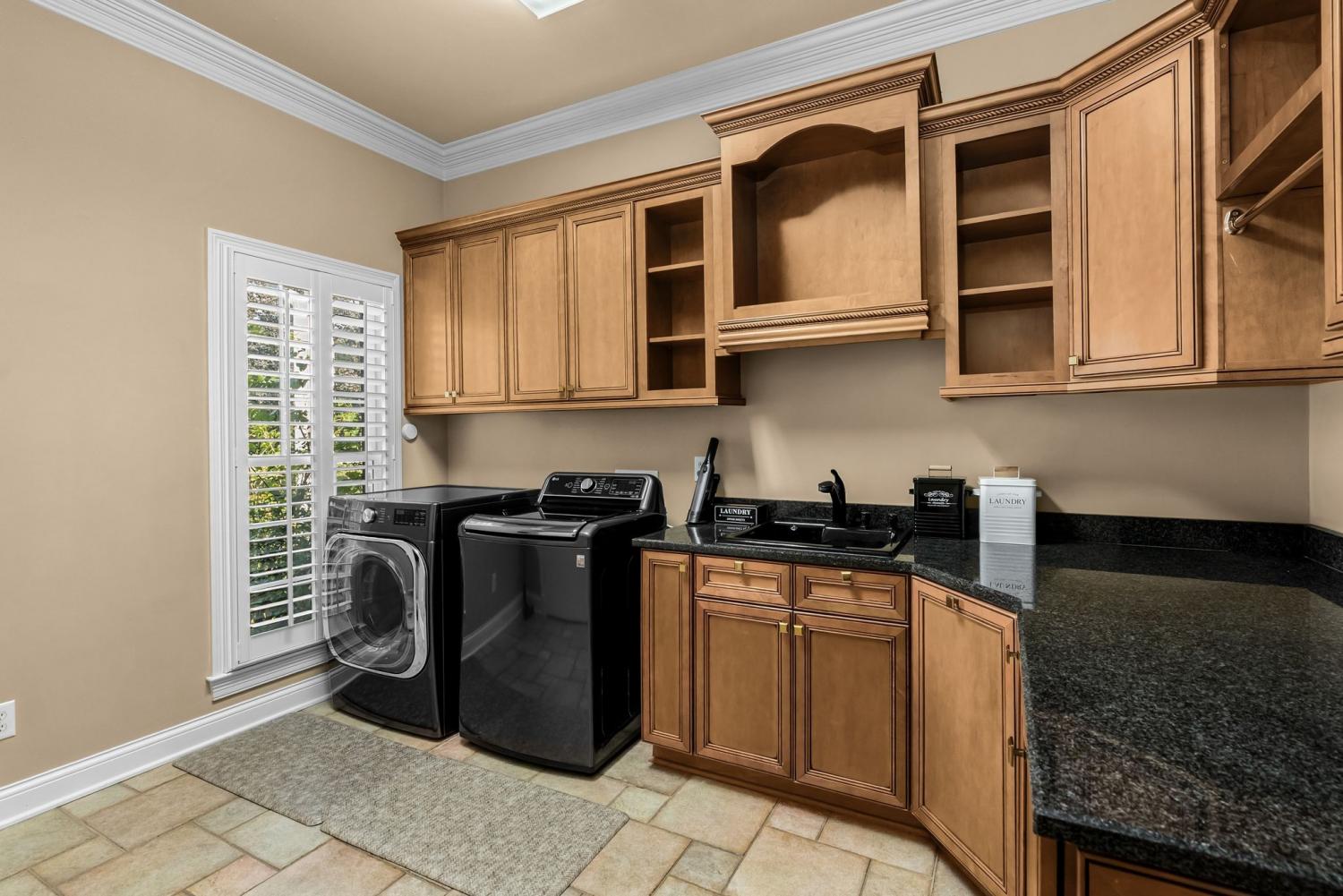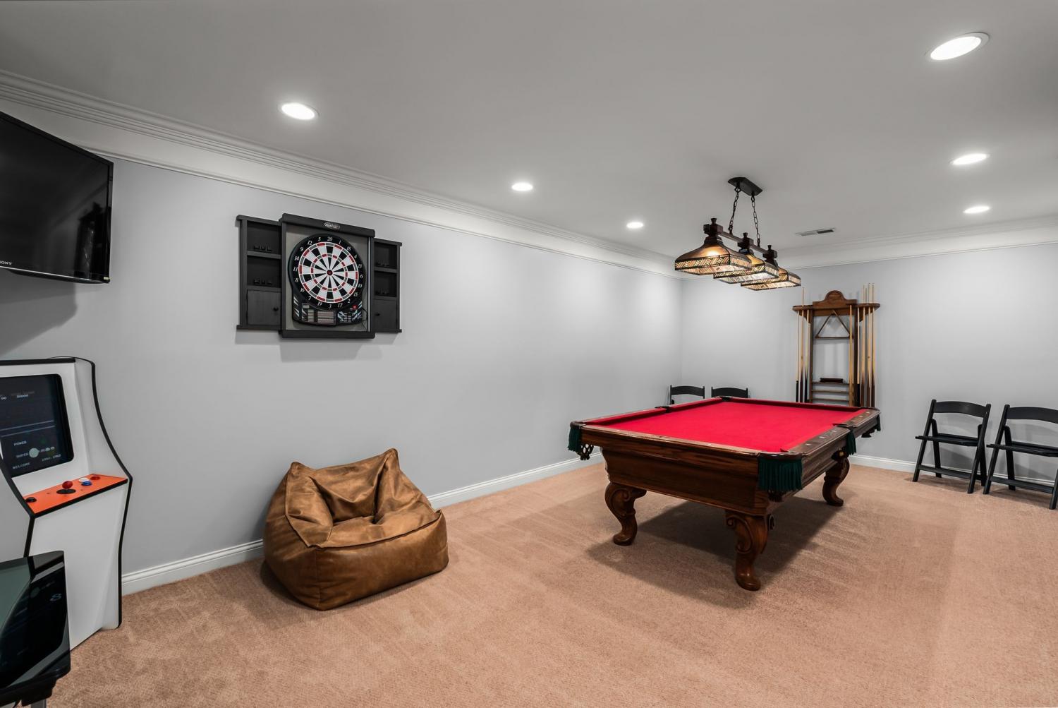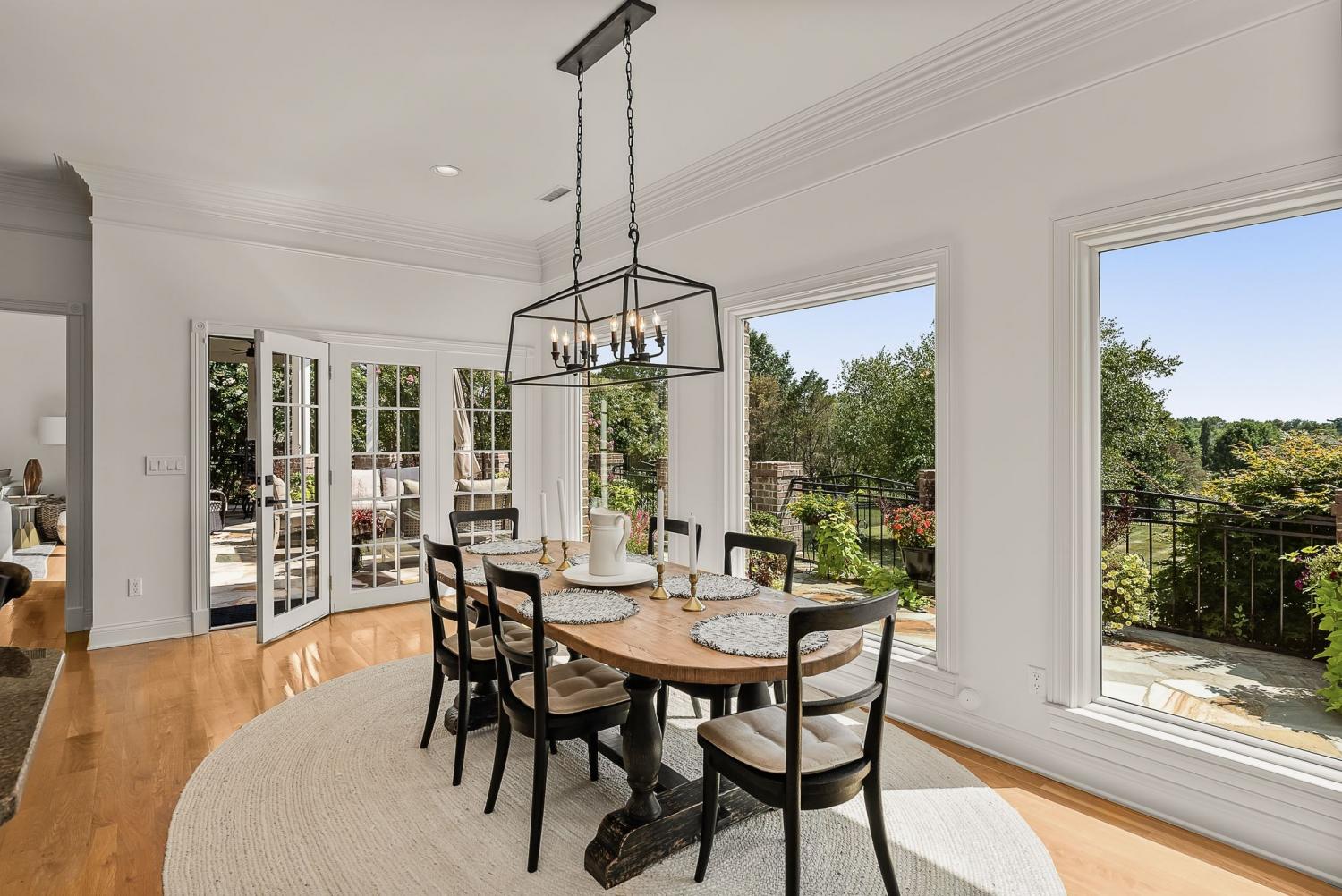 Experience refined living at 805 Legends Glen Court, situated on a 1.02-acre flat lot with serene lakes views. The fenced backyard offers privacy and space, while the covered front porch, expansive back balcony, and lower patio create a seamless indoor-outdoor living experience. Step inside to discover a bright, open floor plan where a formal dining room seamlessly transitions into the inviting living area, anchored by a cozy fireplace and framed by large windows that flood the home with natural light. The chef’s kitchen features a generous island, double ovens, and a gas cooktop, ideal for both everyday living and entertaining. This home boasts two primary suites on the main level, providing flexible living arrangements. You’ll find spaces designed for every lifestyle, including a media room, home gym, billiard room, a recreation room with a wet bar, and a flex space with a doggy door. Additional highlights include a three-car garage and an ideal location just minutes from top-rated schools, shopping, dining, and the many attractions of Franklin.