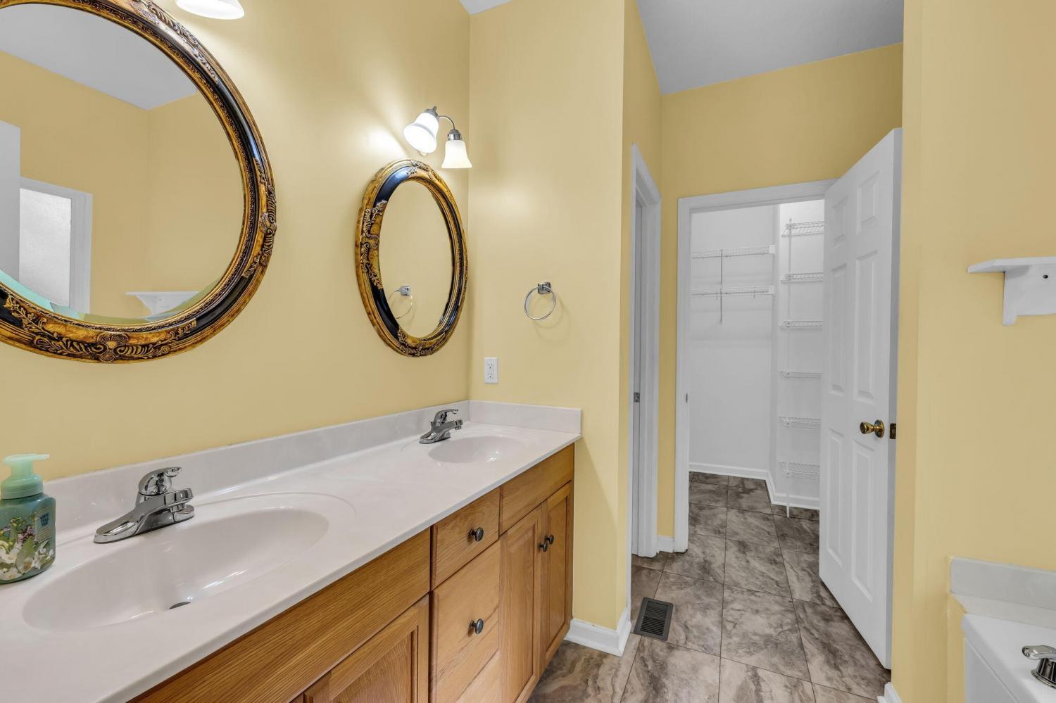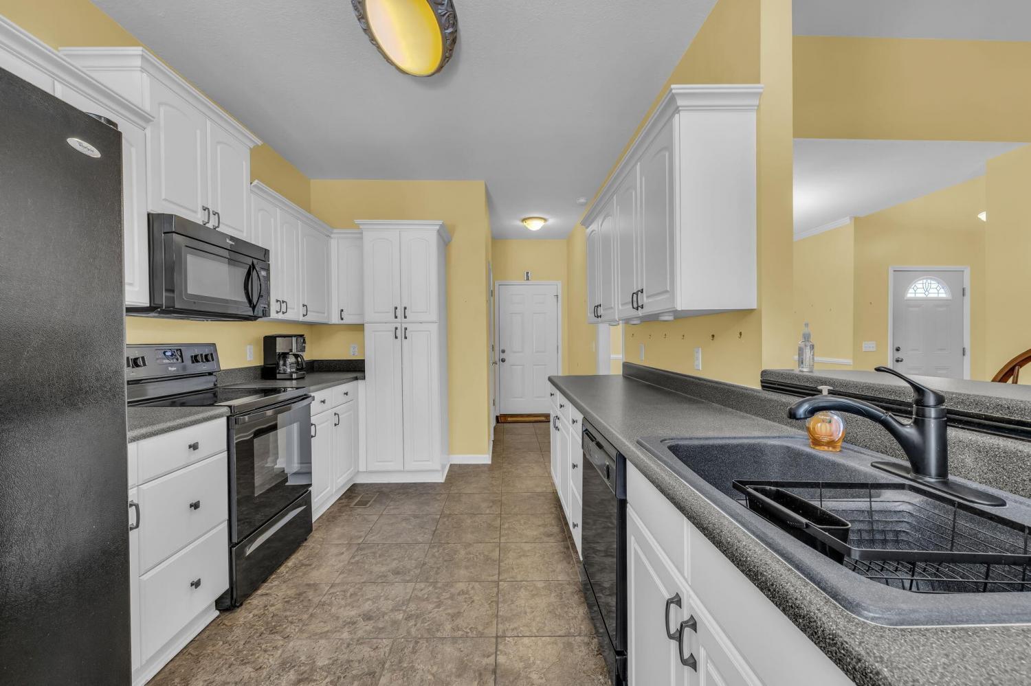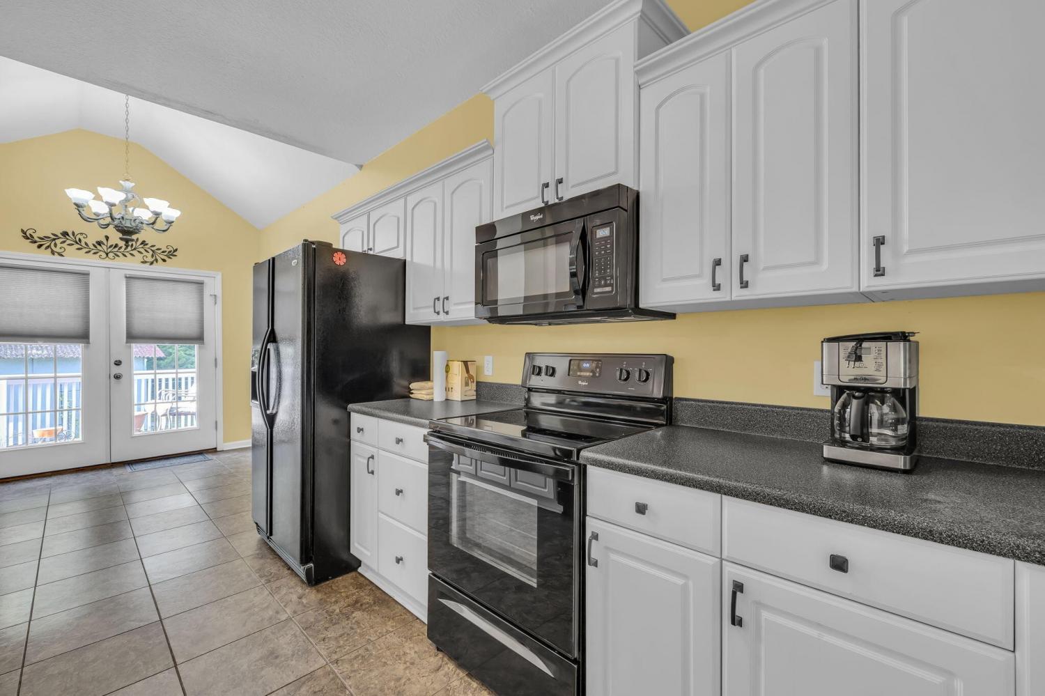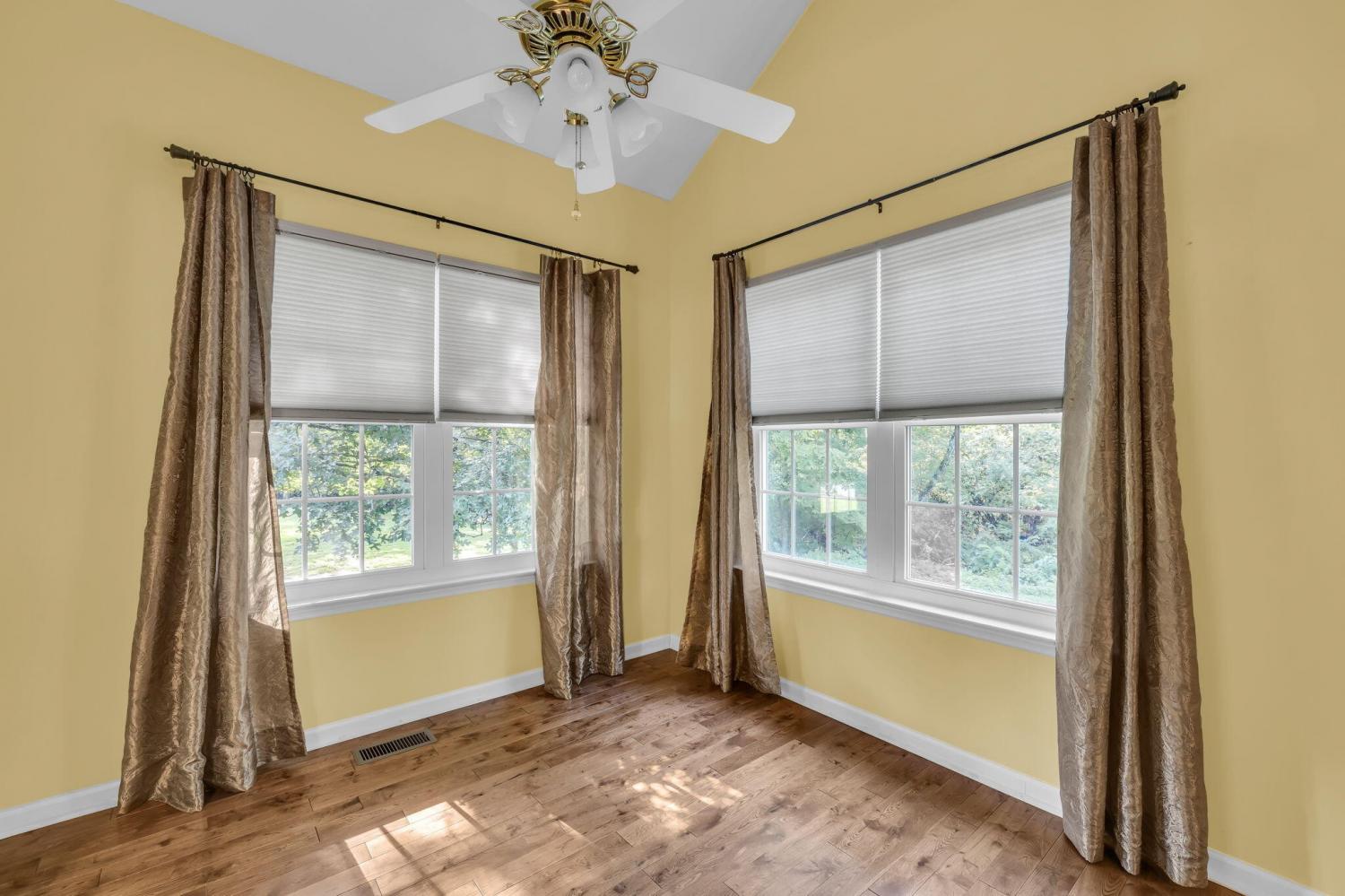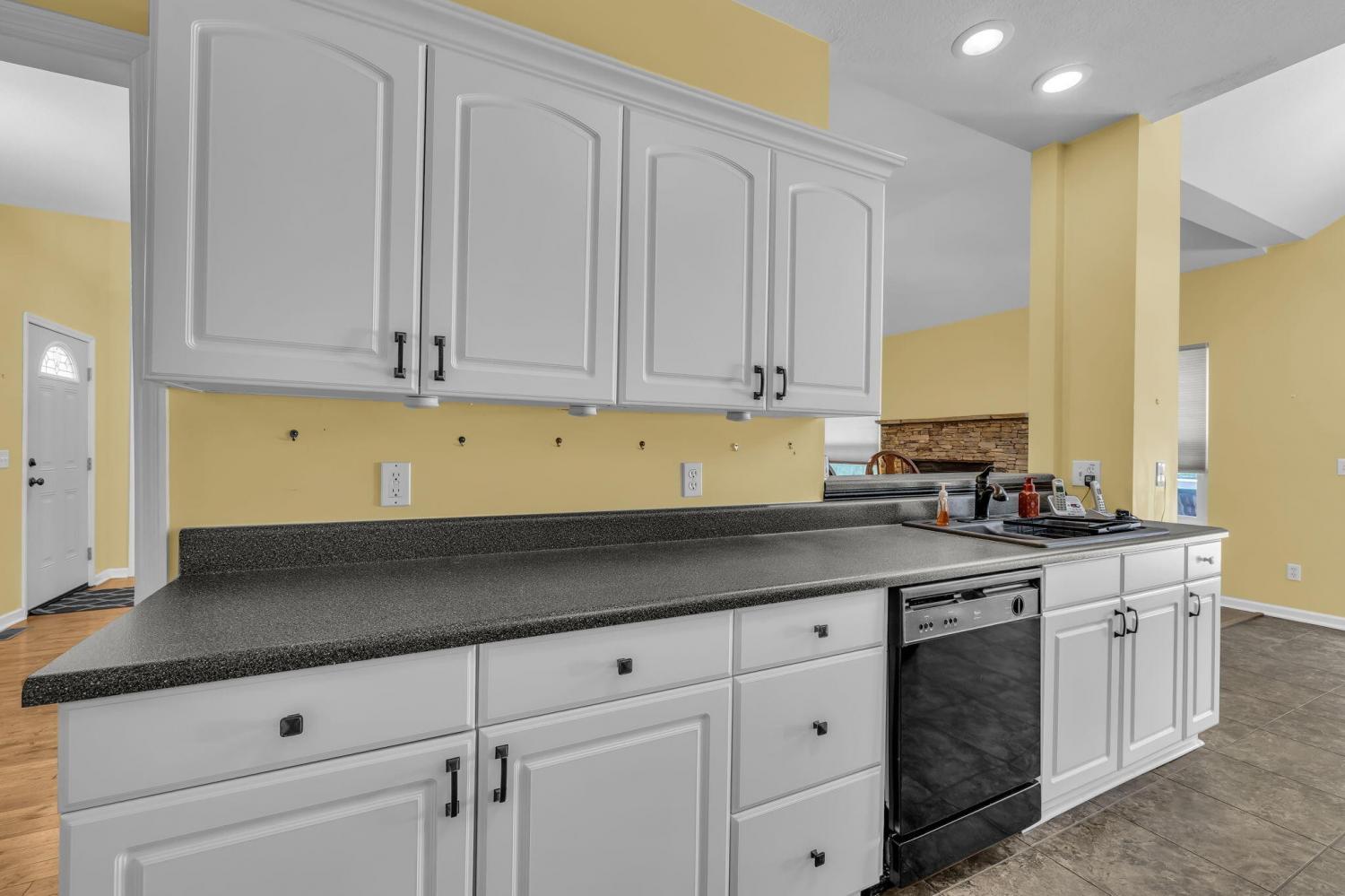 This charming 3-bedroom, 2-bath home offers the perfect blend of comfort and style—all on one level. Step inside to an inviting open layout where hardwood floors, soaring vaulted ceilings, and a distinctive stacked stone fireplace set the tone for relaxed living. The kitchen is designed for both convenience and connection, seamlessly flowing into the eat-in area and formal dining room—ideal for everyday life and entertaining. The spacious primary suite is a true retreat, featuring a double vanity, soaking tub, and generous walk-in closet. Outside, unwind on the deck while enjoying a private, tree-lined backyard that provides the perfect backdrop for quiet mornings or gatherings with friends. This home combines comfort, style, and convenience in a desirable location.