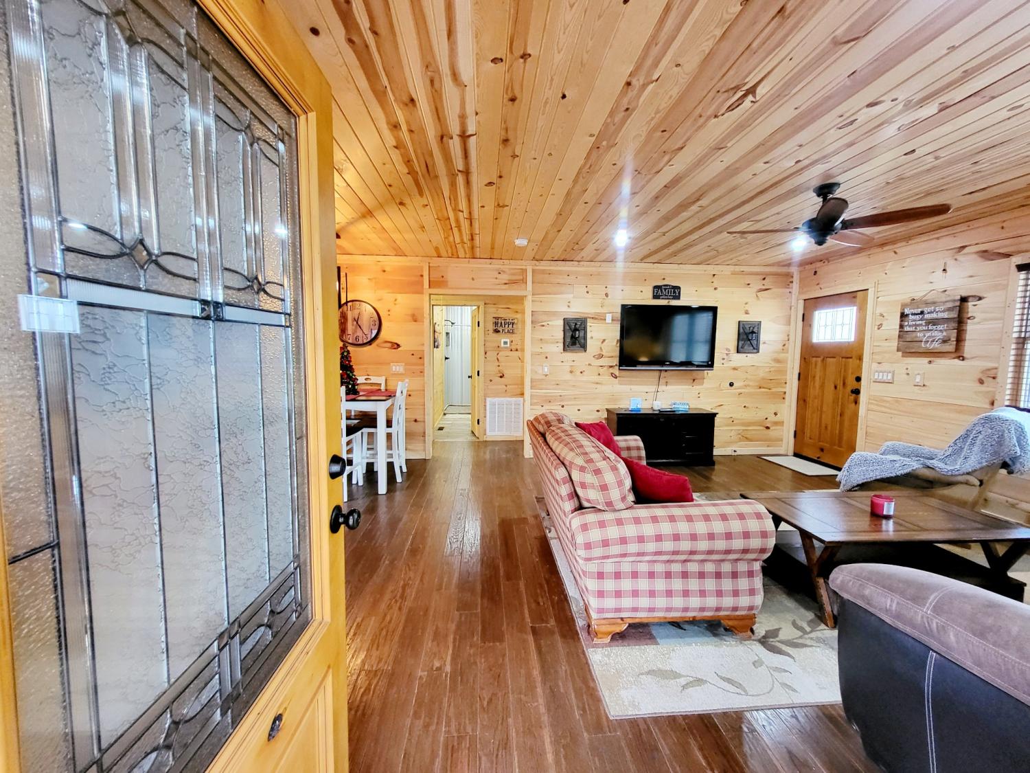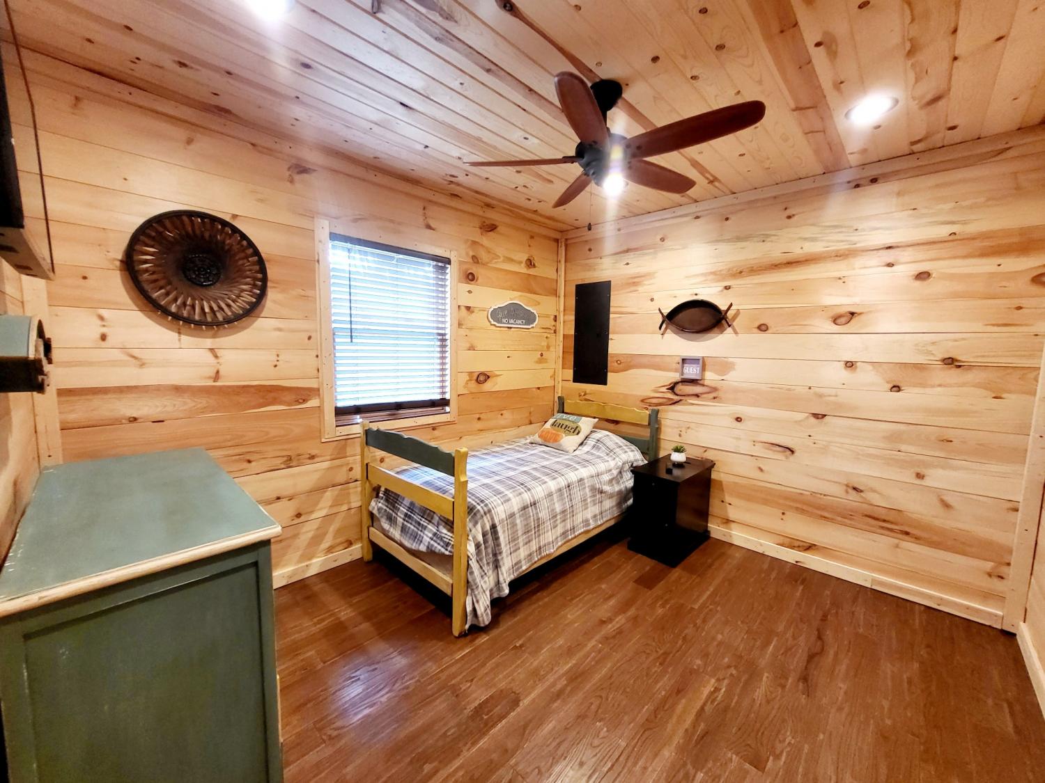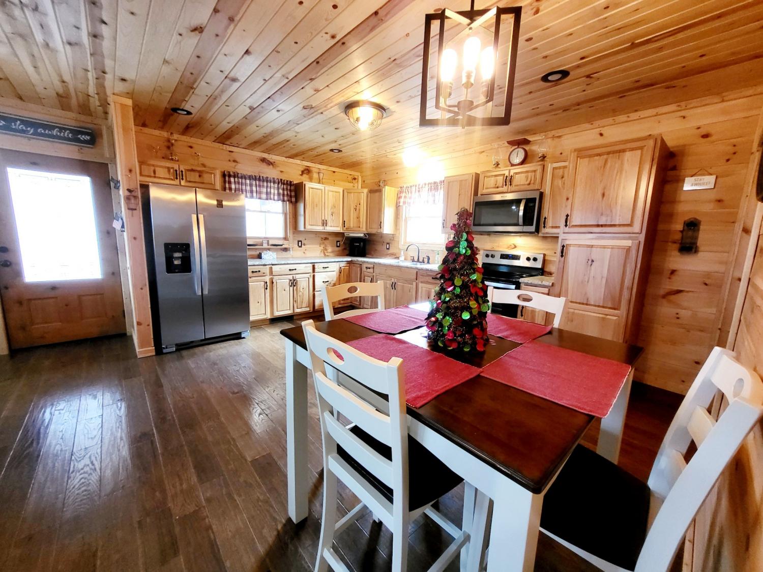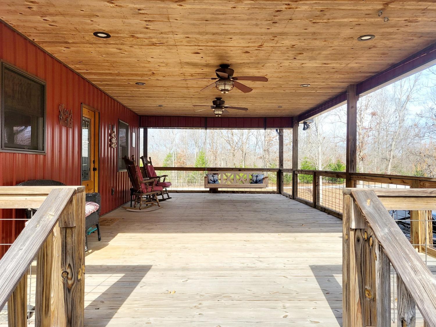 BIRDSONG AREA FURNISHED CABIN - AIRBNB/VRBO READY! Cozy cabin life to refresh & unwind. There is something inherently special about a cabin that evokes a sense of comfort, escape & reconnection to nature. Even better when it's nestled less than a mile from the glistening waters of the Tennessee River/Kentucky Lake. Enjoy effortless year-round lake access at multiple public boat ramps in the area. Take a short golf cart ride to the water's edge. Birdsong Marina is your one stop shop to fuel up, rent a boat for the day, or get a nice covered slip for your own vessel. The location offers the perfect blend of natural beauty & recreational opportunities. Spotting deer in the yard while drinking morning coffee from the grand wraparound porch will become your new normal. The thoughtfully designed open-concept space seamlessly blends the kitchen, dining & living areas. Despite its modest footprint, the layout is highly functional creating an easy flow of indoor to outdoor living enjoyment. Here, rustic charm meets personalized luxury with notes of warm hardwoods, rustic tin & archetictural design elements. Spacious split bedrooms offer maximum privacy & distinct sleeping zones with easy access to a full spa-like bath in the hall. Seclusion is key for this residence as it rests at the end of a culdesac with tranquil views of nature. Your ideal weekend lake retreat awaits. Perfect cabin getaway for a short term airbnb/vrbo rental or long-awaited dream home to have all to yourself. For your convenience a natural gas service line has already been run to the house for future connection to add even more ambiance to the cabin with a gas fireplace.
