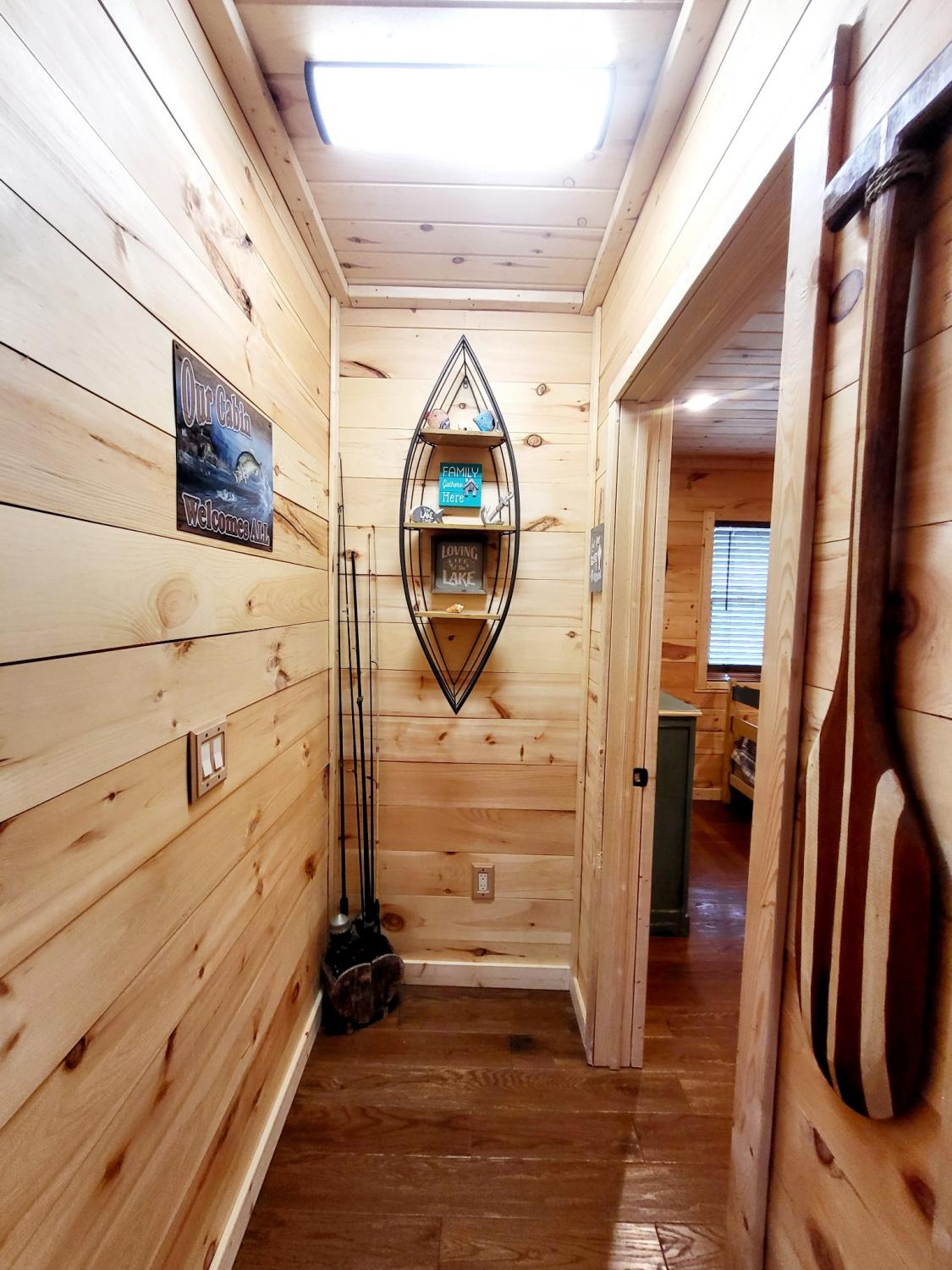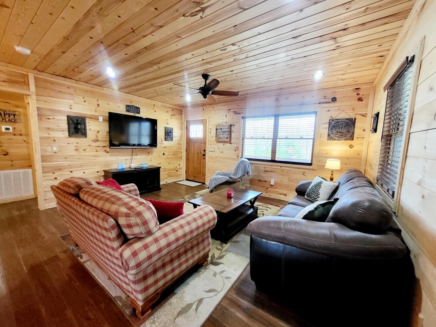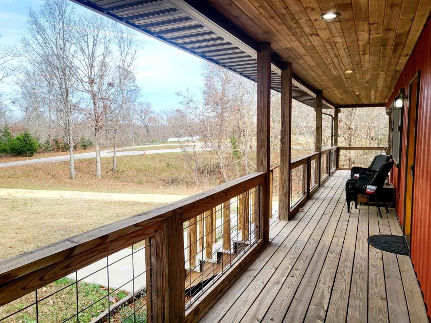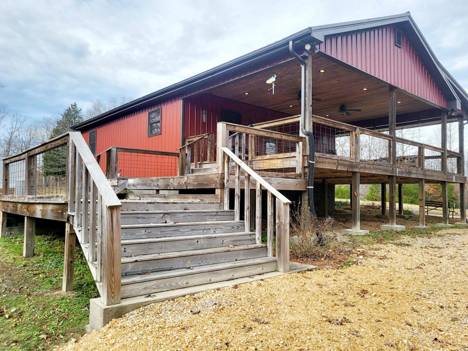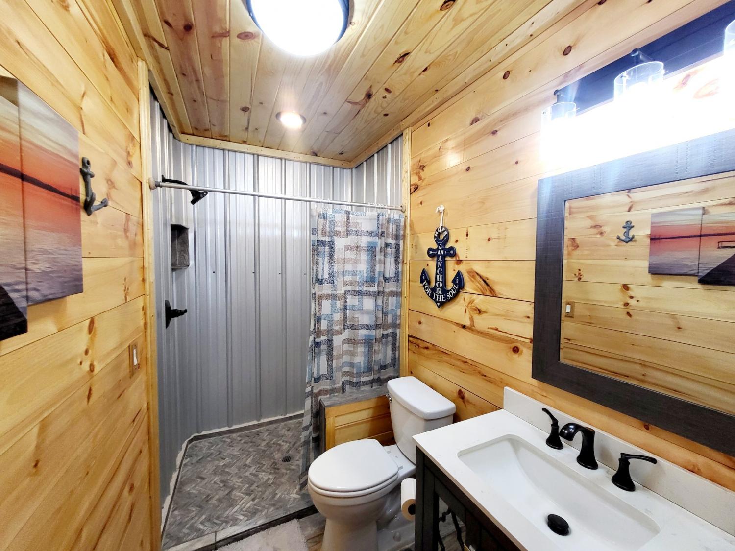 BIRDSONG AREA FURNISHED CABIN - AIRBNB/VRBO READY! Cozy cabin life to refresh & unwind. There is something inherently special about a cabin that evokes a sense of comfort, escape & reconnection to nature. Even better when it's nestled less than a mile from the glistening waters of the Tennessee River/Kentucky Lake. Enjoy effortless year-round lake access at multiple public boat ramps in the area. Take a short golf cart ride to the water's edge. Birdsong Marina is your one stop shop to fuel up, rent a boat for the day, or get a nice covered slip for your own vessel. The location offers the perfect blend of natural beauty & recreational opportunities. Spotting deer in the yard while drinking morning coffee from the grand wraparound porch will become your new normal. The thoughtfully designed open-concept space seamlessly blends the kitchen, dining & living areas. Despite its modest footprint, the layout is highly functional creating an easy flow of indoor to outdoor living enjoyment. Here, rustic charm meets personalized luxury with notes of warm hardwoods, rustic tin & archetictural design elements. Spacious split bedrooms offer maximum privacy & distinct sleeping zones with easy access to a full spa-like bath in the hall. Seclusion is key for this residence as it rests at the end of a culdesac with tranquil views of nature. Your ideal weekend lake retreat awaits. Perfect cabin getaway for a short term airbnb/vrbo rental or long-awaited dream home to have all to yourself. For your convenience a natural gas service line has already been run to the house for future connection to add even more ambiance to the cabin with a gas fireplace.