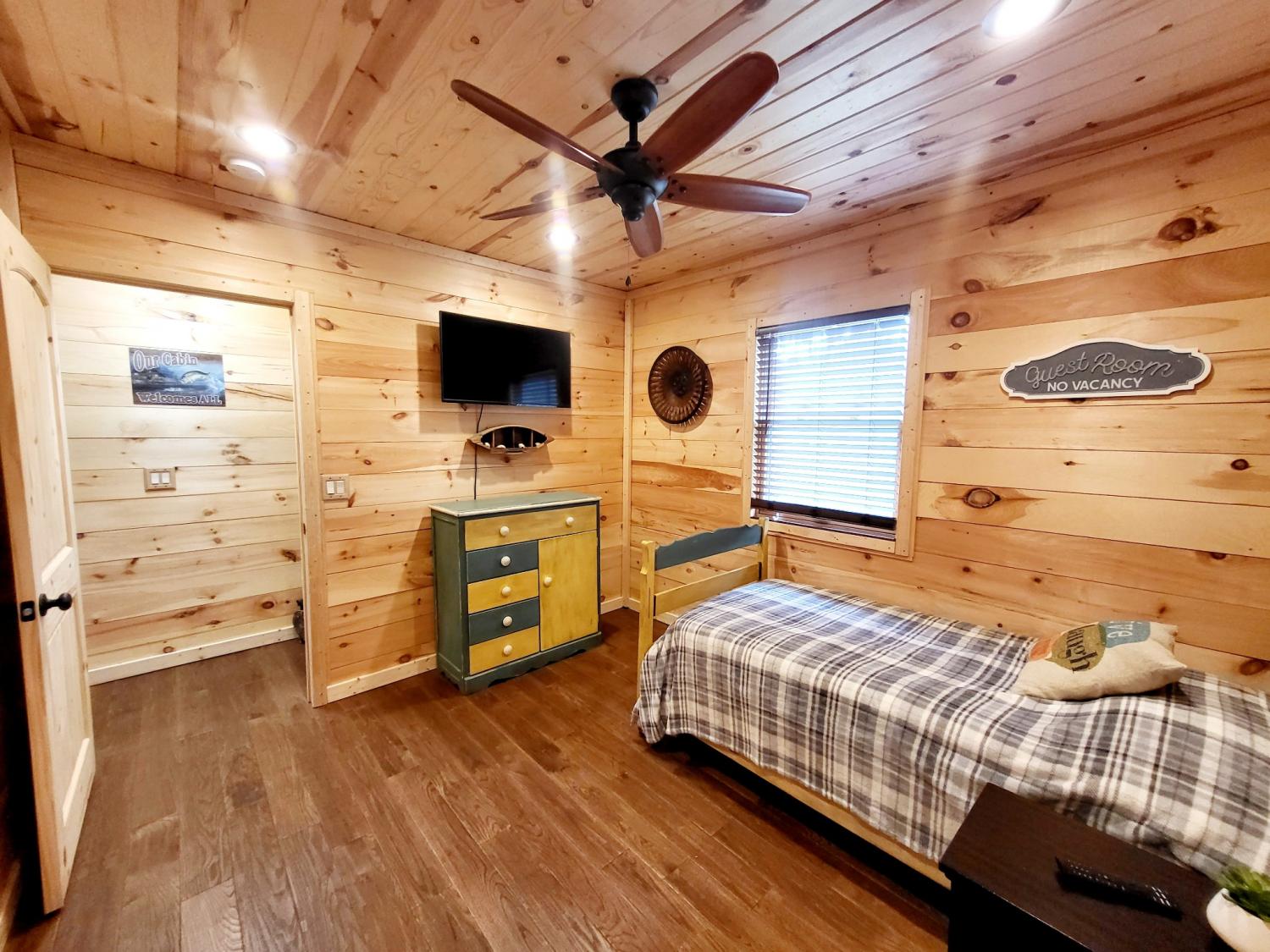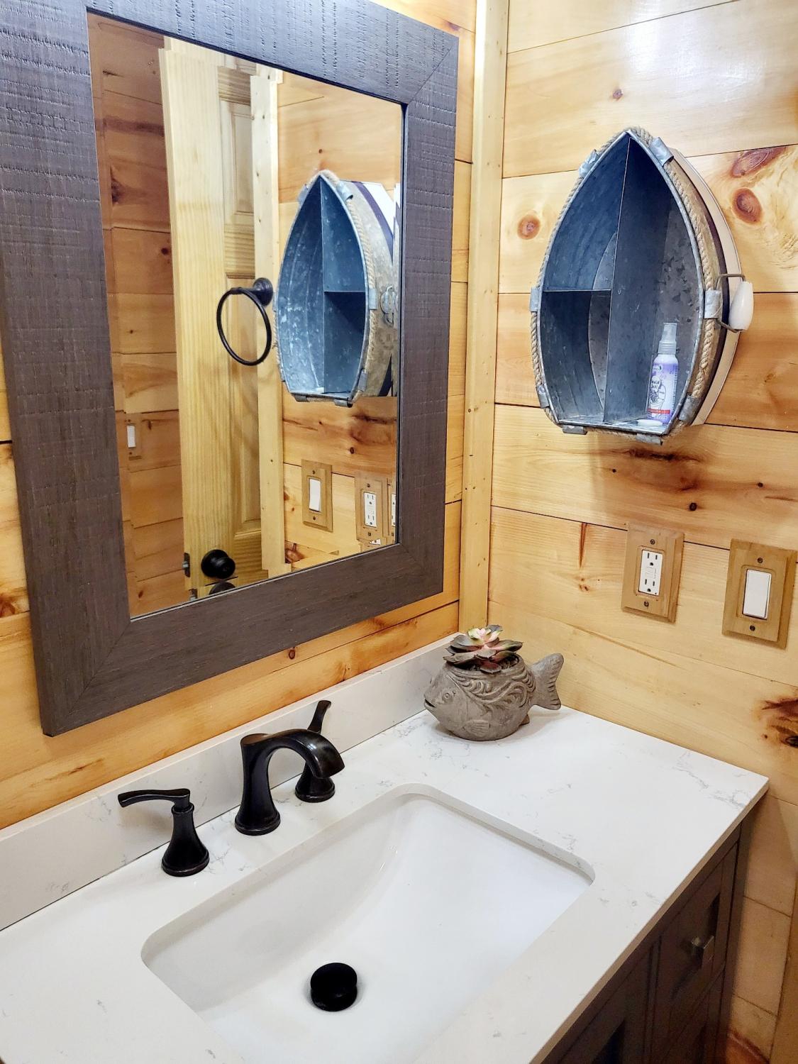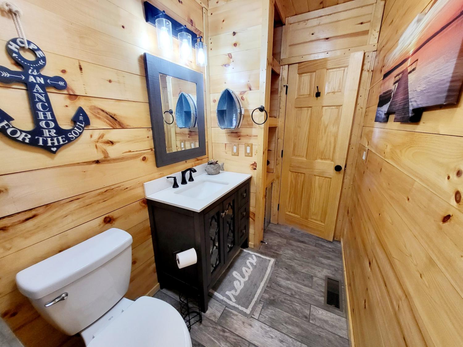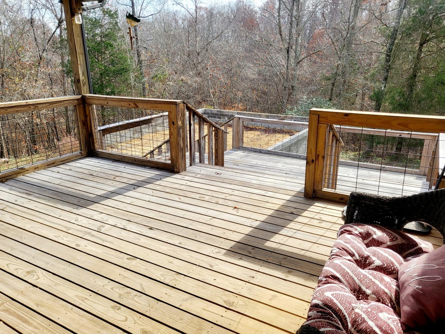 BIRDSONG AREA FURNISHED CABIN - AIRBNB/VRBO READY! Cozy cabin life to refresh & unwind. There is something inherently special about a cabin that evokes a sense of comfort, escape & reconnection to nature. Even better when it's nestled less than a mile from the glistening waters of the Tennessee River/Kentucky Lake. Enjoy effortless year-round lake access at multiple public boat ramps in the area. Take a short golf cart ride to the water's edge. Birdsong Marina is your one stop shop to fuel up, rent a boat for the day, or get a nice covered slip for your own vessel. The location offers the perfect blend of natural beauty & recreational opportunities. Spotting deer in the yard while drinking morning coffee from the grand wraparound porch will become your new normal. The thoughtfully designed open-concept space seamlessly blends the kitchen, dining & living areas. Despite its modest footprint, the layout is highly functional creating an easy flow of indoor to outdoor living enjoyment. Here, rustic charm meets personalized luxury with notes of warm hardwoods, rustic tin & archetictural design elements. Spacious split bedrooms offer maximum privacy & distinct sleeping zones with easy access to a full spa-like bath in the hall. Seclusion is key for this residence as it rests at the end of a culdesac with tranquil views of nature. Your ideal weekend lake retreat awaits. Perfect cabin getaway for a short term airbnb/vrbo rental or long-awaited dream home to have all to yourself. For your convenience a natural gas service line has already been run to the house for future connection to add even more ambiance to the cabin with a gas fireplace.