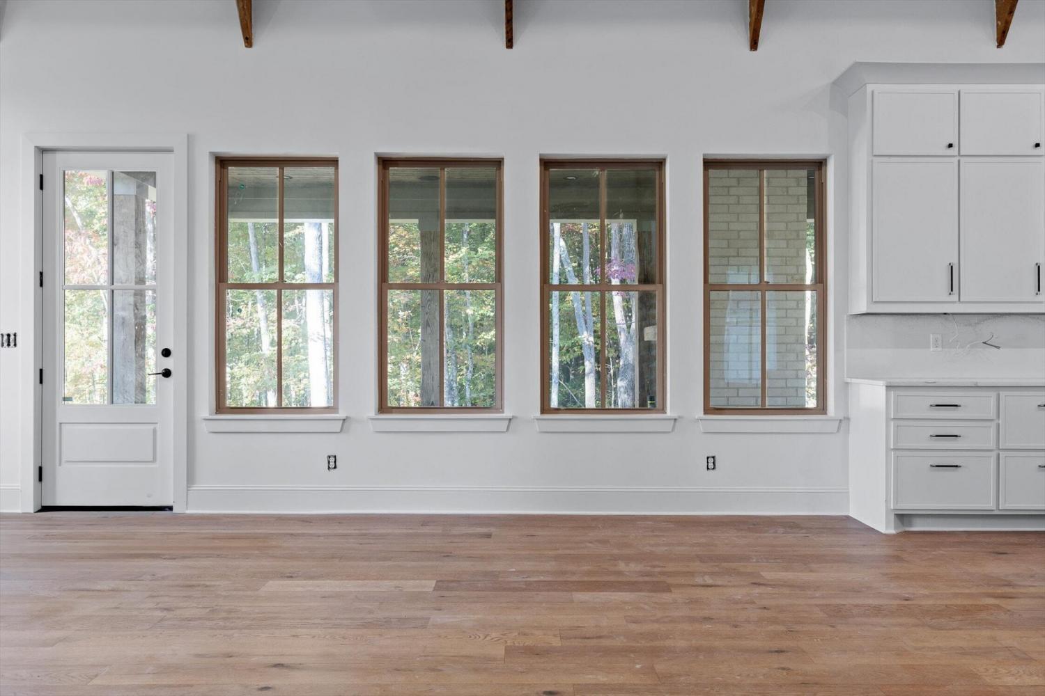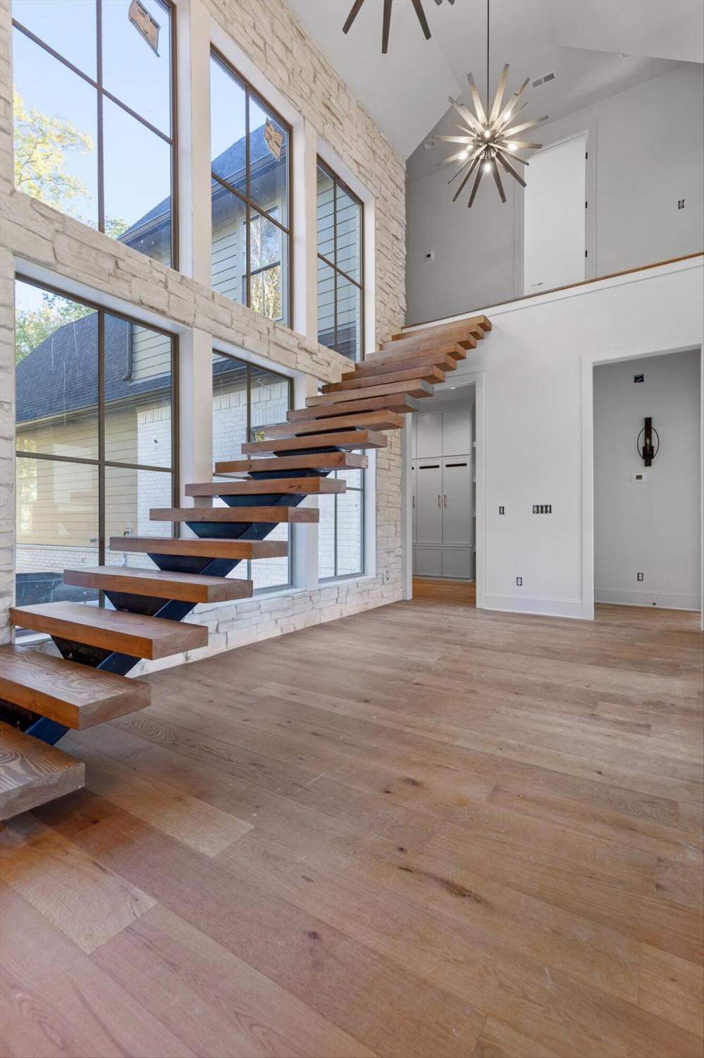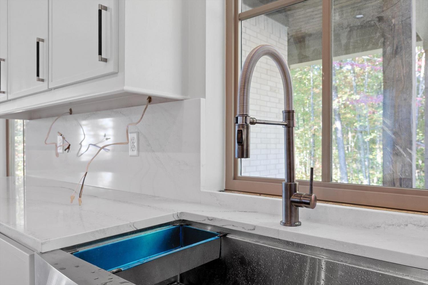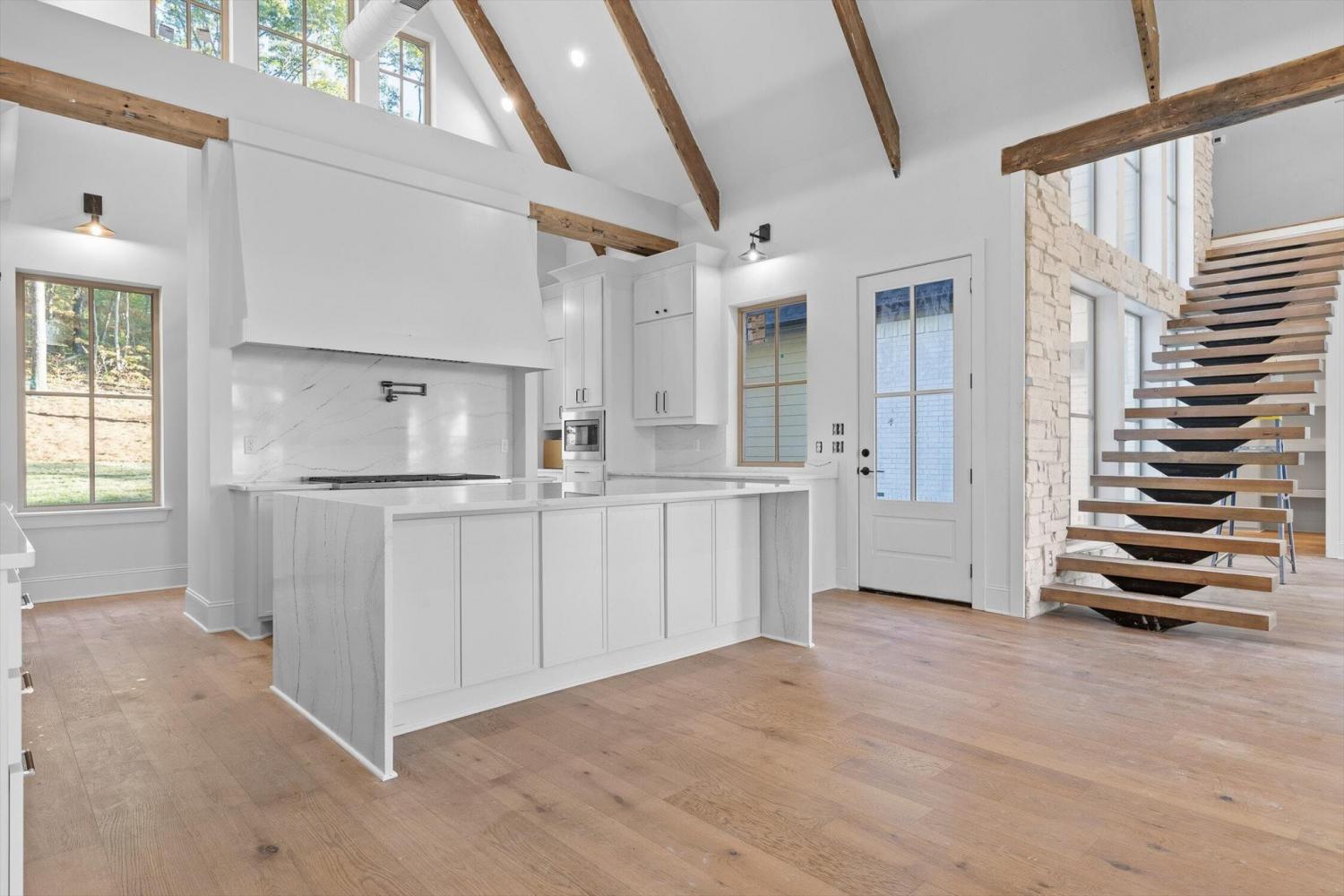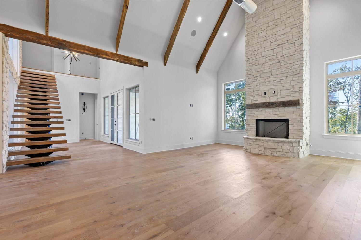Welcome to your modern mountain dream home crafted by Deep South Custom Homes in the prestigious gated community of Flipper Bend on Signal Mountain, TN. Nestled on a corner lot right across from the brow views of Chattanooga's verdant valley, this 4-bedroom, 3.5-bathroom luxury home offers unparalleled craftsmanship and contemporary elegance. Step up the grand front path and onto the inviting stone front porch and step through the glassed entry into a roomy foyer with a floating staircase allowing amazing views out the windows on each side of this glass box masterpiece. To the left, discover the heart of the home - a spacious kitchen and living area flanking the central dining space. Accentuating the living space are the vaulted ceilings with exposed antique rafters and other antique beam accents lending old world charm as well as a stone fireplace extending to the center of the vault adding texture and warmth. The living room showcases the cozy gas fireplace flanked by windows for magnificent views and convenient access to the screened, side porch with more mountain views, a fireplace with TV hookups above, and an attached, covered grilling porch with a built-in grill.The kitchen features site-built, custom cabinetry, quartz counters and back splashes, a 48'' gas range with a copper venthood, a large island with seating, a 60'' refrigerator/freezer, and a scullery. Returning through the foyer, to explore the other half of the house, don't miss the back patio in a quaint courtyard with space for a fire pit with a fire ring or a water feature to create a serene outdoor oasis. Through the foyer on the right of the home is the rear entry hall leading to a three car garage on the back of the home. The rear entry hall is well appointed with custom storage and a powder room. On the front right of the home you will find the luxurious master suite with views towards the brow.
