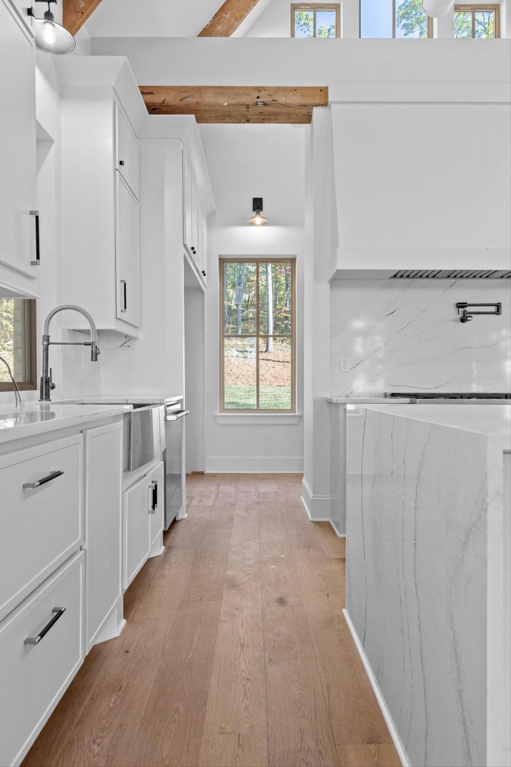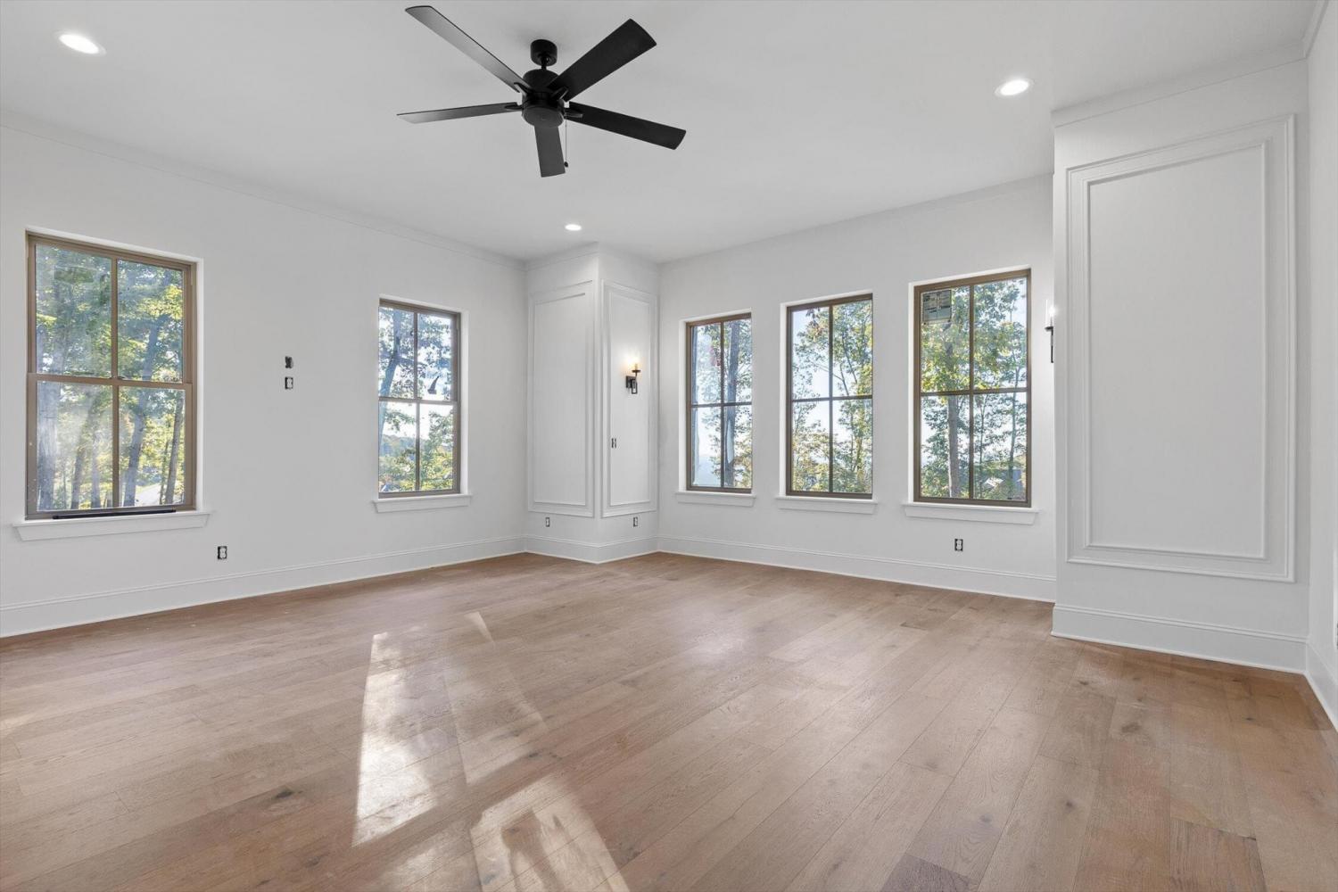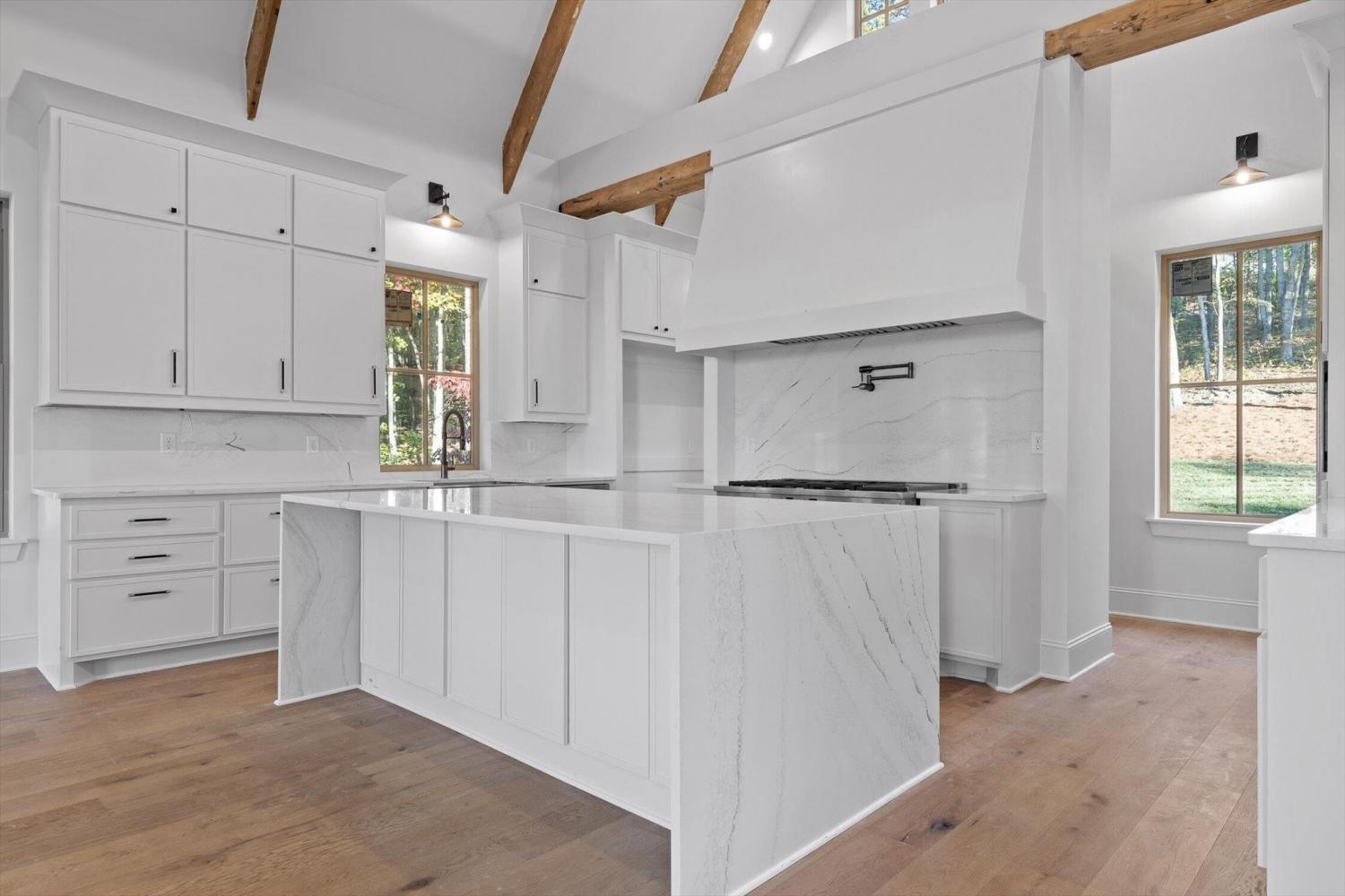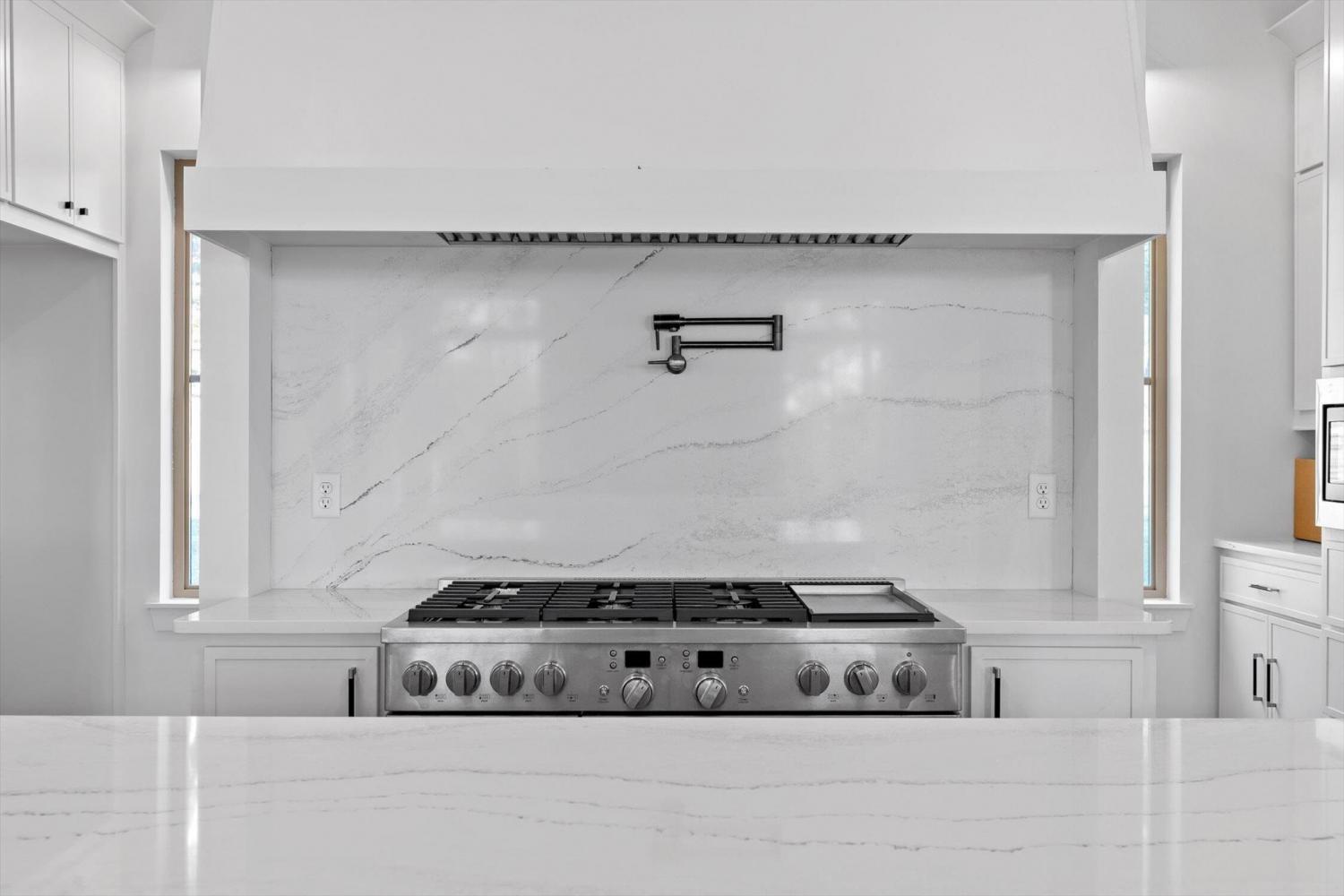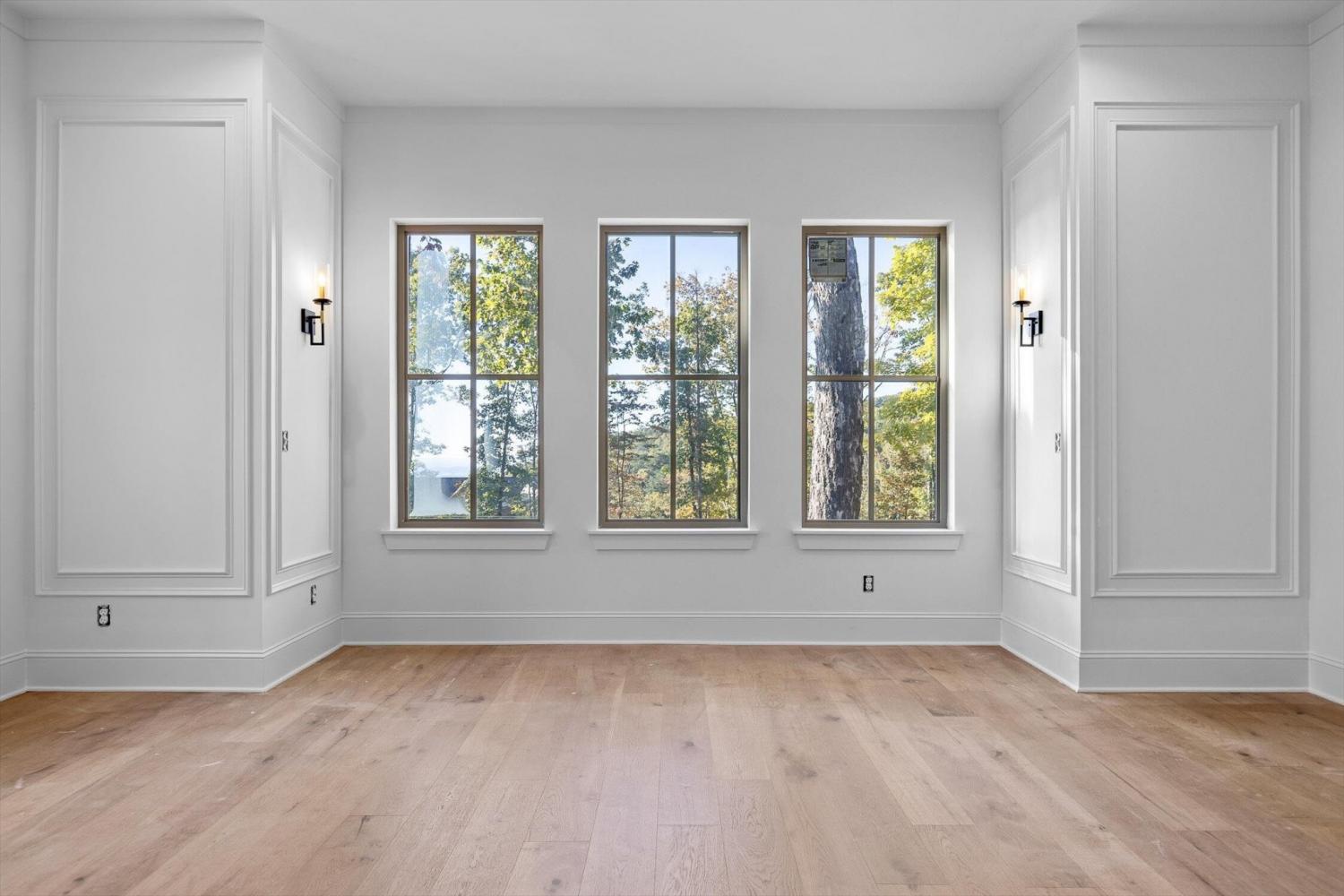 Welcome to your modern mountain dream home crafted by Deep South Custom Homes in the prestigious gated community of Flipper Bend on Signal Mountain, TN. Nestled on a corner lot right across from the brow views of Chattanooga's verdant valley, this 4-bedroom, 3.5-bathroom luxury home offers unparalleled craftsmanship and contemporary elegance. Step up the grand front path and onto the inviting stone front porch and step through the glassed entry into a roomy foyer with a floating staircase allowing amazing views out the windows on each side of this glass box masterpiece. To the left, discover the heart of the home - a spacious kitchen and living area flanking the central dining space. Accentuating the living space are the vaulted ceilings with exposed antique rafters and other antique beam accents lending old world charm as well as a stone fireplace extending to the center of the vault adding texture and warmth. The living room showcases the cozy gas fireplace flanked by windows for magnificent views and convenient access to the screened, side porch with more mountain views, a fireplace with TV hookups above, and an attached, covered grilling porch with a built-in grill.The kitchen features site-built, custom cabinetry, quartz counters and back splashes, a 48'' gas range with a copper venthood, a large island with seating, a 60'' refrigerator/freezer, and a scullery. Returning through the foyer, to explore the other half of the house, don't miss the back patio in a quaint courtyard with space for a fire pit with a fire ring or a water feature to create a serene outdoor oasis. Through the foyer on the right of the home is the rear entry hall leading to a three car garage on the back of the home. The rear entry hall is well appointed with custom storage and a powder room. On the front right of the home you will find the luxurious master suite with views towards the brow.