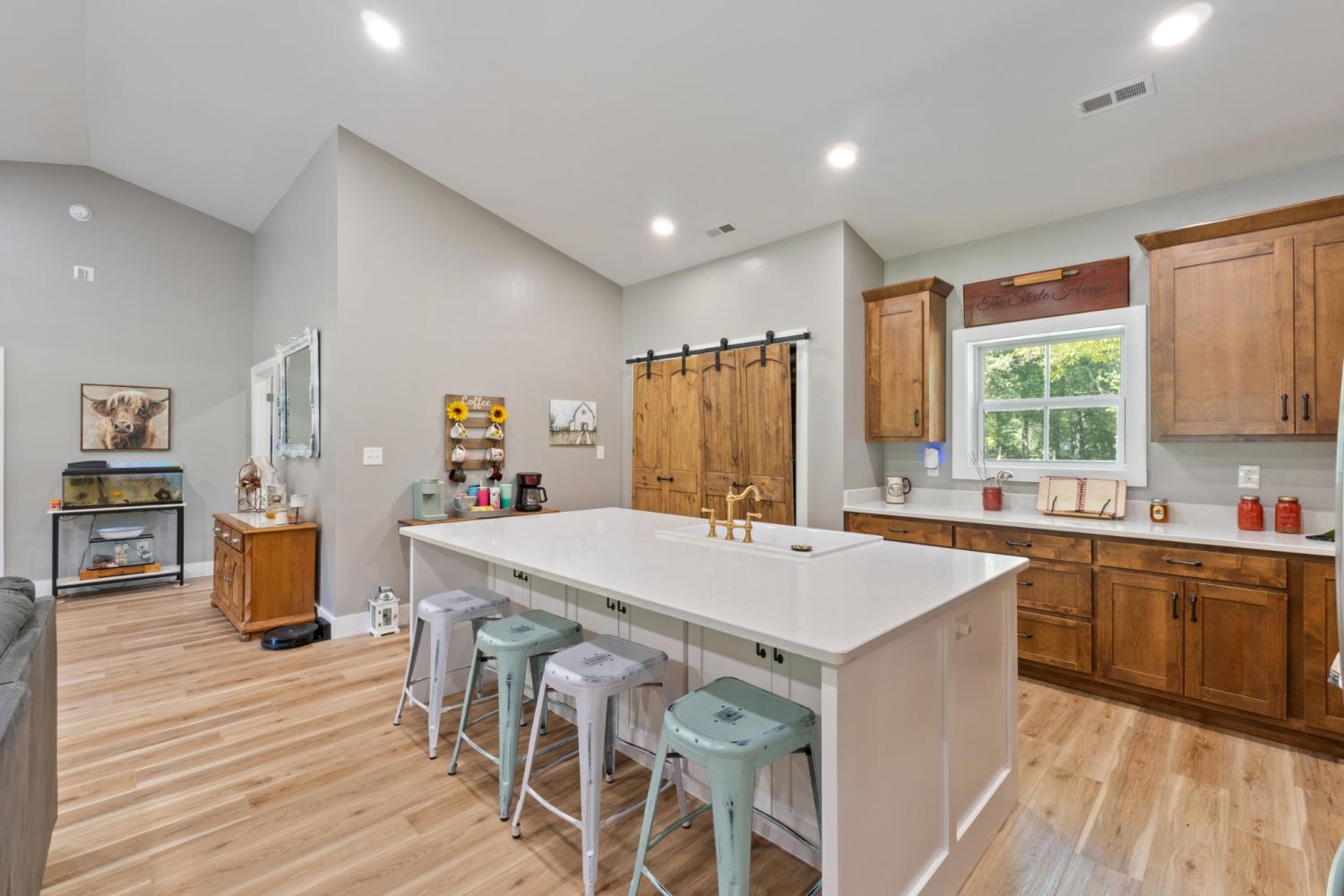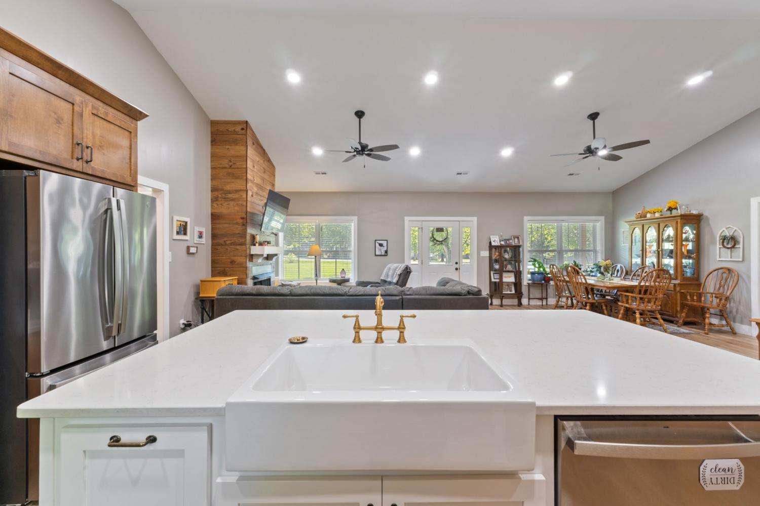 Escape to peace and privacy of the countryside with this beautifully designed hobby farm, fenced for your animals and complete with a barn and a pond. Whether you dream of raising livestock, growing a garden, or simply enjoying wide-open spaces, this property offers it all. The custom-built home, only 2 years old, blends modern comforts with farmhouse charm. Step inside to find luxury vinyl flooring, vaulted ceilings, instantaneous water heater, and a warm fireplace that makes the open living space feel both spacious and inviting. The oversized kitchen island, pot filler, and stainless steel appliances create the perfect space for gathering, while the ceramic tiled showers add a touch of luxury in both bathrooms. A true bonus is the oversized laundry/mud room featuring a wash sink-ideal for canning, cleaning up after a day outdoors, or storing fresh vegtables from your garden. If you've been looking for a move-in-ready home that combines modern living with rural charm, this property is the perfect fit.