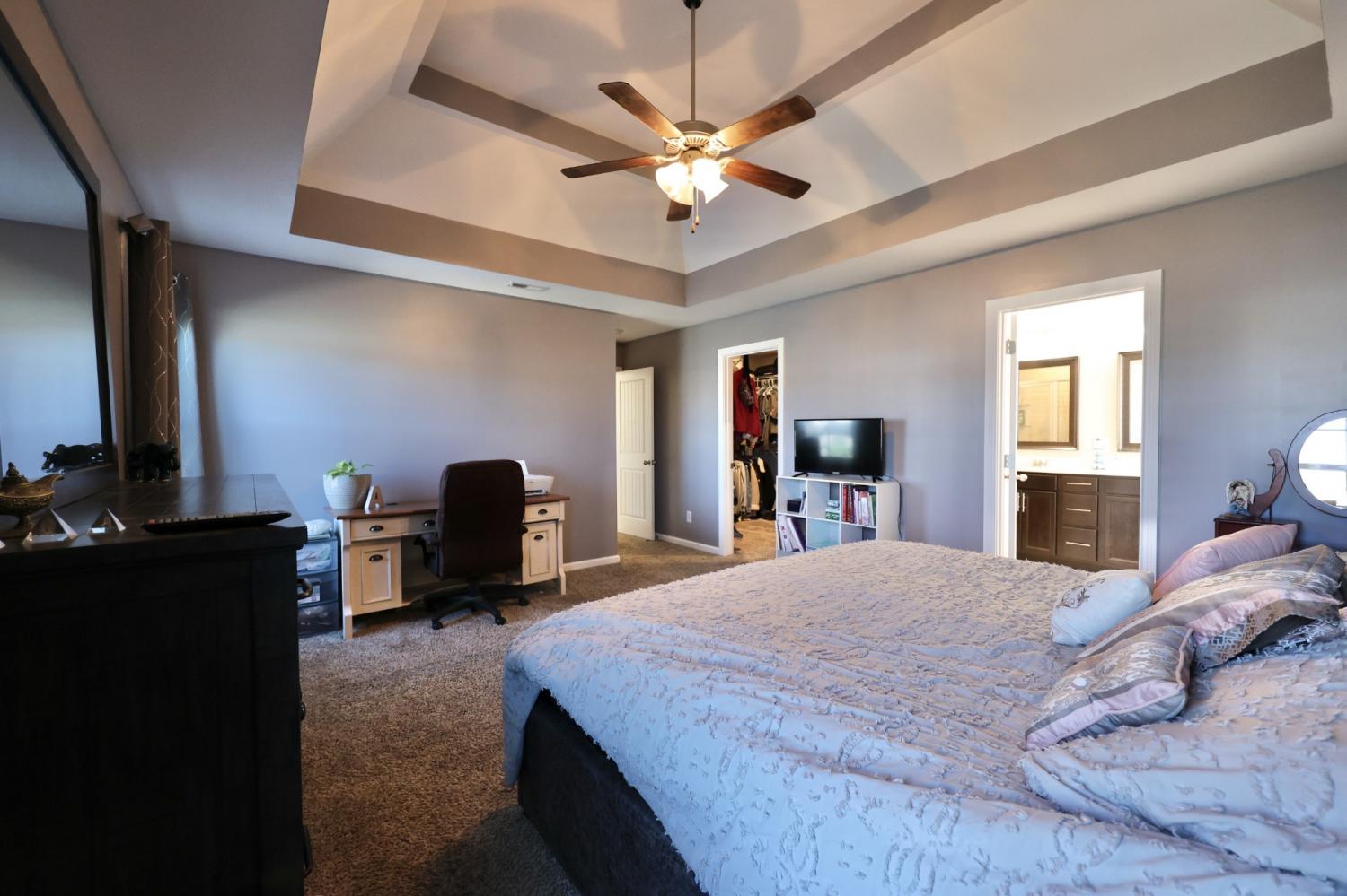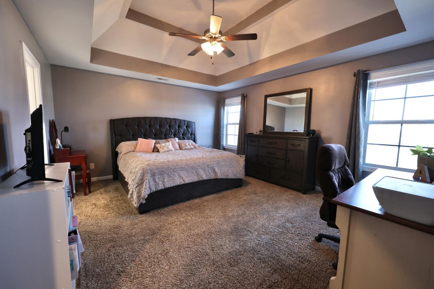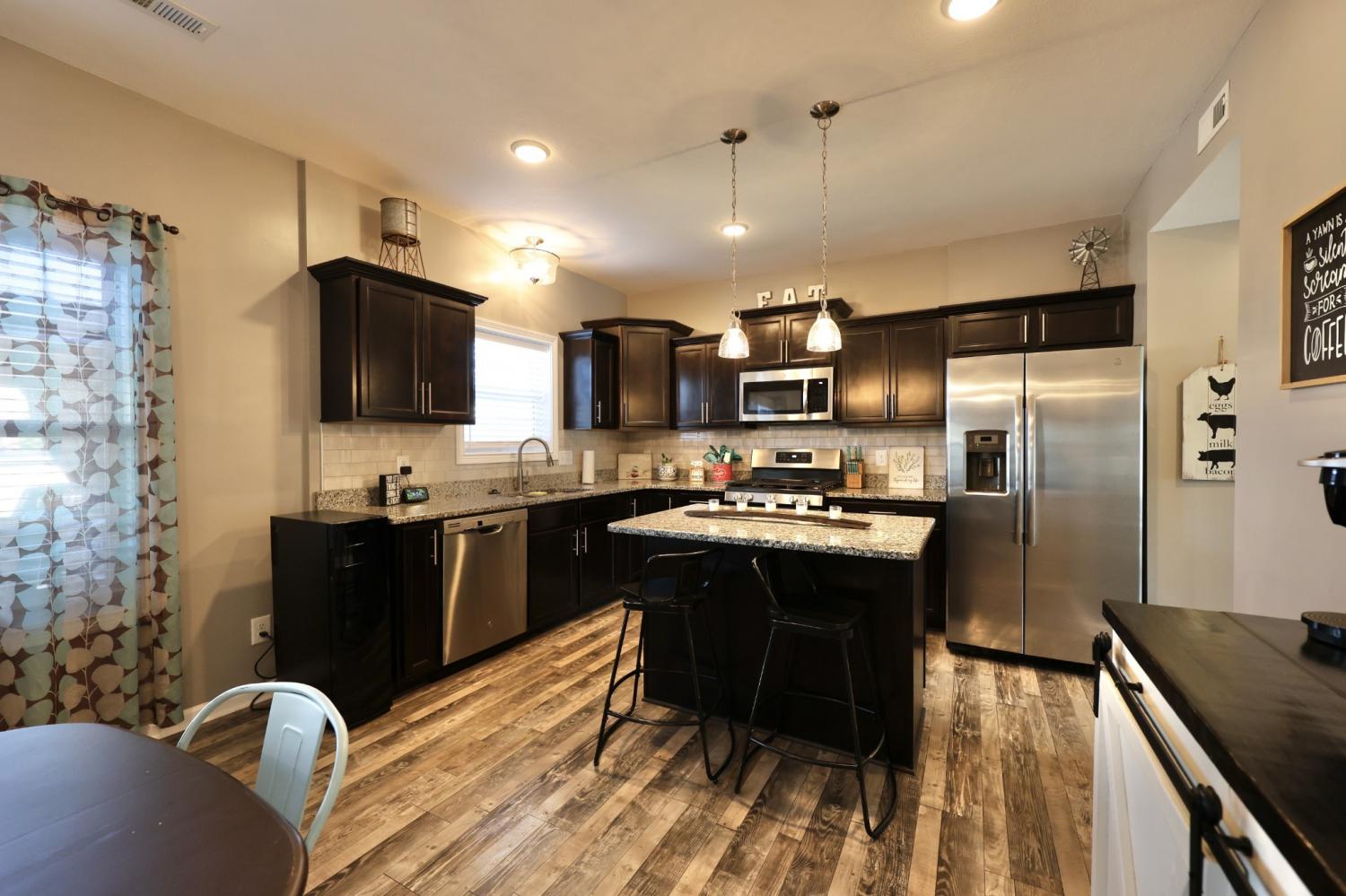 Like new 5 bedroom with Covered patio, paver patio and fire pit all inside the privacy fenced backyard. Family dinners in the formal dining room, breakfast at the kitchen table overlooking the living room. Gas stove for precision cooking. Huge primary bedroom with vaulted trey ceilings, recent update to first floor flooring, spacious 5th bedroom has plenty of room to be used as a rec room. Garage already set up with loads of shelving too.
