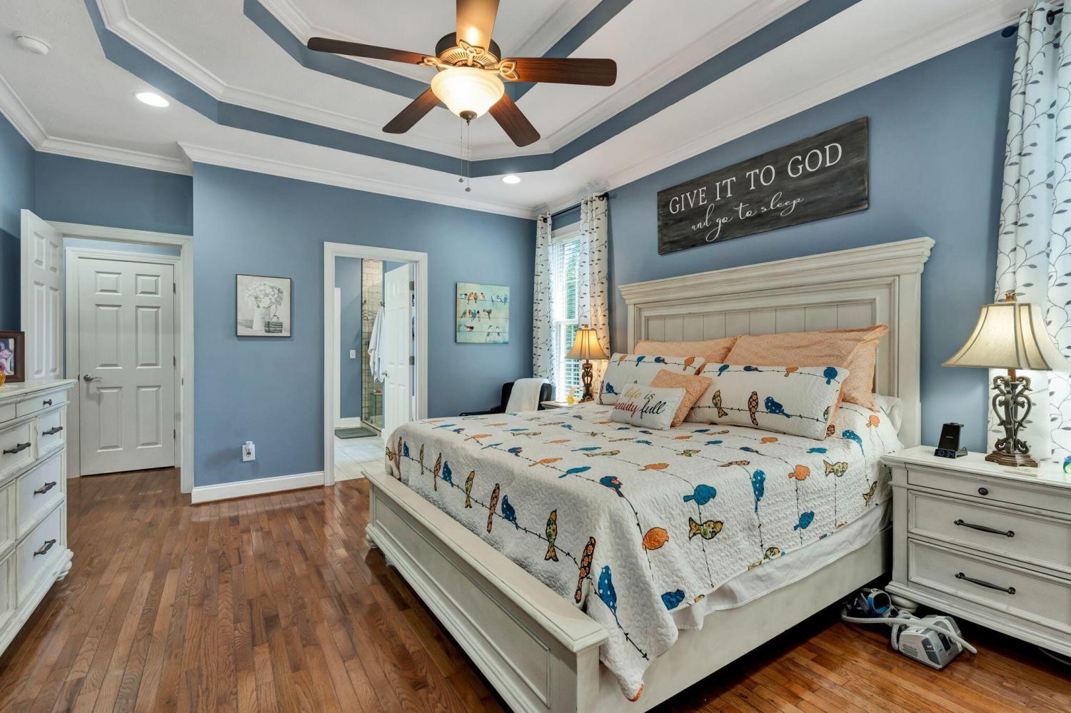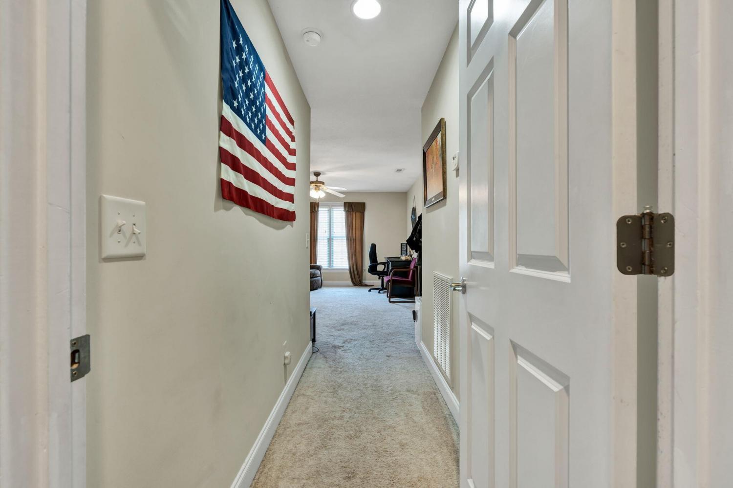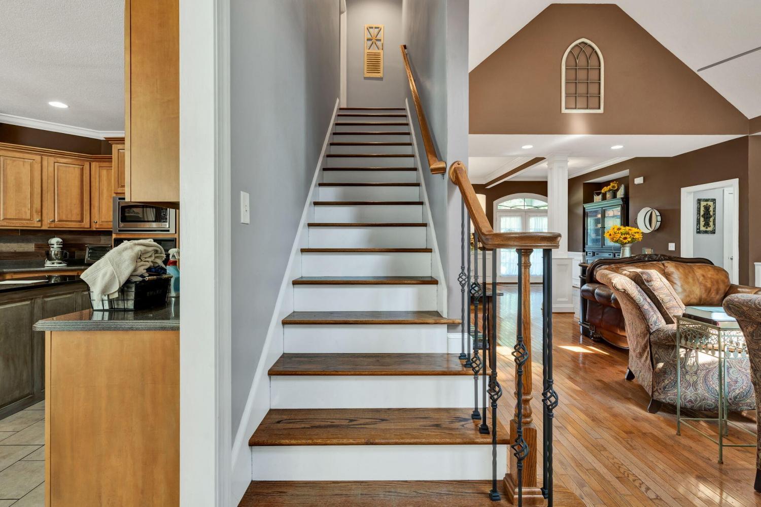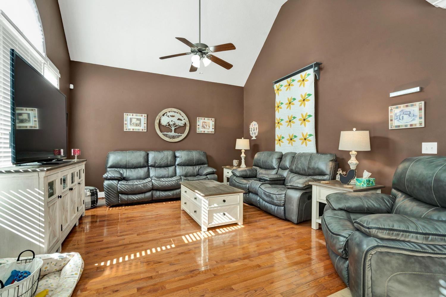 This exceptional residence showcases sophisticated living in the prestigious Covenant Hills Subdivision. With 3,467 square feet of thoughtfully designed space, the home offers 3 bedrooms, 3.5 bathrooms, and a versatile flex area currently used as a 4th bedroom, making it ideal for today's lifestyle needs. The heart of the home is the impressive great room, highlighted by cathedral ceilings, crown molding, and a cozy gas fireplace framed by custom built-in bookcases. Anderson windows fill the interiors with natural light, while the open floor plan creates seamless flow between the living spaces. The gourmet kitchen boasts granite and Corian countertops, custom cabinetry, a breakfast bar, and a spacious pantry—perfect for everyday meals and entertaining alike. A formal dining room adds to the home's appeal, offering an elegant setting for special gatherings. The main-level primary suite provides a private retreat with tray ceilings, a large walk-in closet, and a spa-like bathroom featuring a soaking tub, double vanity, and custom tile shower. Two additional bedrooms on the main floor add comfort and flexibility. Upstairs, a bonus room and sitting area provide endless options for recreation, hobbies, or a home office. Outdoor living shines with a screened rear porch and expansive deck designed for entertaining or quiet relaxation. A detached 24x24 garage with fully floored upstairs provides exceptional storage or workshop potential. Additional features include an alarm system, exterior security cameras, and infrastructure in place for a sprinkler system (not currently connected). Located in one of the area's most desirable neighborhoods, this meticulously maintained home combines quality construction, elegant finishes, and functional design. Covenant Hills offers an established community atmosphere with convenient access to local amenities, making this property an outstanding opportunity with fiber optic coming soon.