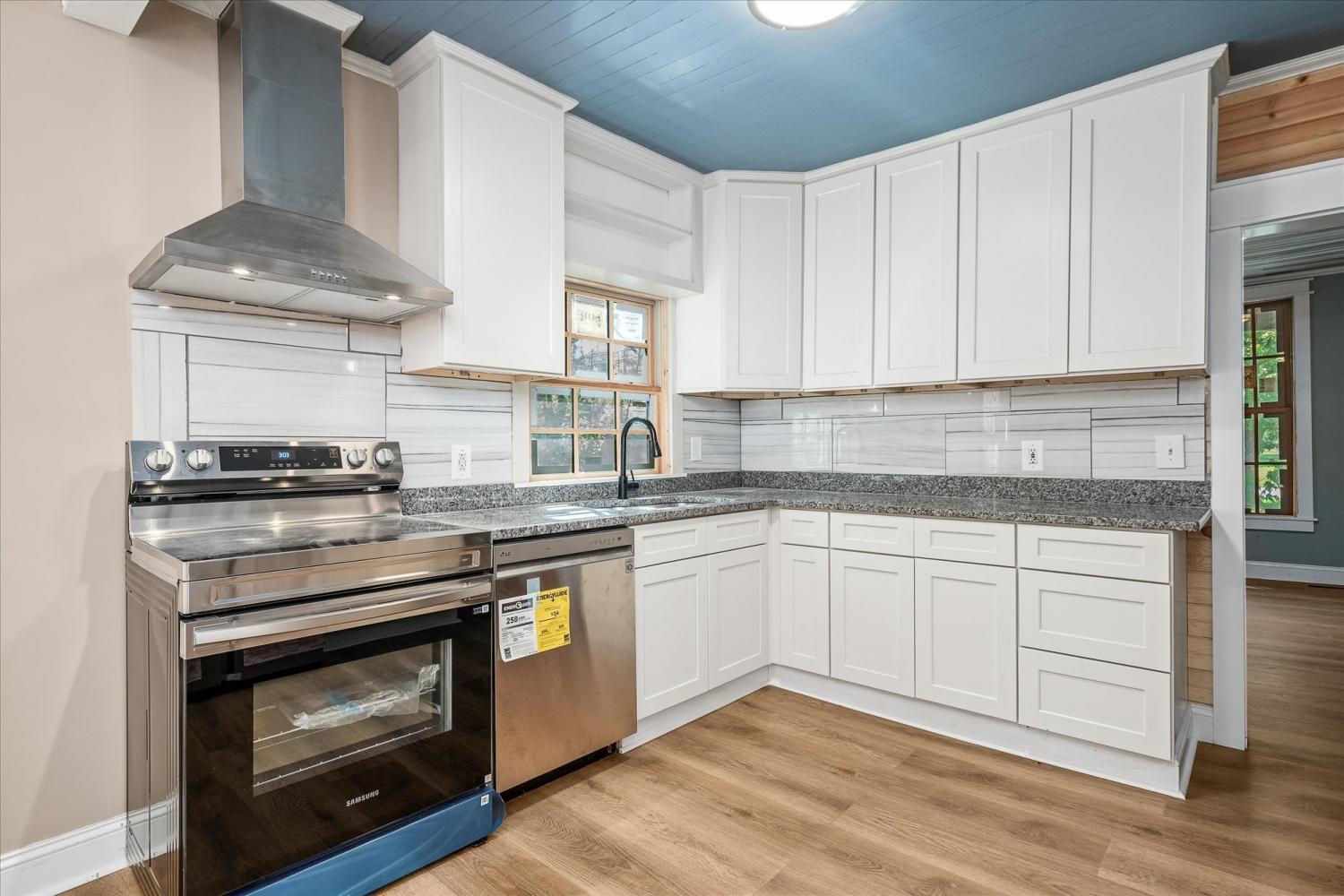 Old transformed into new on almost 2 acres! This renovated charmer is minutes to downtown Algood - Hwy 111 & offers everything brand new inside + out! You have a spacious covered front porch w/ a fresh concrete driveway. There is also new siding, windows, HVAC system, insulation, and roof etc. All the utilities are city & you also have LVP throughout the home, living room offers original wood detailing & a stone fireplace feature. Off of the living room is the primary suite w/ a walk-in tile shower & a walk-in closet. Heading into your all white kitchen offers granite countertops, tongue & groove ceiling, & ss appliances. There is space for an island + dining area leading to your open back deck that also has covered decking. Off of the dining area is also another guest bedroom+ full bath with a tiled shower/tub. Off of the garage is your laundry + mud room and it leads upstairs to another bedroom or bonus area & it could be a large suite room for an office, guests, or the kids! 13 month home warranty for peace of mind.