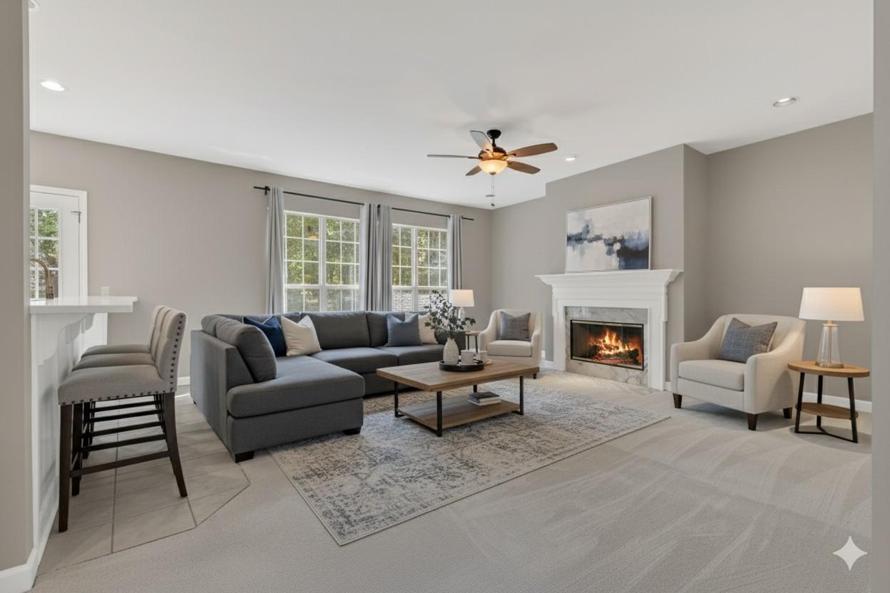 GREAT NEW PRICE. This "Gem" is for you. Move right in. Beautiful, spacious home tucked away on quiet cul-de-sac in highly desired Bellevue neighborhood. Level treed lot backing to farm. Fabulous amenities include- pool, tennis, pickleball, volleyball, playground, walking trails, and lake. Features include a gourmet kitchen with breakfast bar, double pantry, abundant cabinets and counter space. New stove, refrigerator, carpeting and paint. Special financing available. Formal living and dining rooms with bay windows and lots of natural light. Spacious primary suite and huge second floor bonus with walk in attic. Select photos contain virtual staging; furnishings are digitally added. Separate laundry room. Two staircases