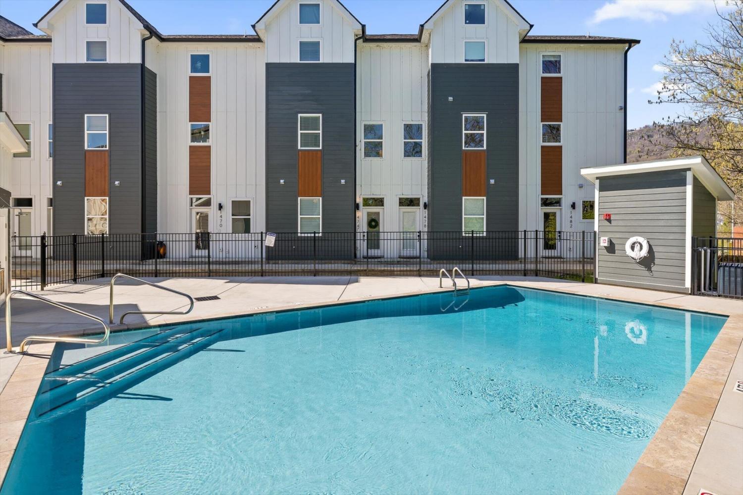 Welcome to 1450 Stockyard Place, an end-unit townhome positioned at the foot of Lookout Mountain with mountain views from all three levels. Located in the South Broad District and just seconds from the St. Elmo Riverwalk entrance, this property offers both convenience and lifestyle. Designed for flexibility, it is STVR-friendly, making it a great option as a primary residence, second home, or short-term rental investment. This three-story home includes 2 bedrooms and 2 bathrooms with an open-concept layout. Natural light fills the space, from the kitchen with stainless appliances and clean finishes to the living areas that open onto balconies with mountain views. The top floor is dedicated to the owner's suite, complete with an en-suite bath, walk-in closet, and private balcony access. Enjoy the community pool and easy access to downtown Chattanooga, restaurants, shops, and outdoor recreation by bike or on foot.