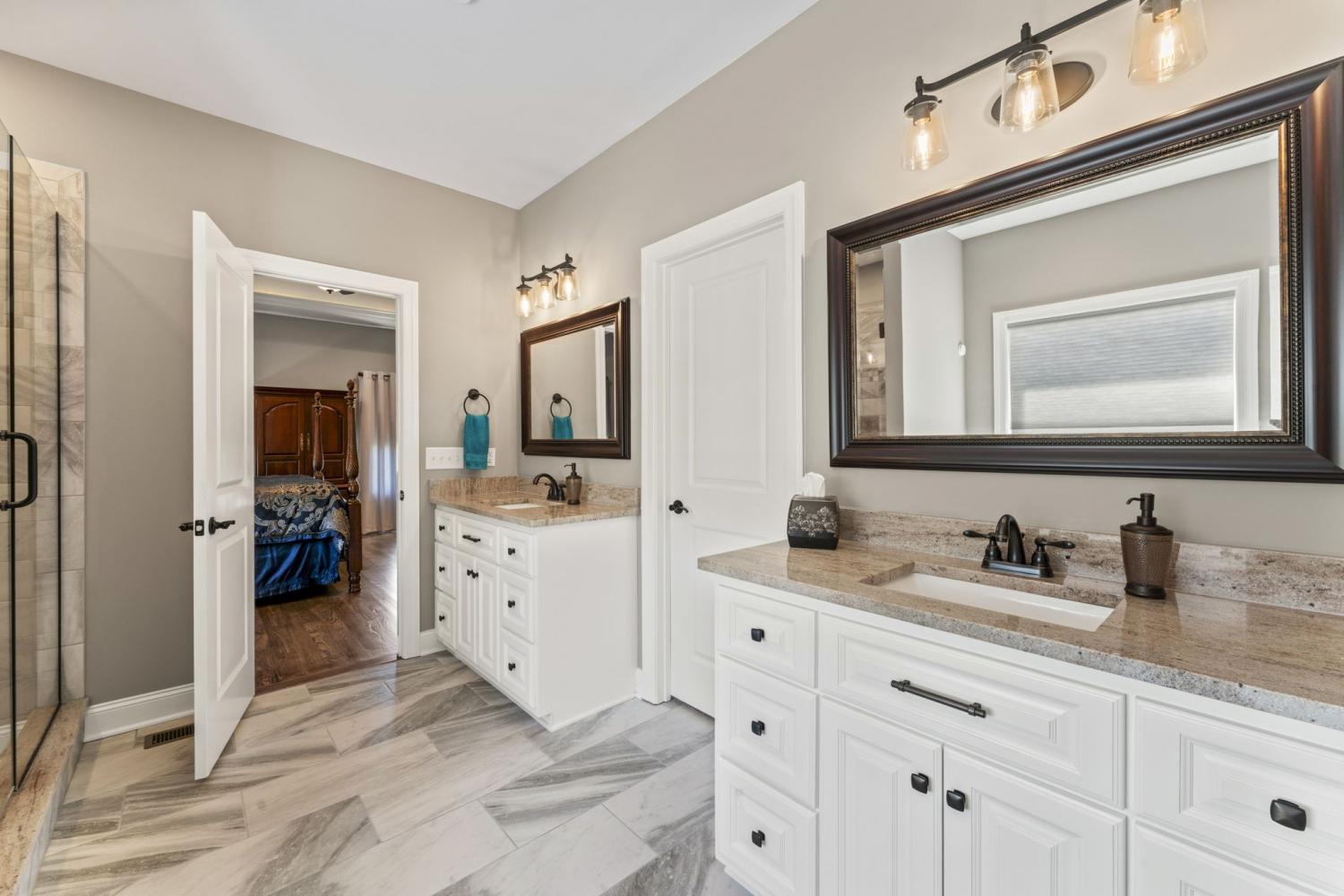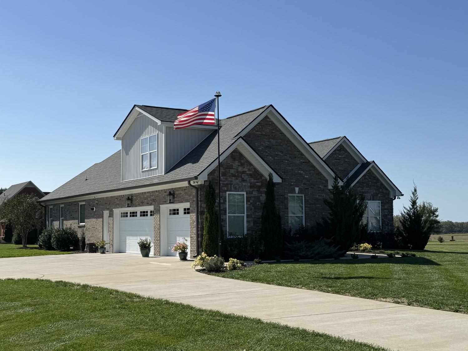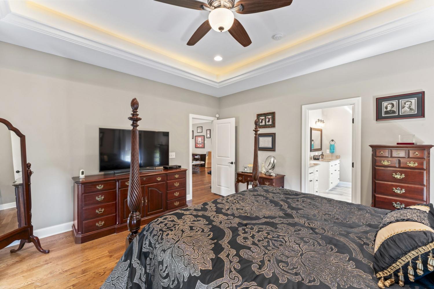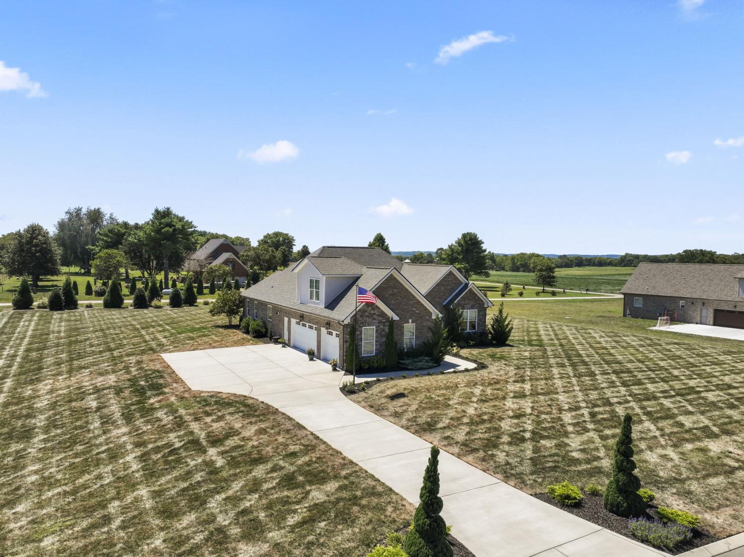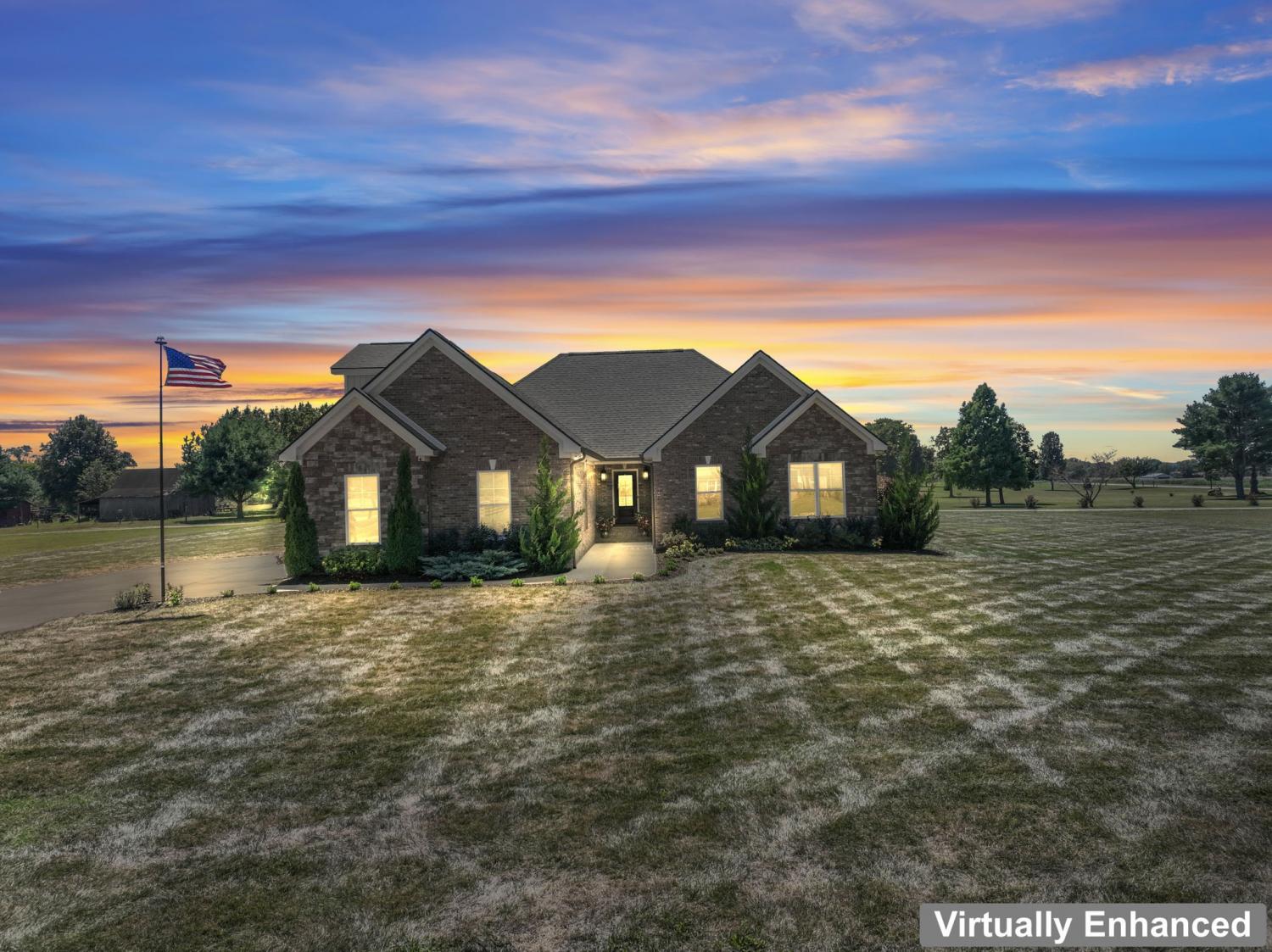 Welcome to this beautiful brick home situated on a spacious one-acre flat lot with mature landscaping and plenty of room to enjoy the outdoors.From the moment you arrive, the curb appeal and peaceful setting will impress. Inside, the home is filled with thoughtful upgrades and timeless design, including custom cabinetry, granite and quartz countertops, and a show-stopping stone hearth that anchors the living space. The main-level primary suite is a private retreat, complete with dual vanities, generous walk-in closet, a luxurious soaking tub, and a tiled walk-in shower. Upstairs, you'll find a private fourth bedroom featuring its own en-suite bath and a spacious walk-in closet—perfect for guests or a second suite. Step outside to enjoy the covered back patio, ideal for relaxing evenings or weekend entertaining. Whether you're enjoying the quiet of nature or hosting friends, this home offers the perfect blend of comfort and elegance. A rare find—don’t miss your chance to tour this exceptional property!