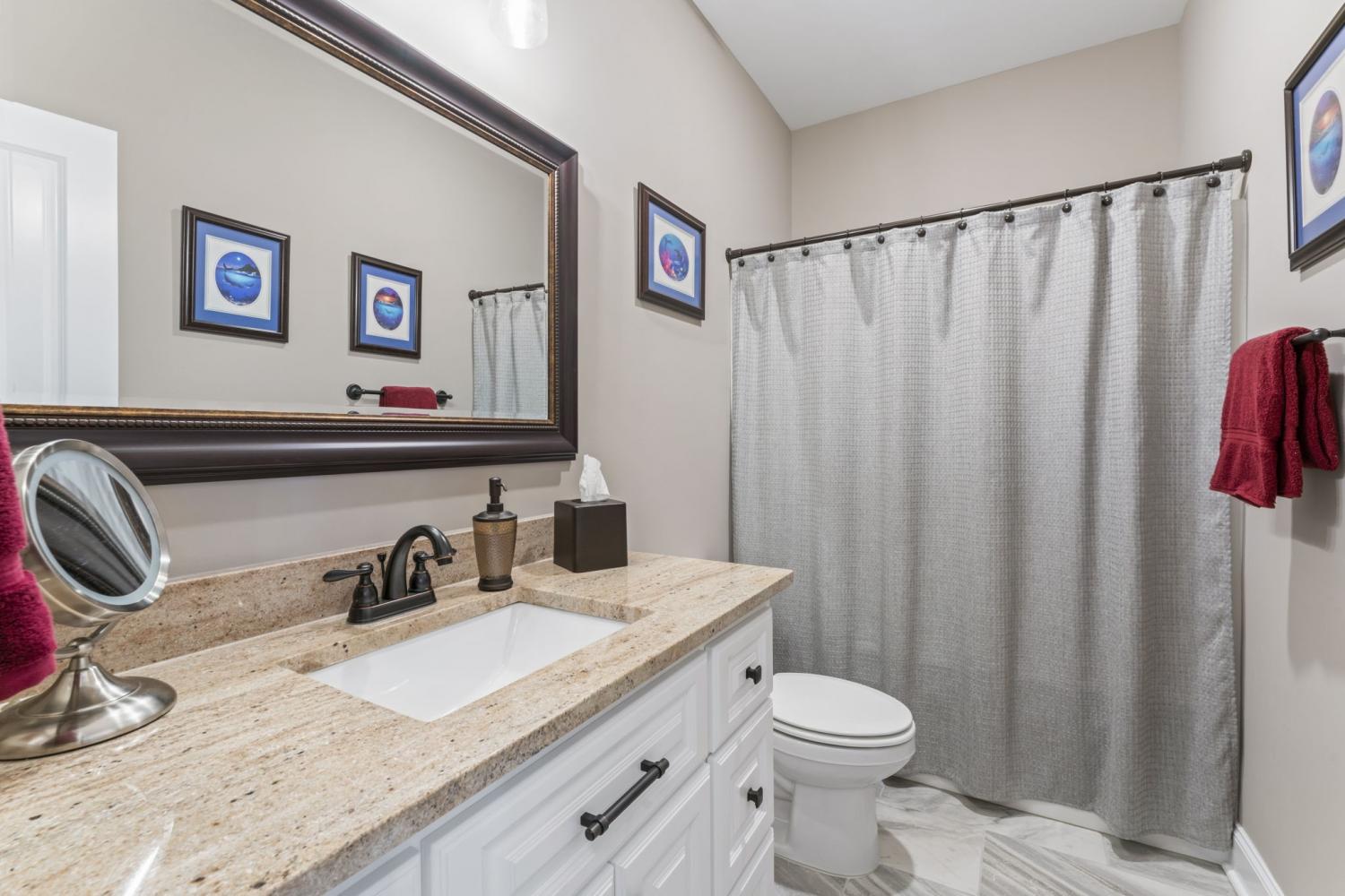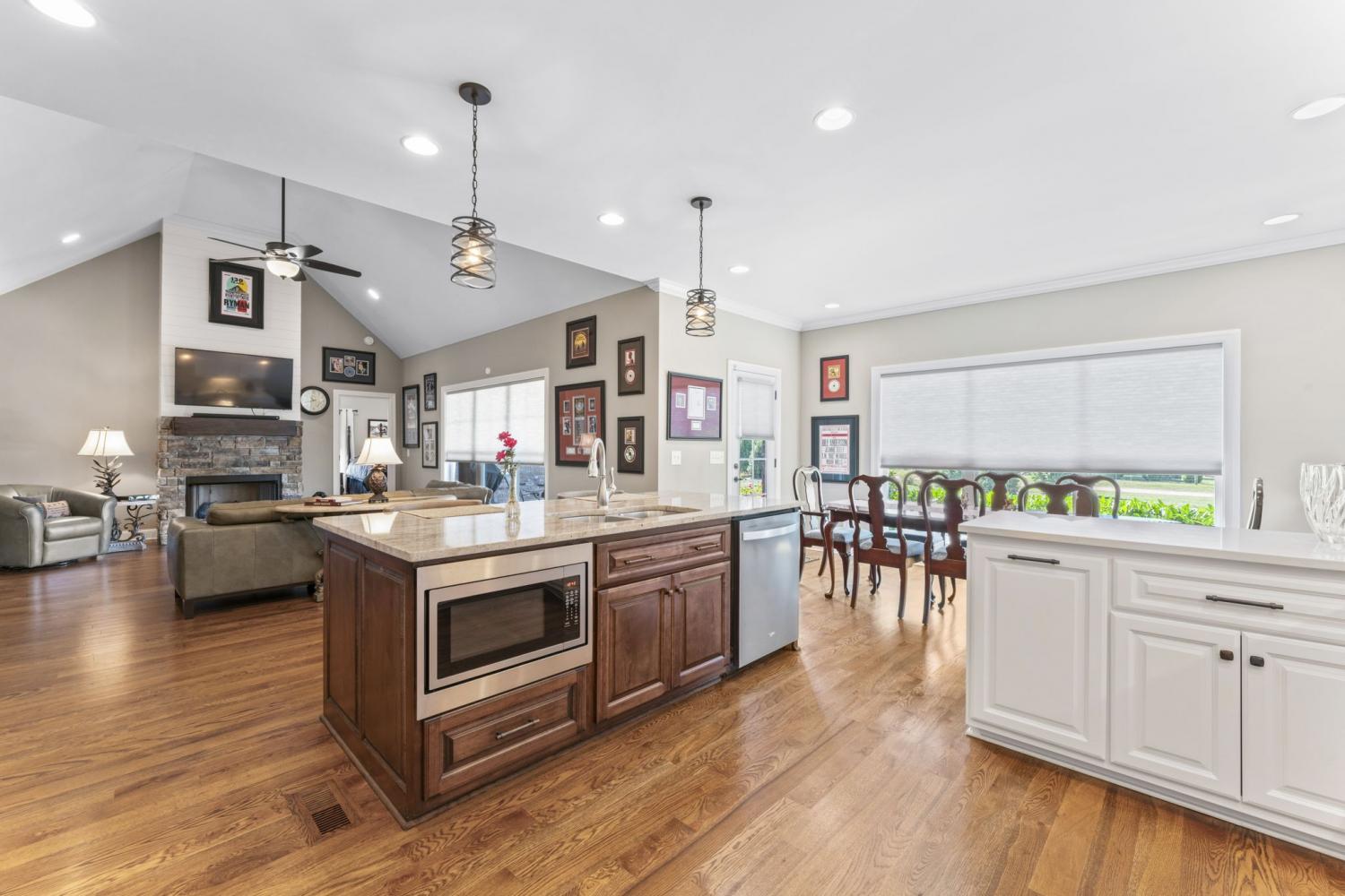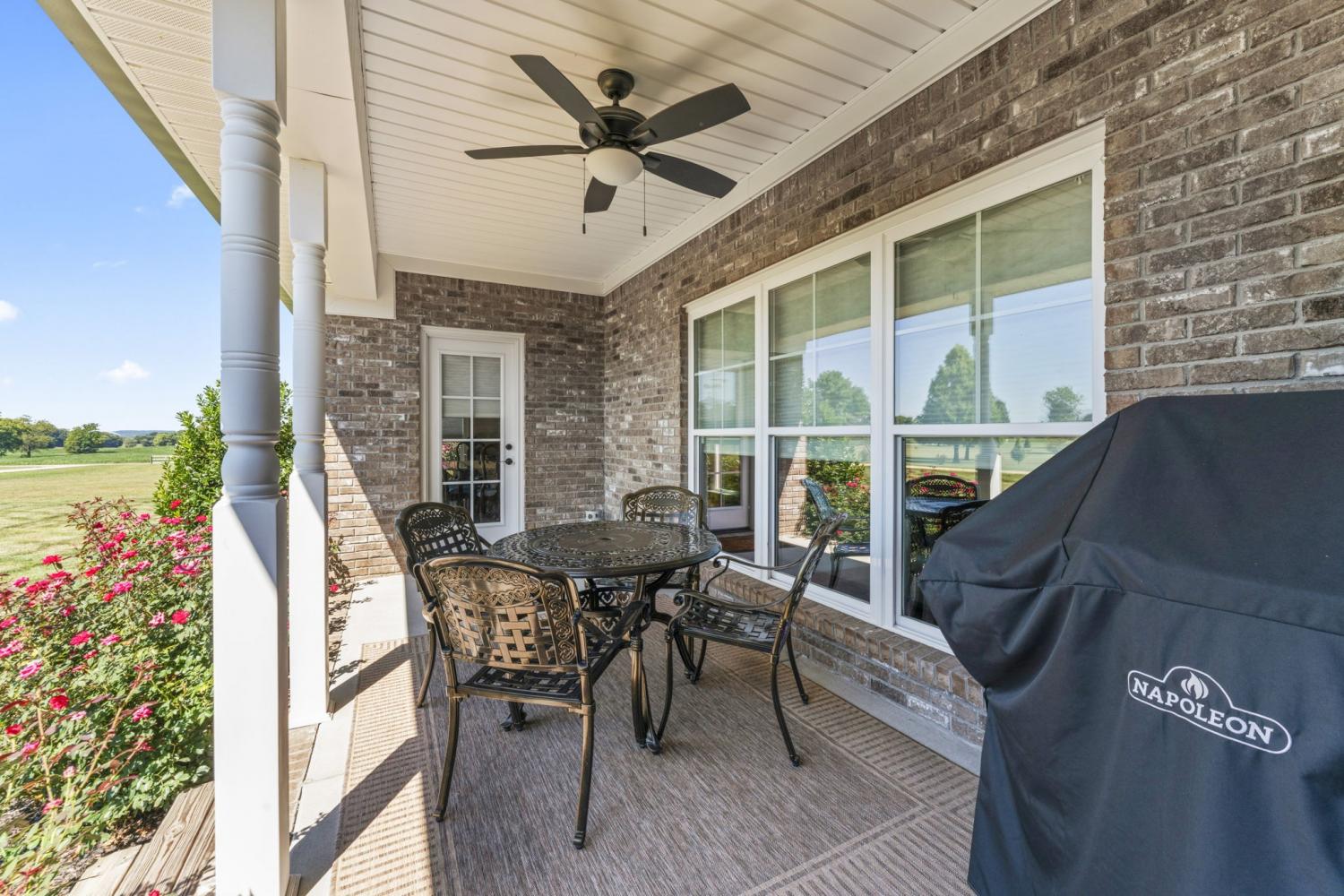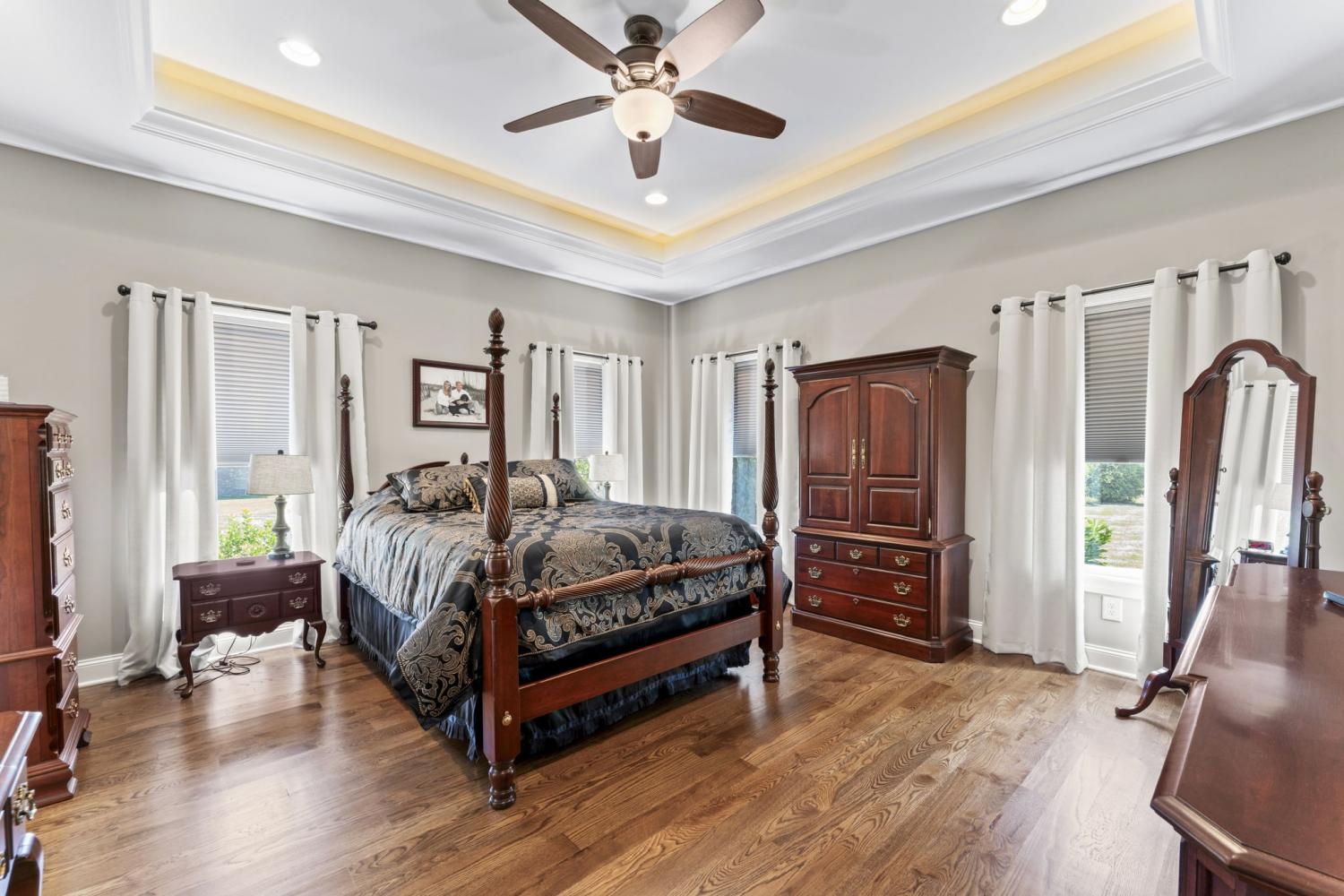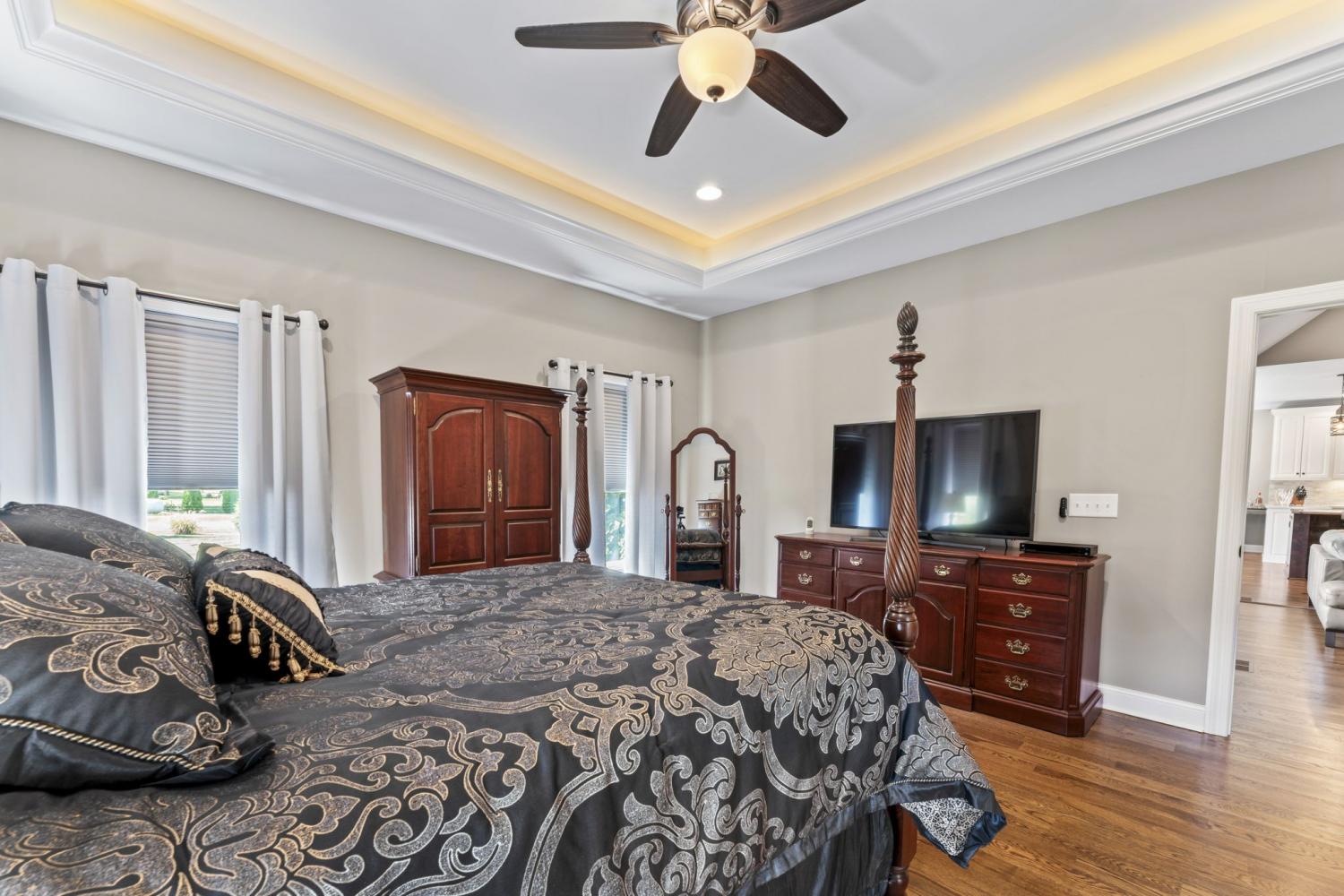 Welcome to this beautiful brick home situated on a spacious one-acre flat lot with mature landscaping and plenty of room to enjoy the outdoors.From the moment you arrive, the curb appeal and peaceful setting will impress. Inside, the home is filled with thoughtful upgrades and timeless design, including custom cabinetry, granite and quartz countertops, and a show-stopping stone hearth that anchors the living space. The main-level primary suite is a private retreat, complete with dual vanities, generous walk-in closet, a luxurious soaking tub, and a tiled walk-in shower. Upstairs, you'll find a private fourth bedroom featuring its own en-suite bath and a spacious walk-in closet—perfect for guests or a second suite. Step outside to enjoy the covered back patio, ideal for relaxing evenings or weekend entertaining. Whether you're enjoying the quiet of nature or hosting friends, this home offers the perfect blend of comfort and elegance. A rare find—don’t miss your chance to tour this exceptional property!