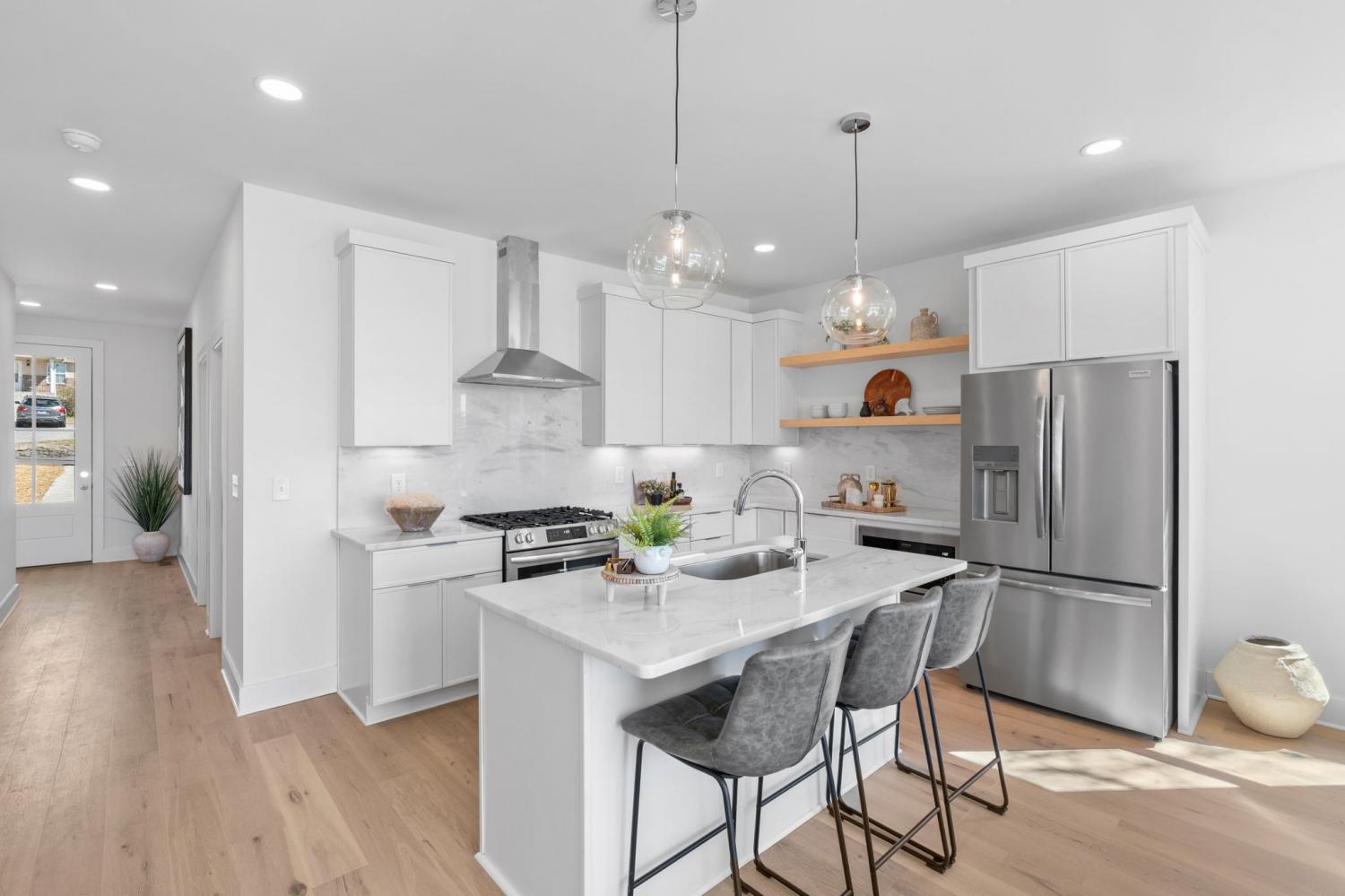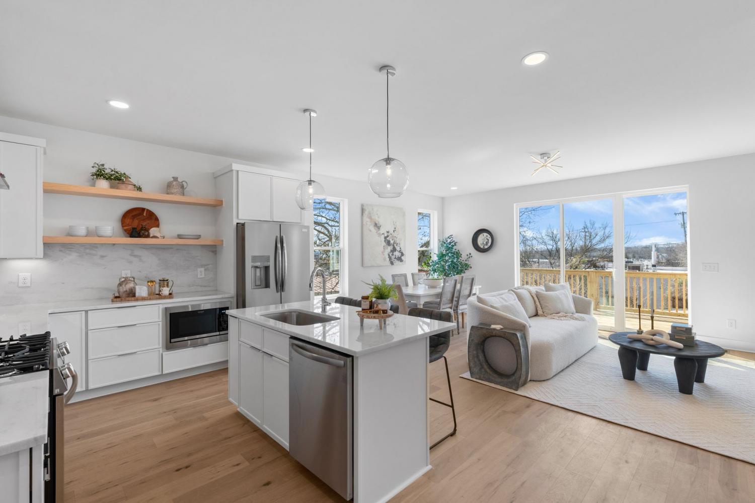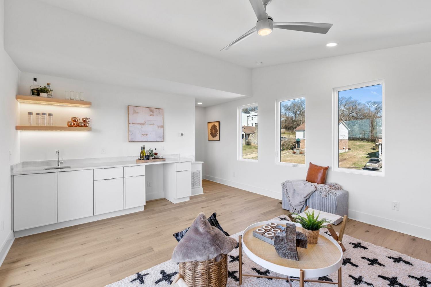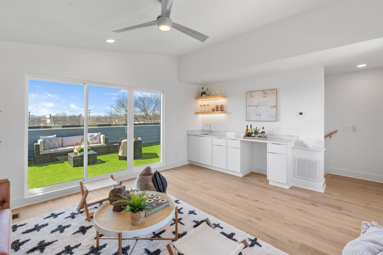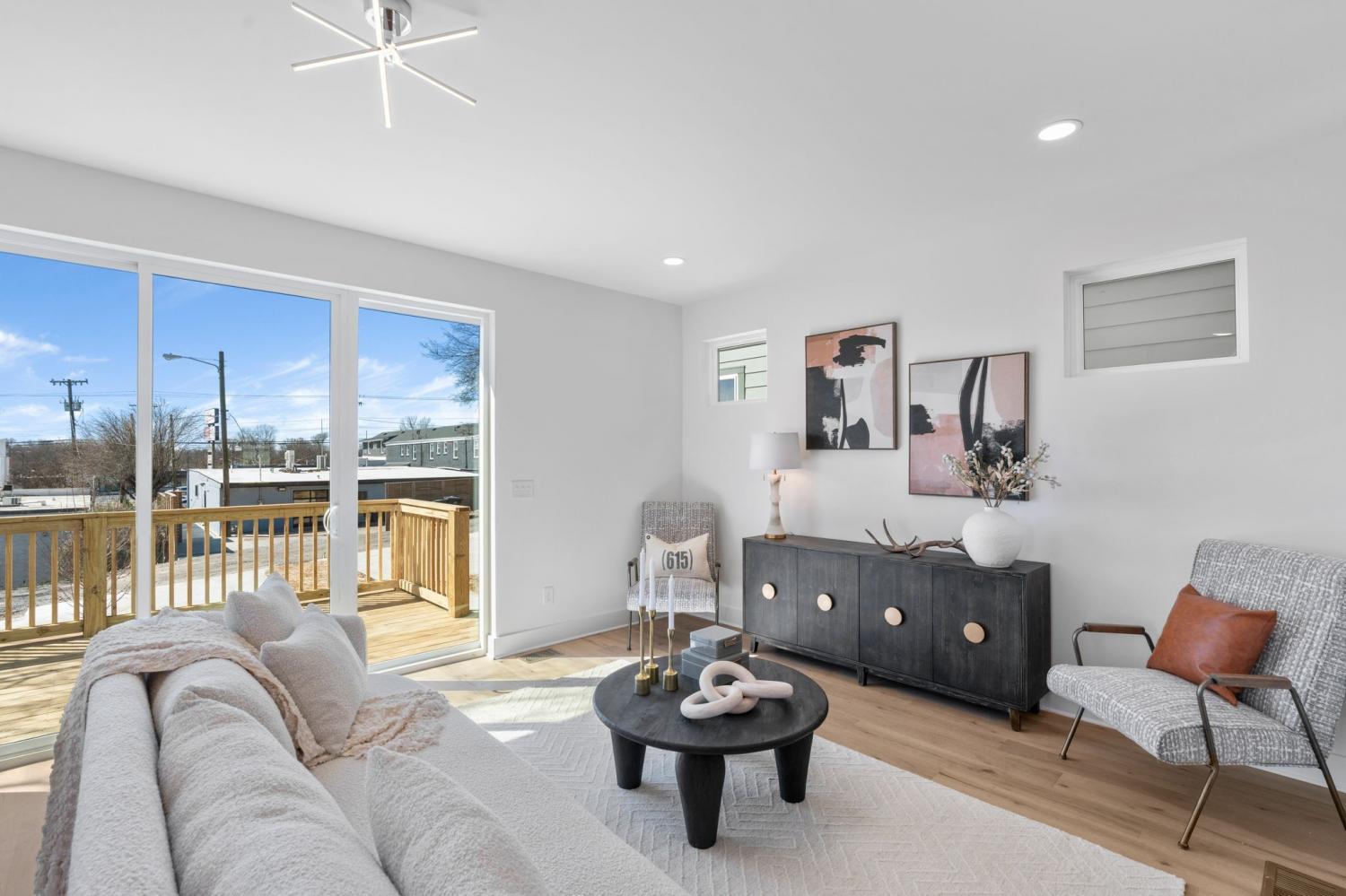 Experience elevated urban living at 3203A Resha Lane. This newly built three-story home offers 2,394 sq ft with hardwood floors throughout and an open main level filled with natural light. The kitchen features sleek cabinetry, stainless steel appliances, and quartz countertops that carry through the home’s modern design. The first floor includes a bedroom and full bath, ideal for guests or a private office. Upstairs, you’ll find two additional bedrooms and two full baths, including a primary suite with a walk-in closet and a spa-inspired bath with double vanity and a tiled walk-in shower. The third floor is dedicated to a spacious bonus room — perfect as a media space, home office, or gym. A turf-covered rooftop deck with skyline views of downtown creates a standout space for entertaining or relaxing. Located in North Nashville, this home is just minutes from Germantown, The Gulch, and downtown, placing some of the city’s best dining and coffee shops right at your fingertips — all with no HOA.
