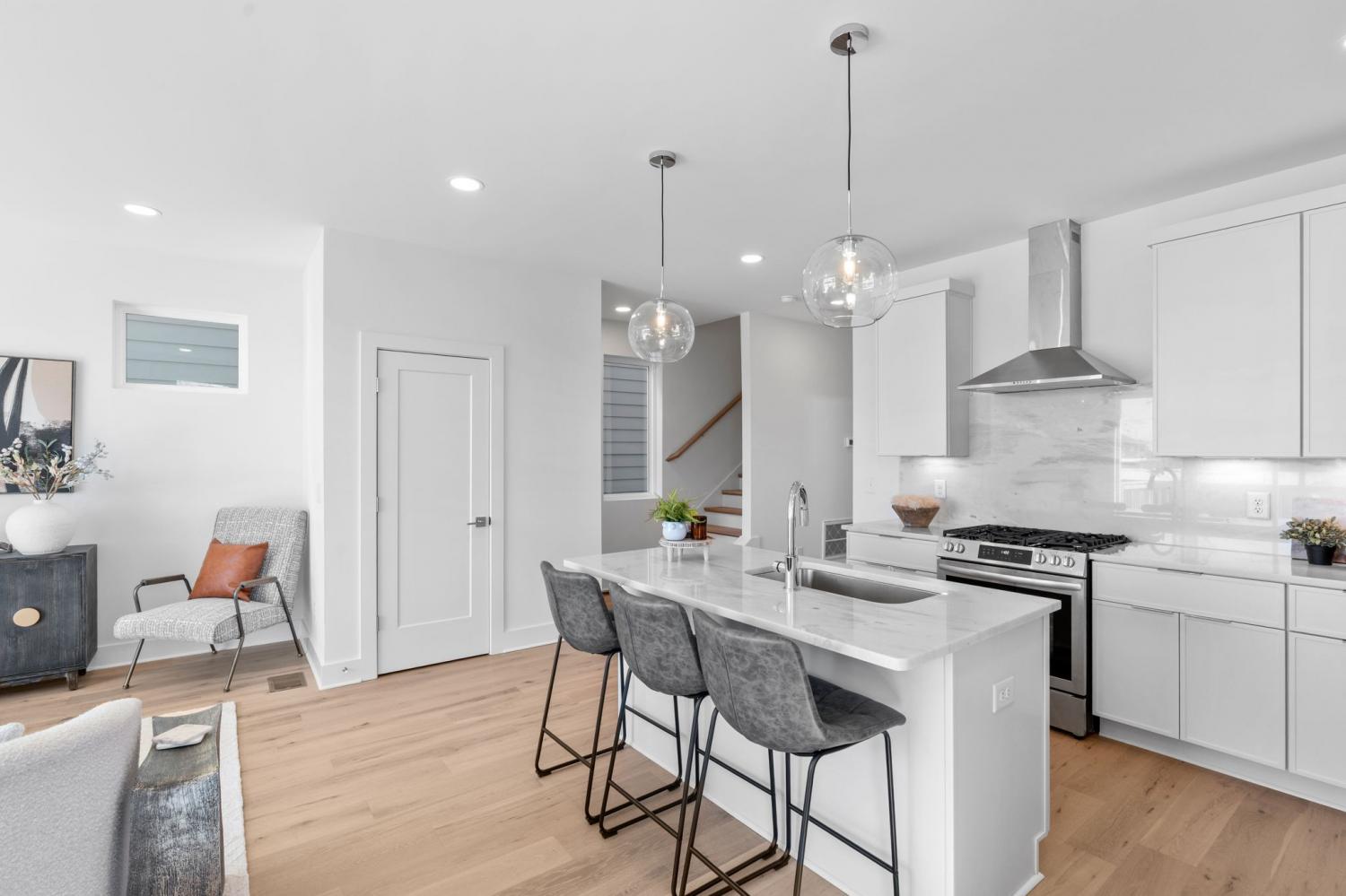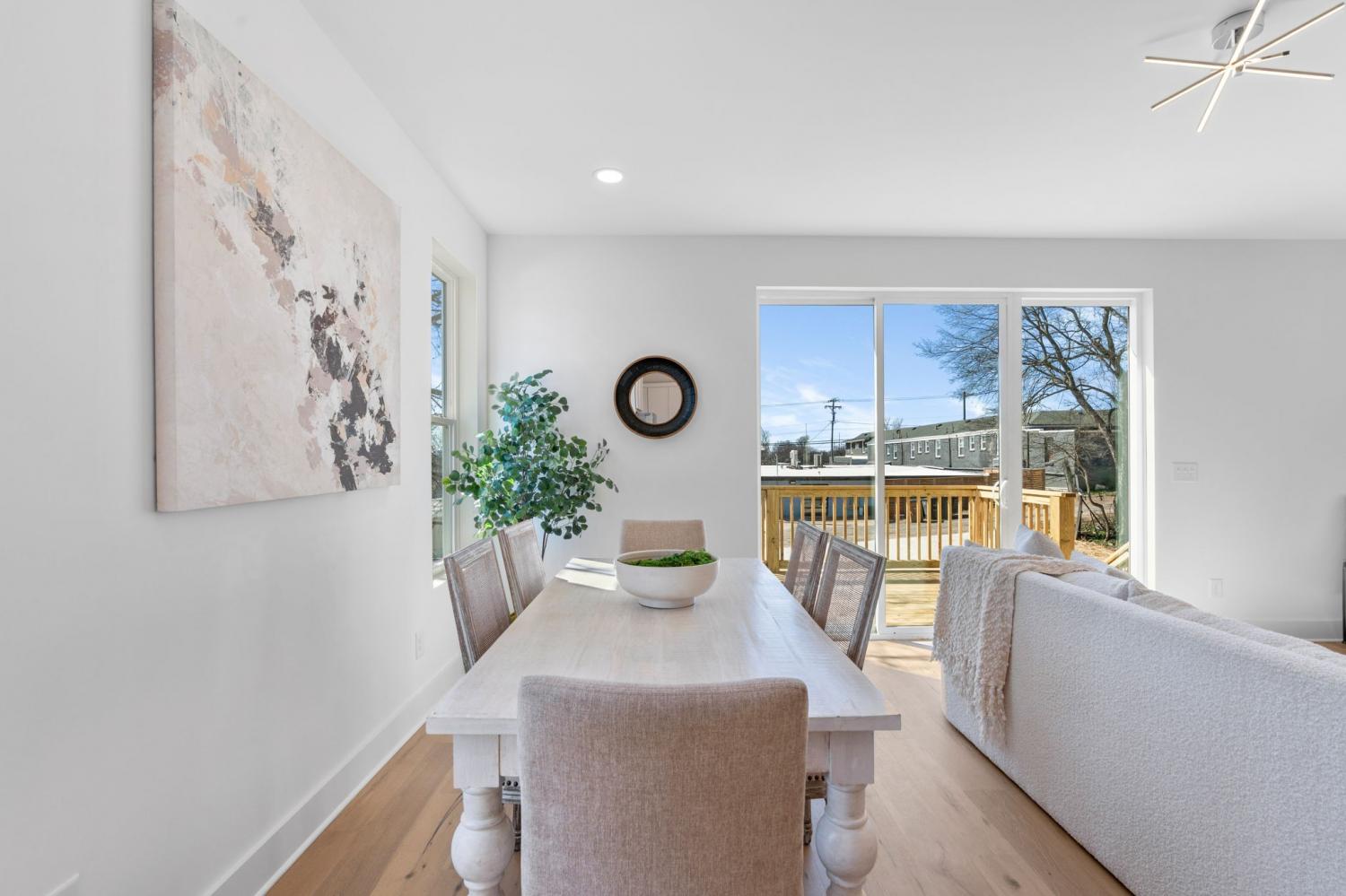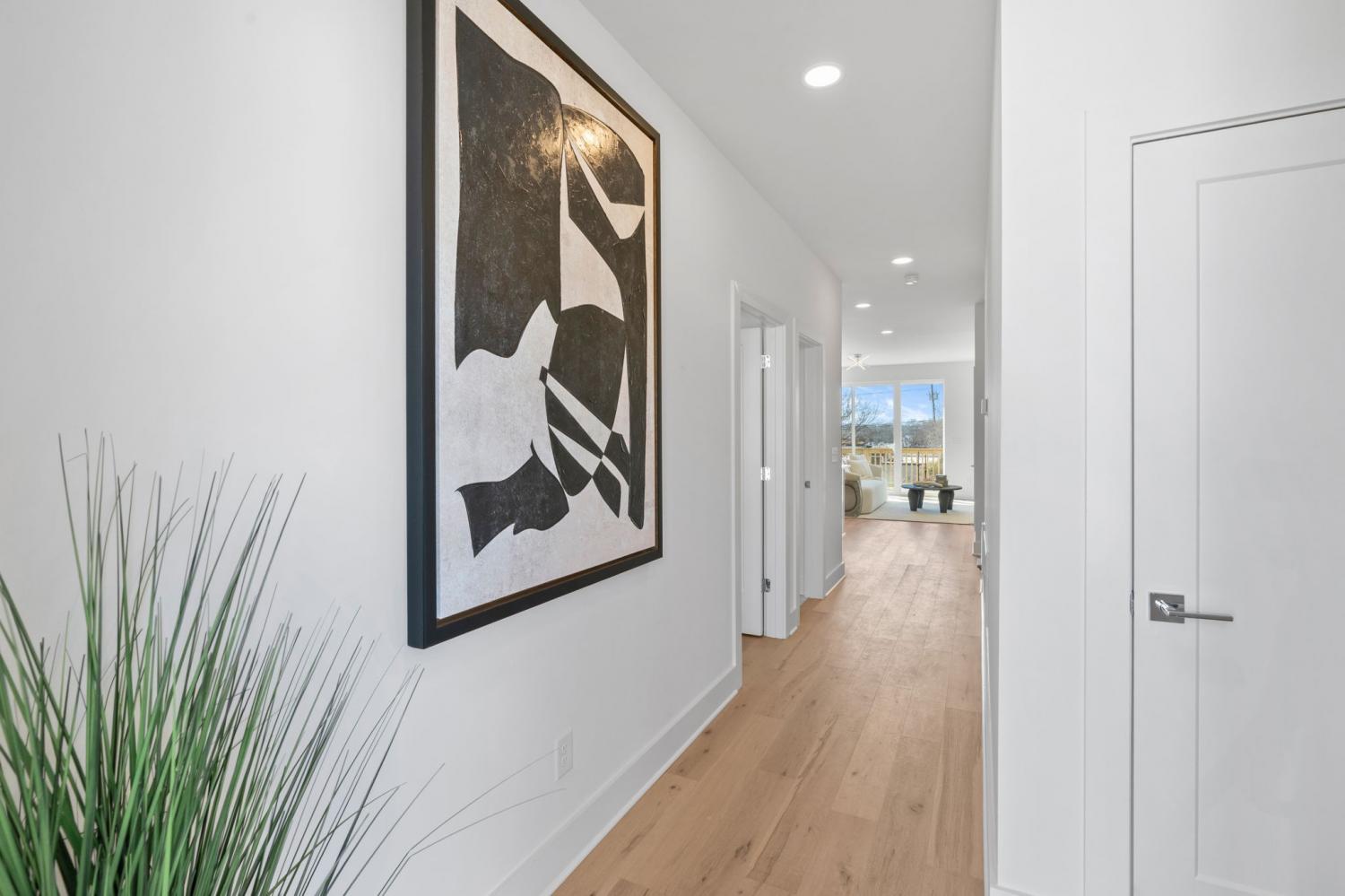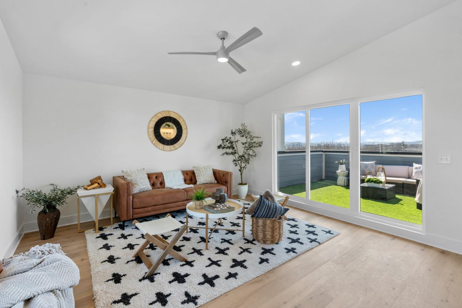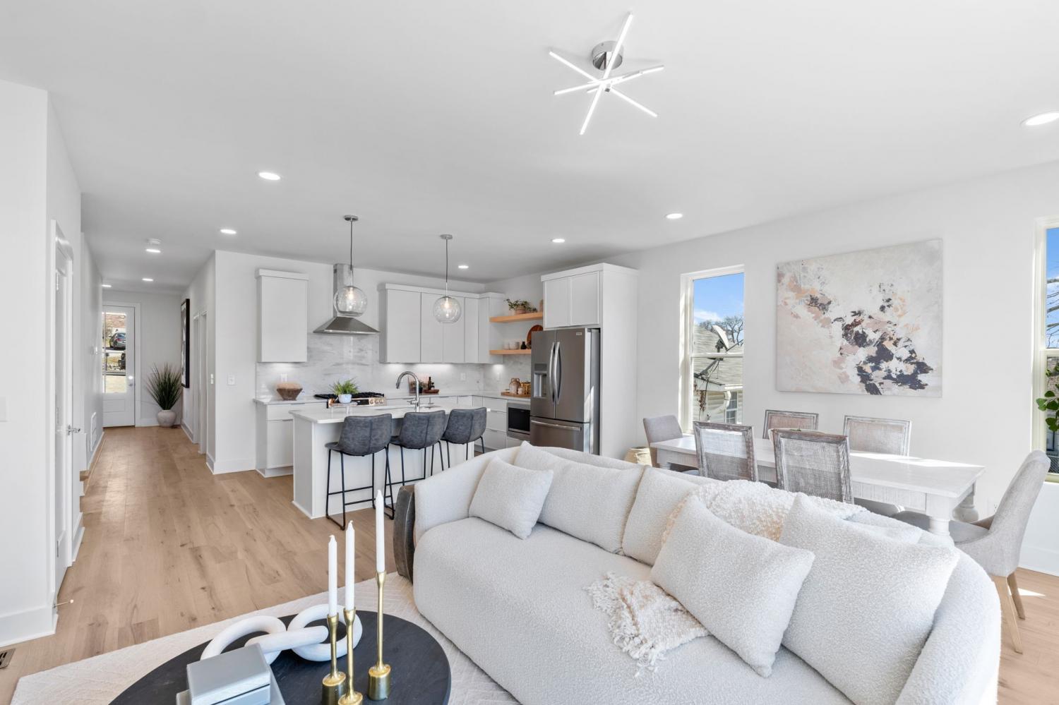 Experience elevated urban living at 3203A Resha Lane. This newly built three-story home offers 2,394 sq ft with hardwood floors throughout and an open main level filled with natural light. The kitchen features sleek cabinetry, stainless steel appliances, and quartz countertops that carry through the home’s modern design. The first floor includes a bedroom and full bath, ideal for guests or a private office. Upstairs, you’ll find two additional bedrooms and two full baths, including a primary suite with a walk-in closet and a spa-inspired bath with double vanity and a tiled walk-in shower. The third floor is dedicated to a spacious bonus room — perfect as a media space, home office, or gym. A turf-covered rooftop deck with skyline views of downtown creates a standout space for entertaining or relaxing. Located in North Nashville, this home is just minutes from Germantown, The Gulch, and downtown, placing some of the city’s best dining and coffee shops right at your fingertips — all with no HOA.