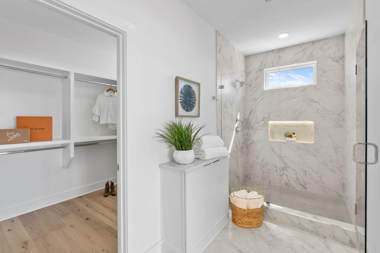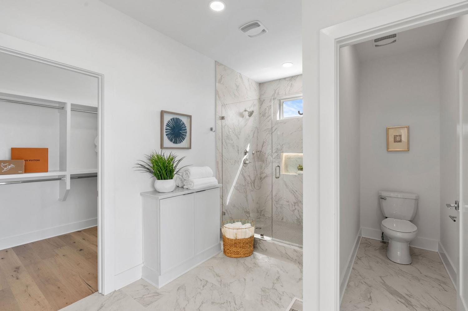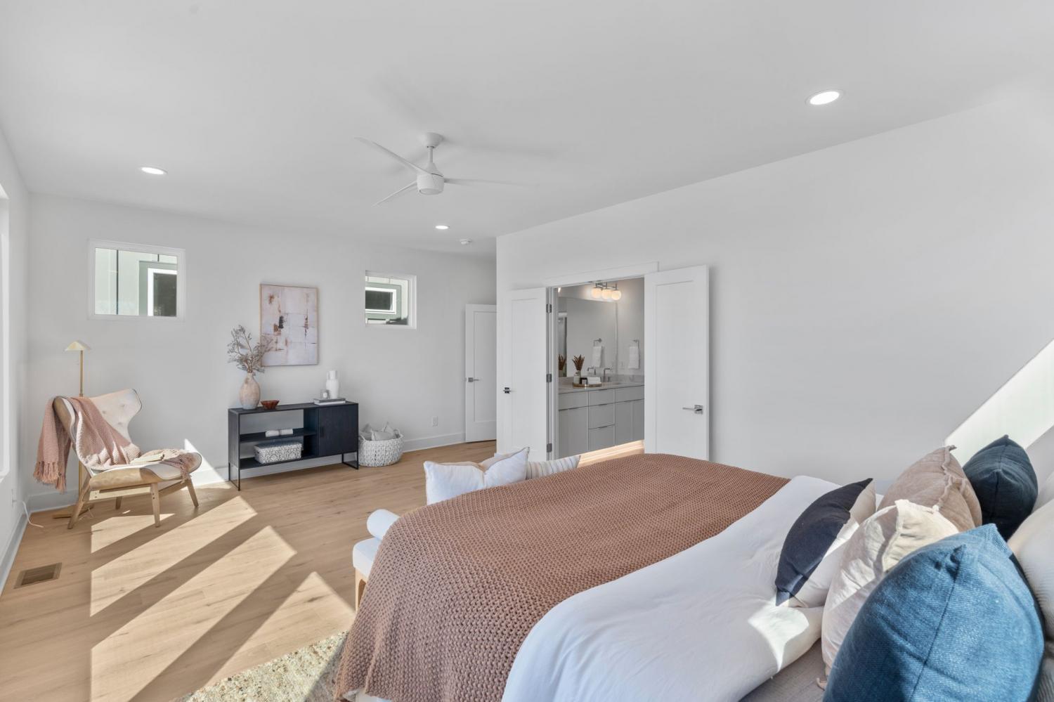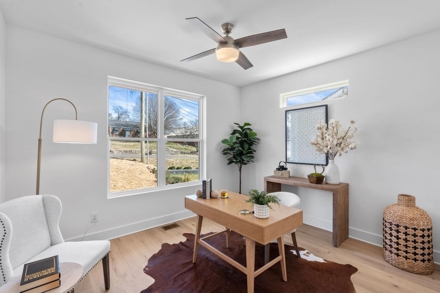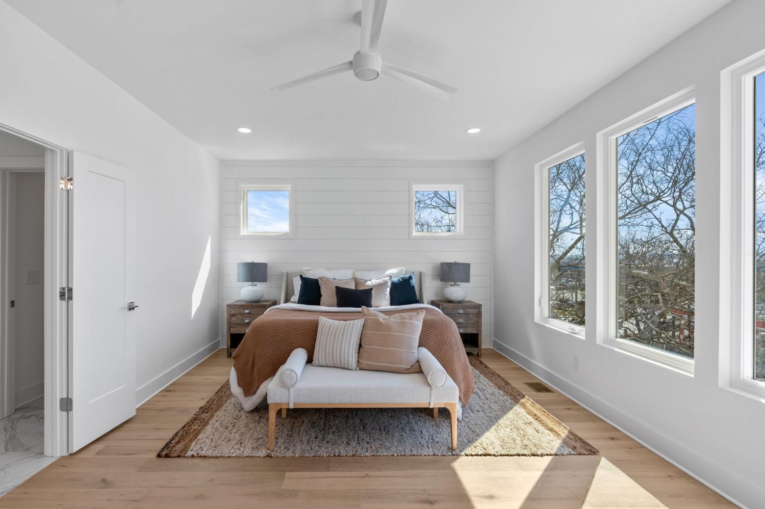 Experience elevated urban living at 3203A Resha Lane. This newly built three-story home offers 2,394 sq ft with hardwood floors throughout and an open main level filled with natural light. The kitchen features sleek cabinetry, stainless steel appliances, and quartz countertops that carry through the home’s modern design. The first floor includes a bedroom and full bath, ideal for guests or a private office. Upstairs, you’ll find two additional bedrooms and two full baths, including a primary suite with a walk-in closet and a spa-inspired bath with double vanity and a tiled walk-in shower. The third floor is dedicated to a spacious bonus room — perfect as a media space, home office, or gym. A turf-covered rooftop deck with skyline views of downtown creates a standout space for entertaining or relaxing. Located in North Nashville, this home is just minutes from Germantown, The Gulch, and downtown, placing some of the city’s best dining and coffee shops right at your fingertips — all with no HOA.